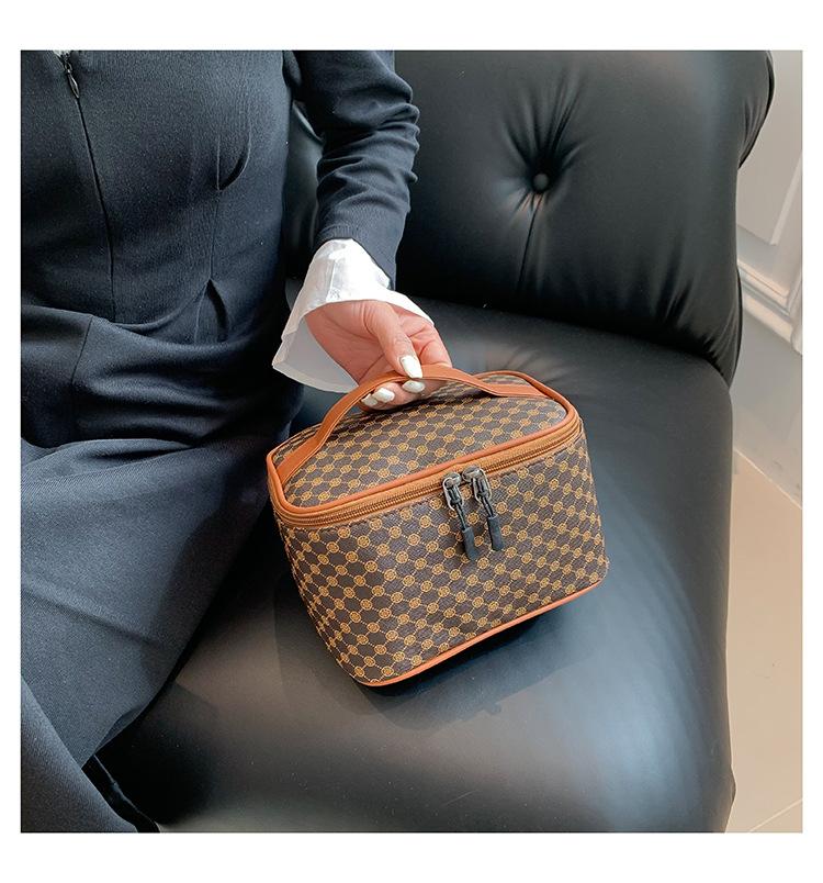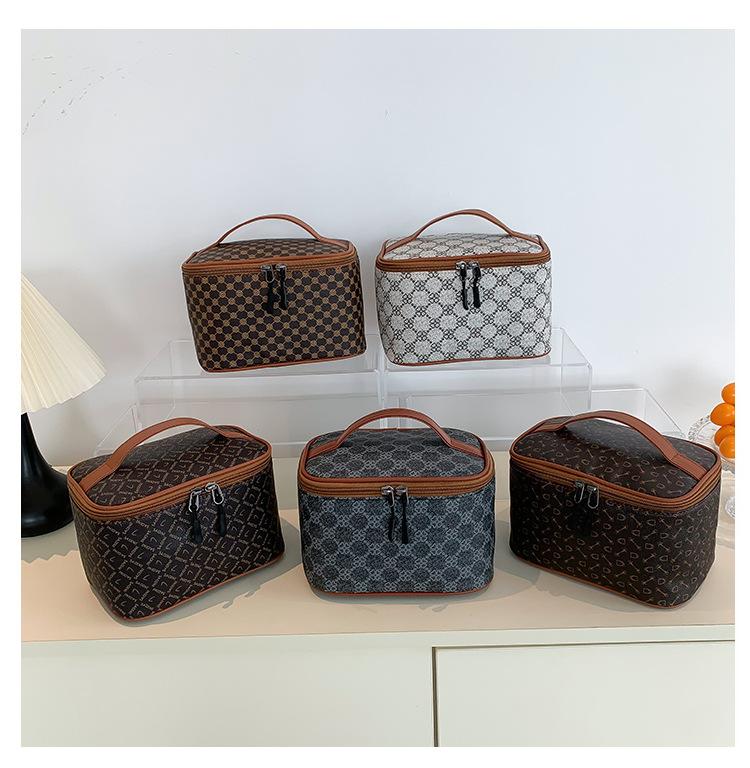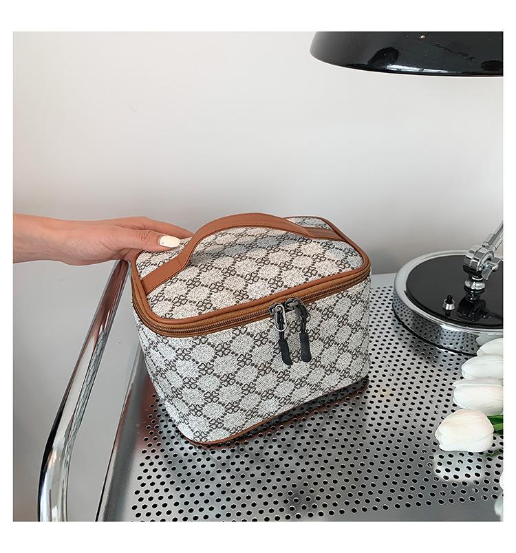 Bolsa de cosméticos con textura de moda, impermeable, portátil, de gran capacidad, para guardar cosméticos en seco y húmedo por separado, bolsa de baño para lavar.