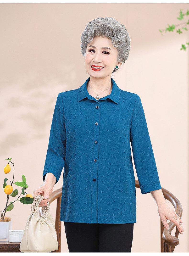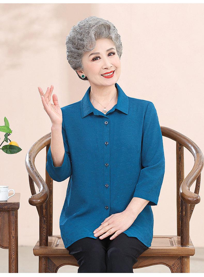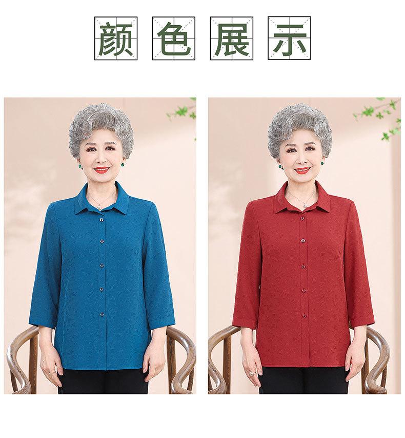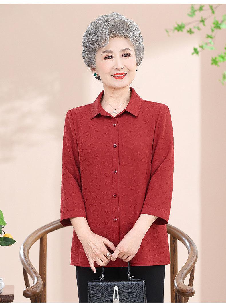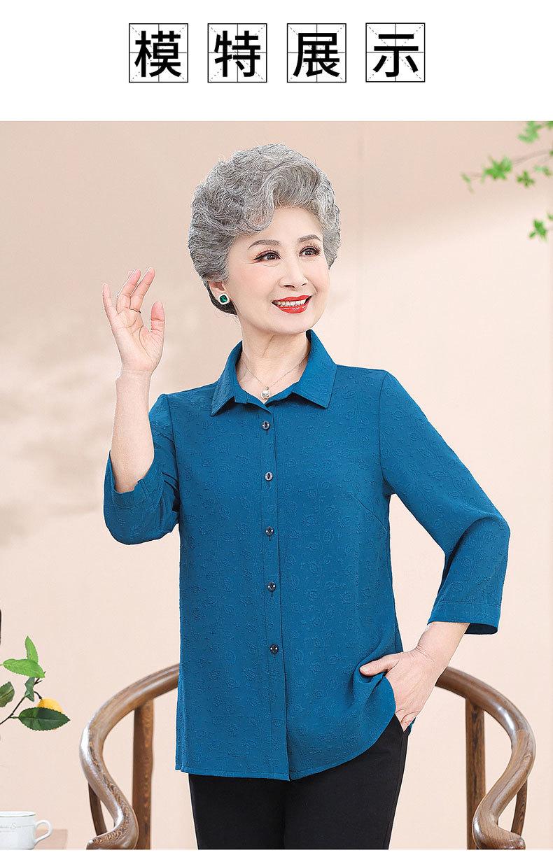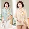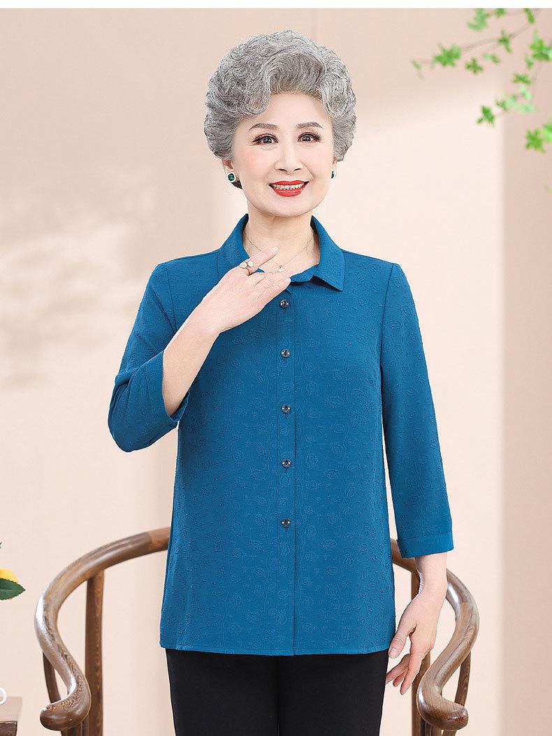 2024 nueva ropa de mujer de mediana edad y mayores de primavera y verano de manga 3/4, camisa de mujer de seda artificial, camisa de estilo occidental de moda, ropa de mamá