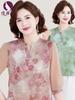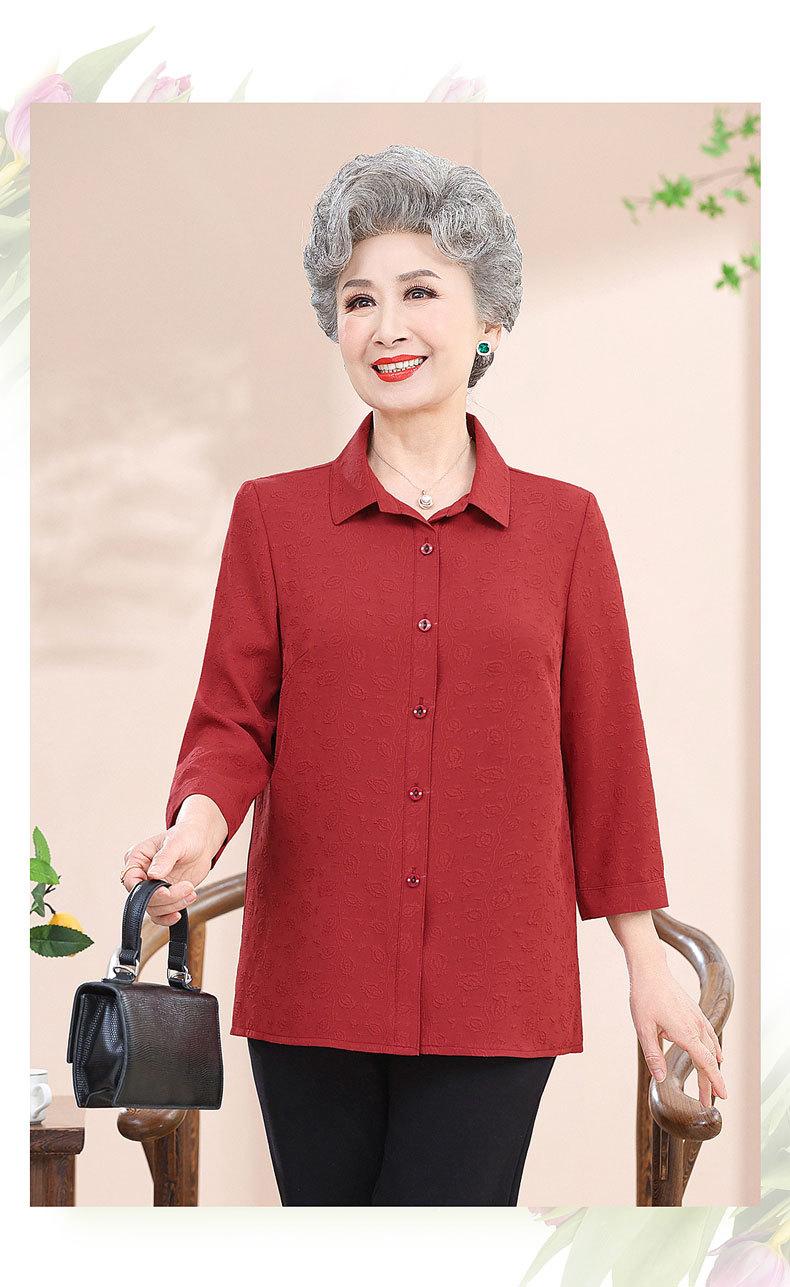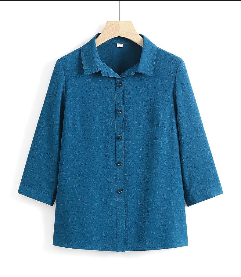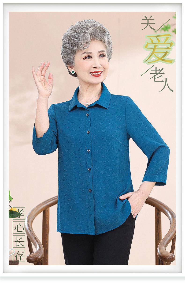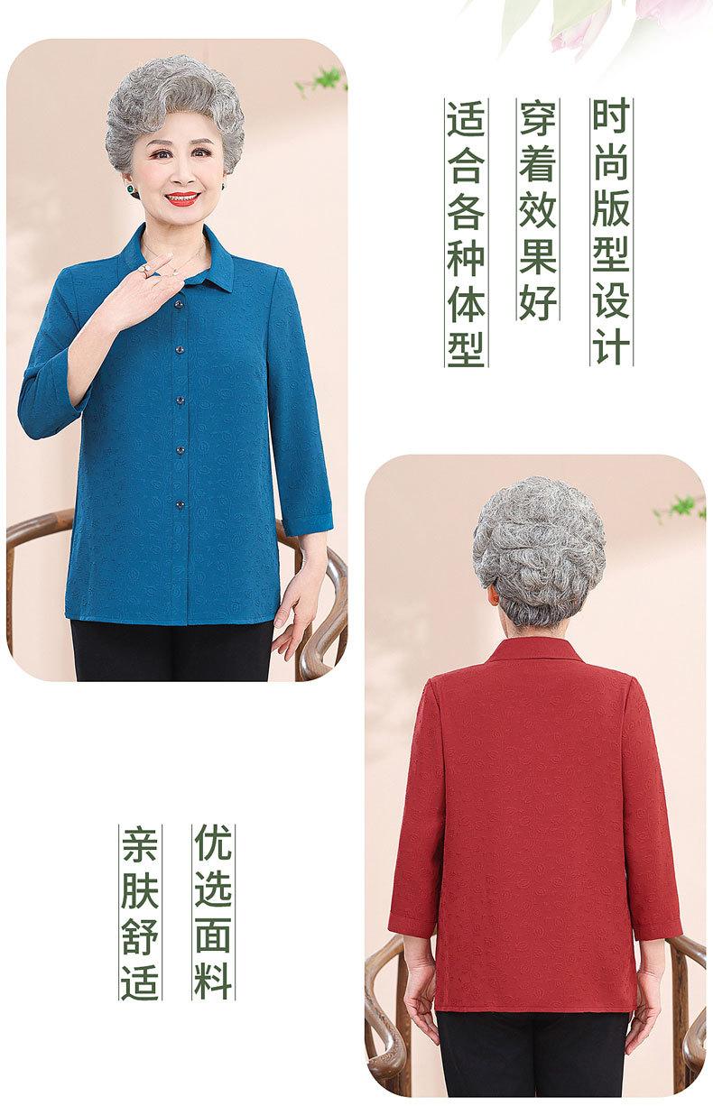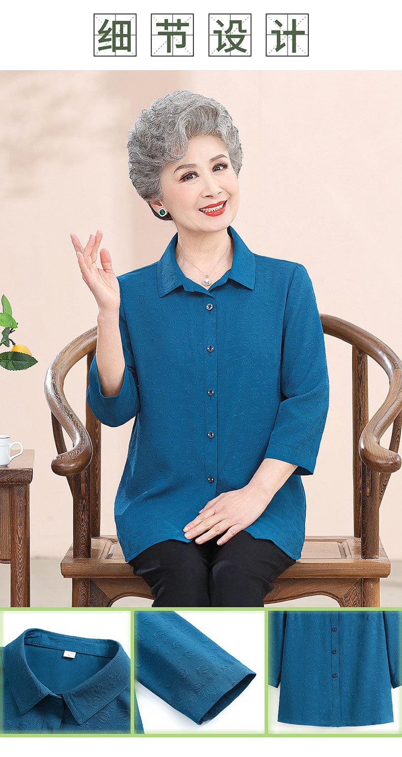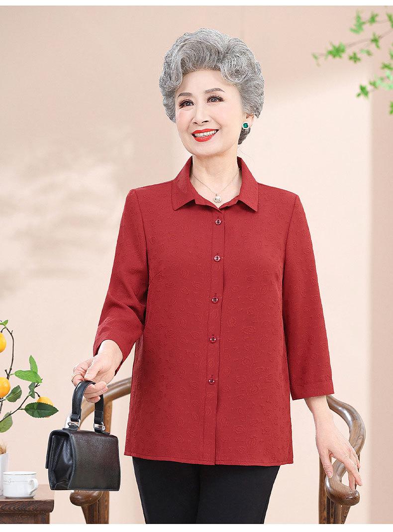 2024 nueva ropa de mujer de mediana edad y mayores de primavera y verano de manga 3/4, camisa de mujer de seda artificial, camisa de estilo occidental de moda, ropa de mamá