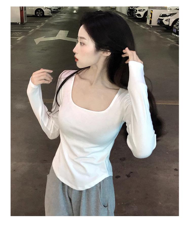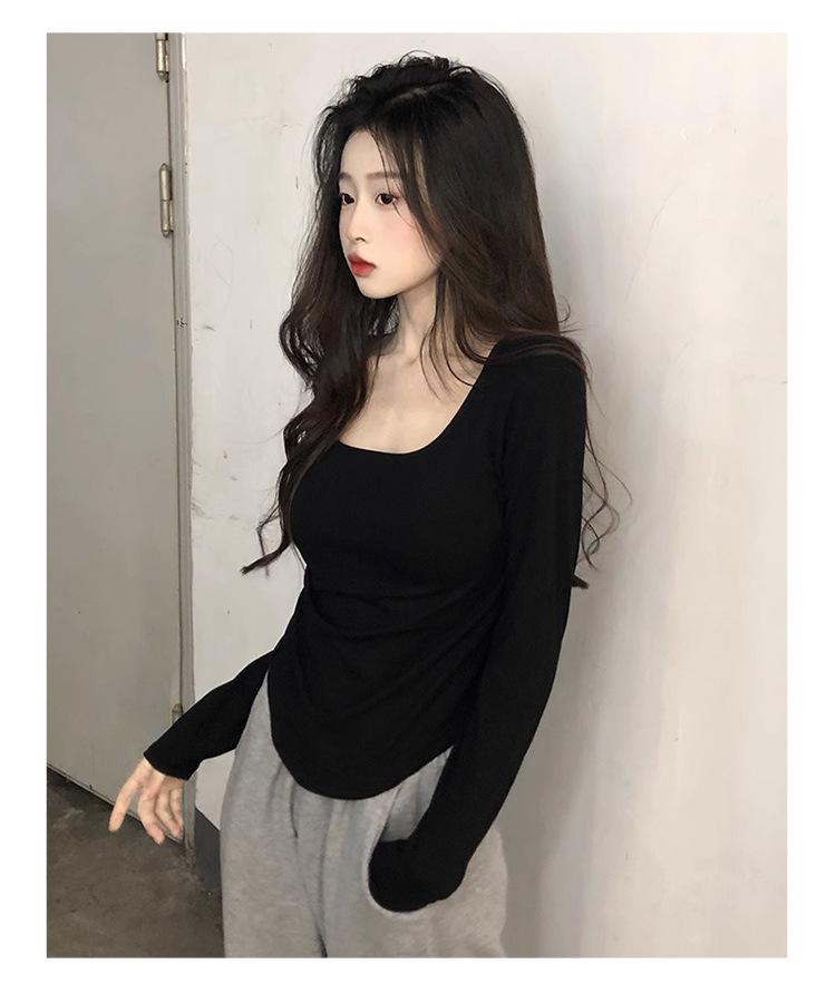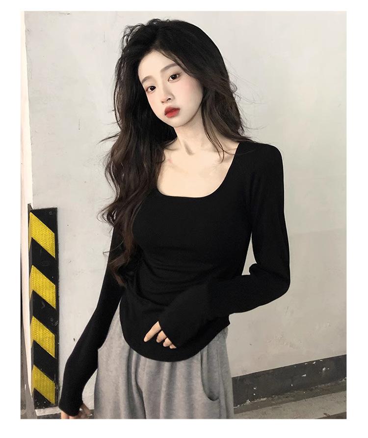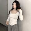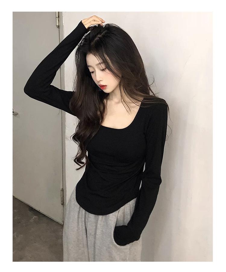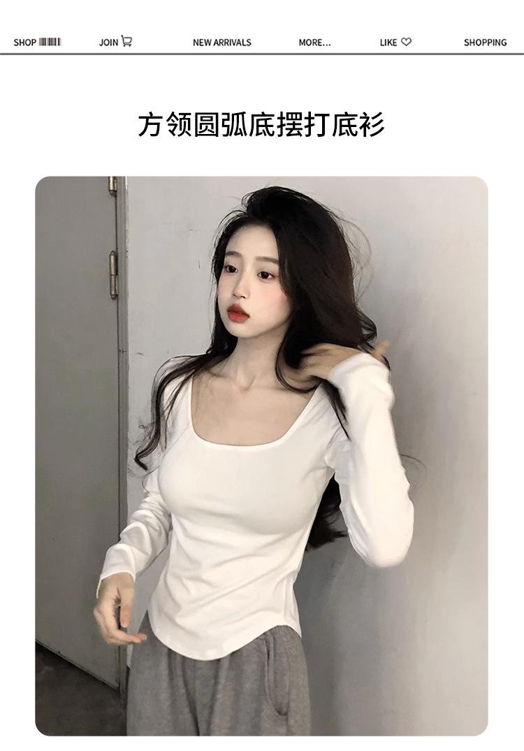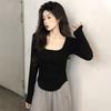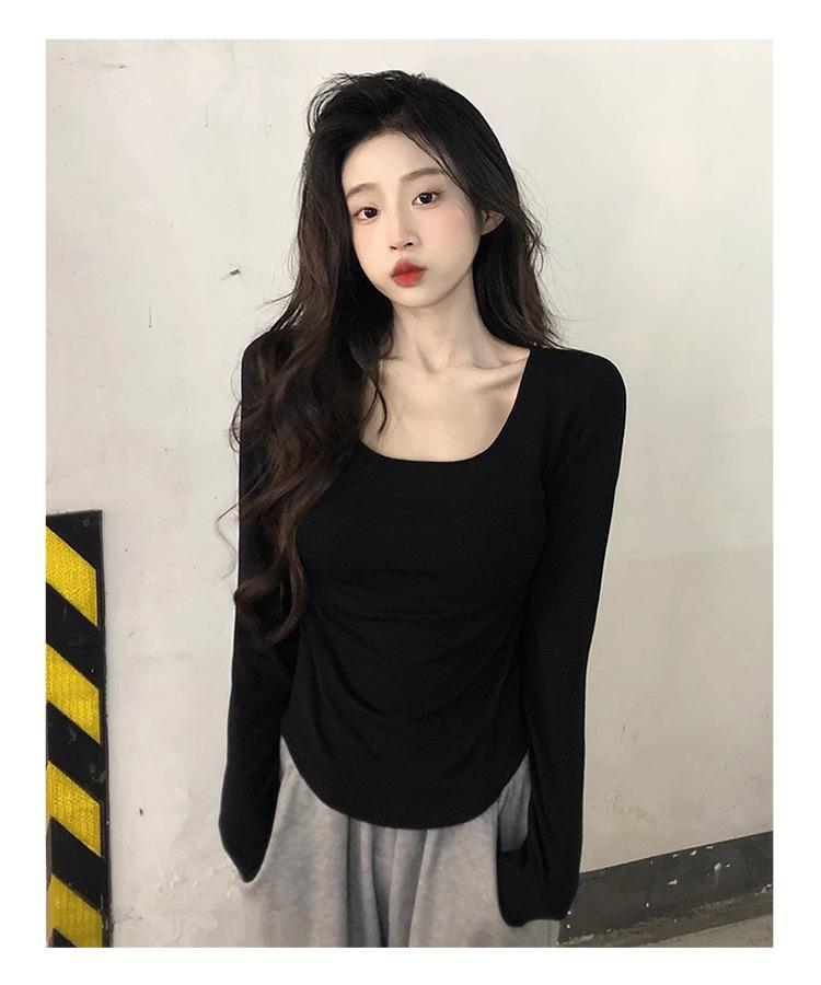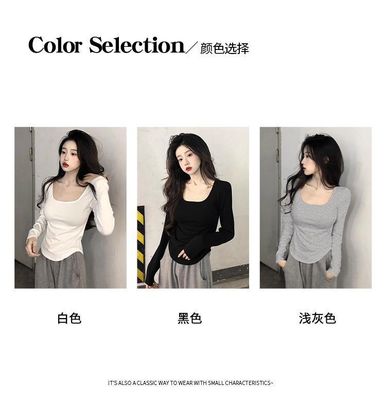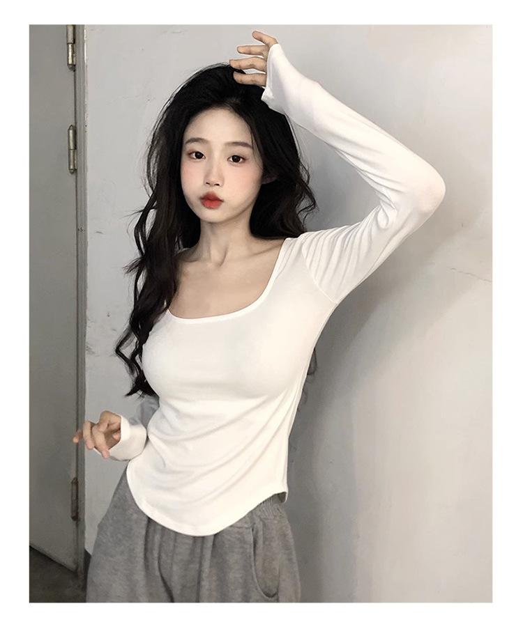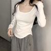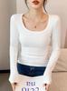 Camiseta de cuello cuadrado y manga corta para mujer, nueva primavera y otoño 2024, con hombros al descubierto, ajustada, interior fino y adelgazante.