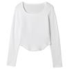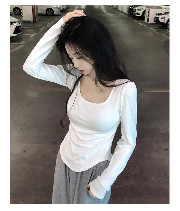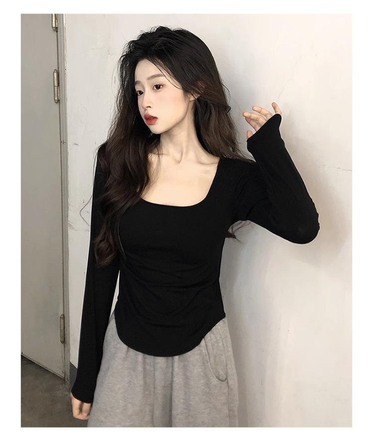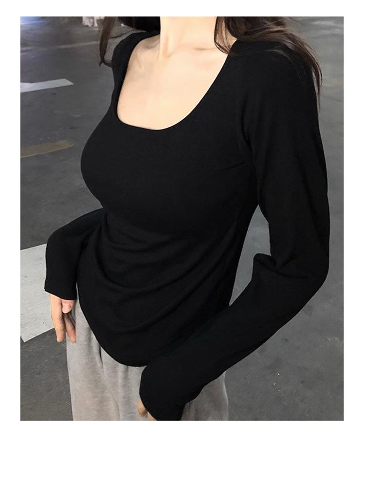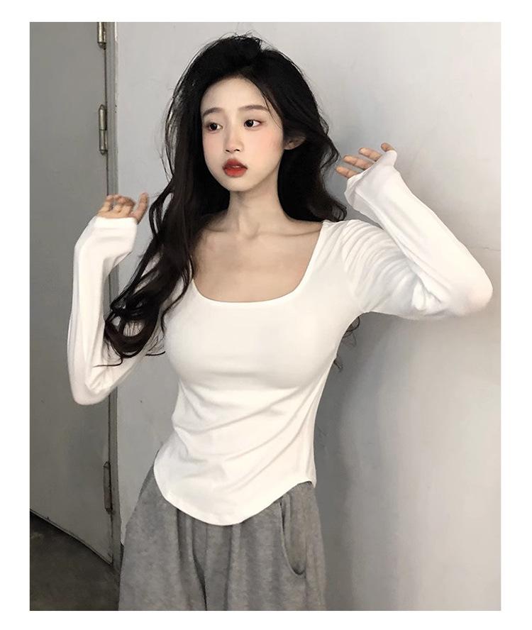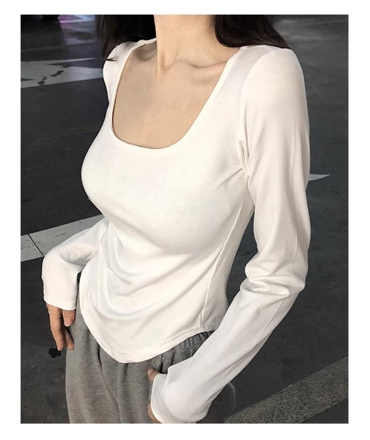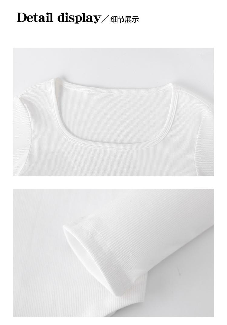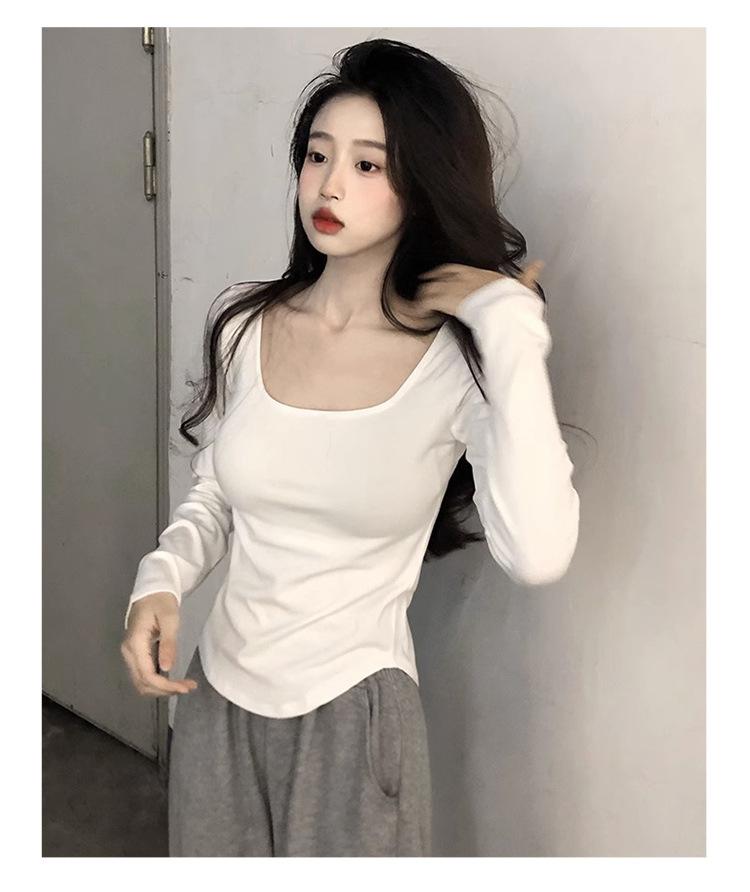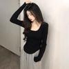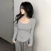 Camiseta de cuello cuadrado y manga corta para mujer, nueva primavera y otoño 2024, con hombros al descubierto, ajustada, interior fino y adelgazante.