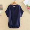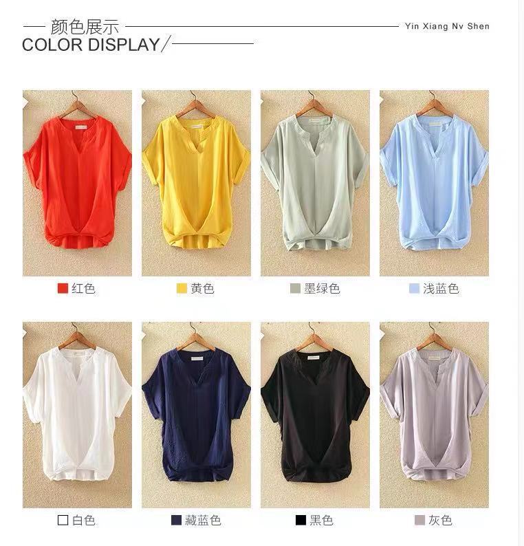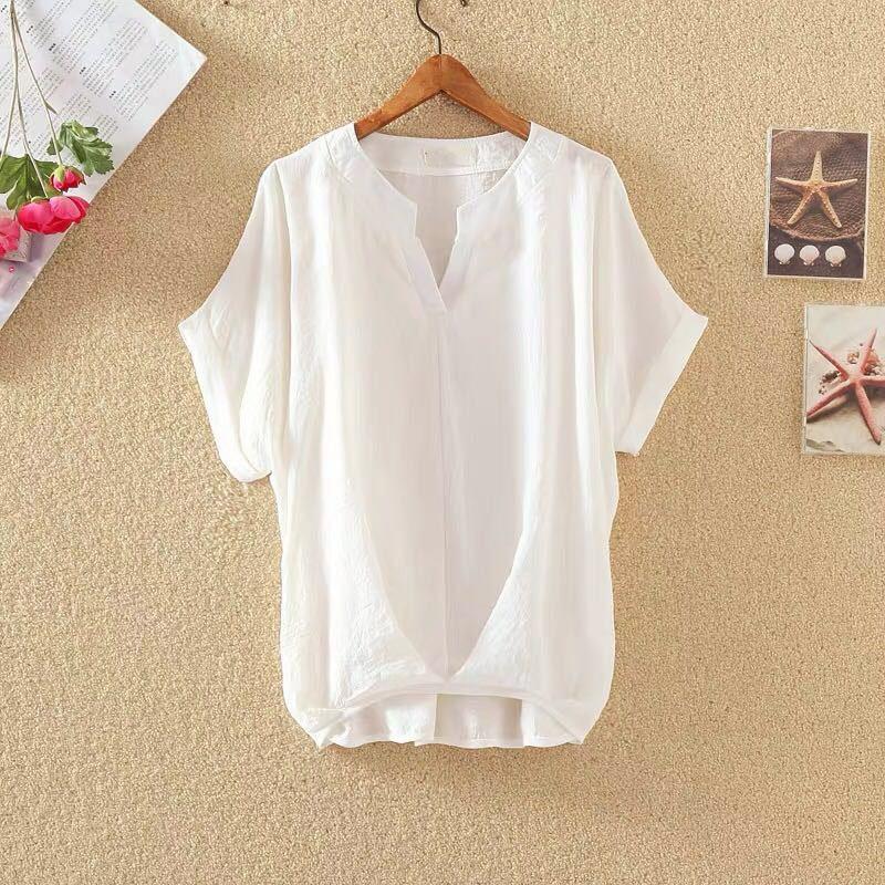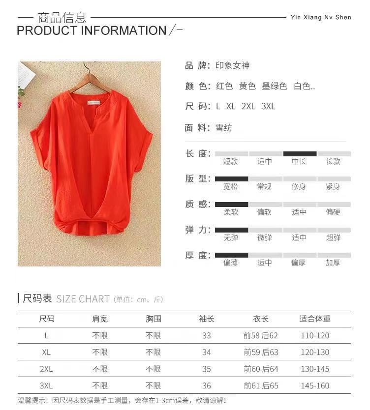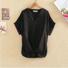 Blusa de gasa holgada y adelgazante de talla grande para mujer, blusa elegante con cuello en V, camisa de manga corta con alas de murciélago, de buena calidad, para verano de 2021