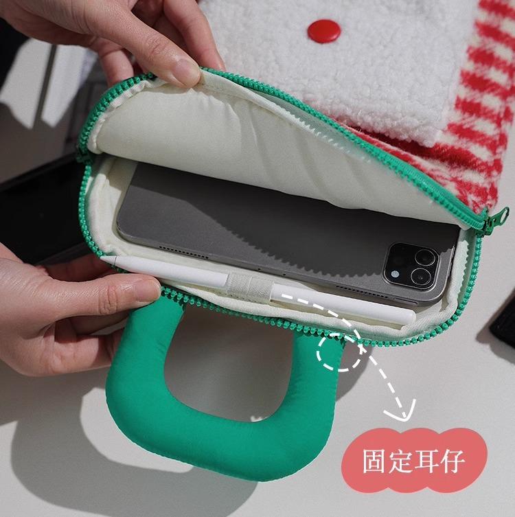Bolsa de almacenamiento para iPad de lana nueva de moda estilo coreano felpa suave portátil a prueba de golpes anti-caídas bolsa para tableta de 11 pulgadas