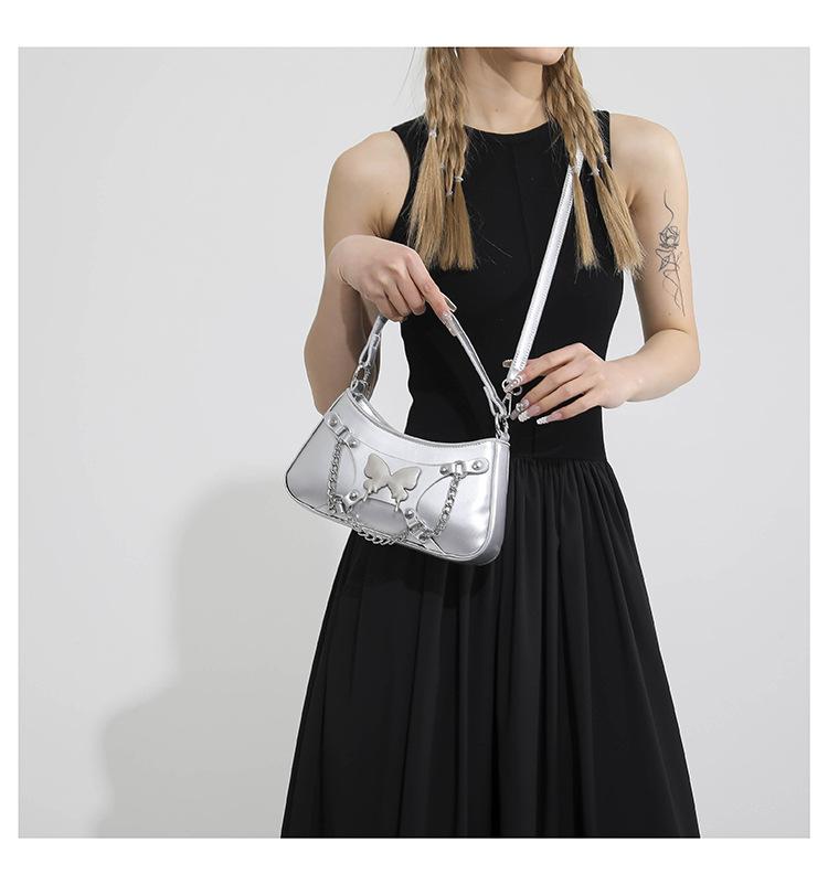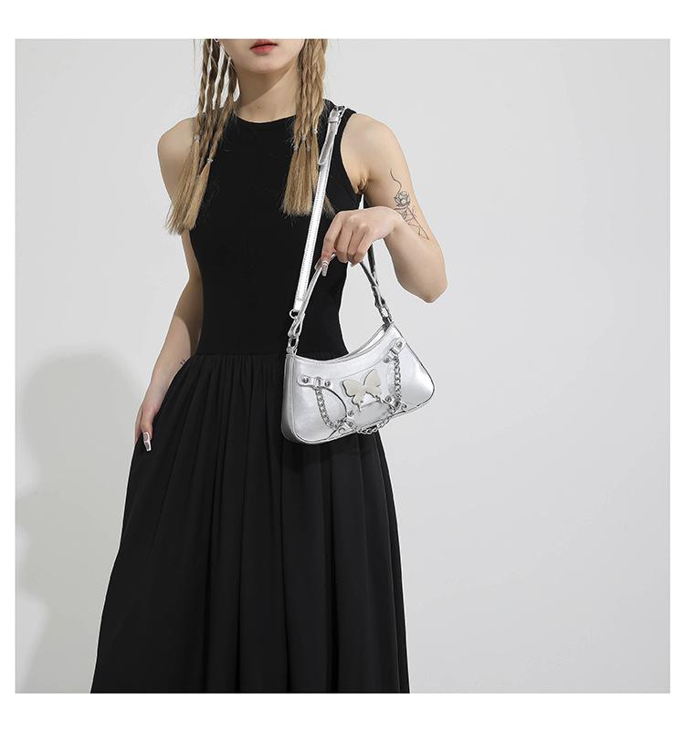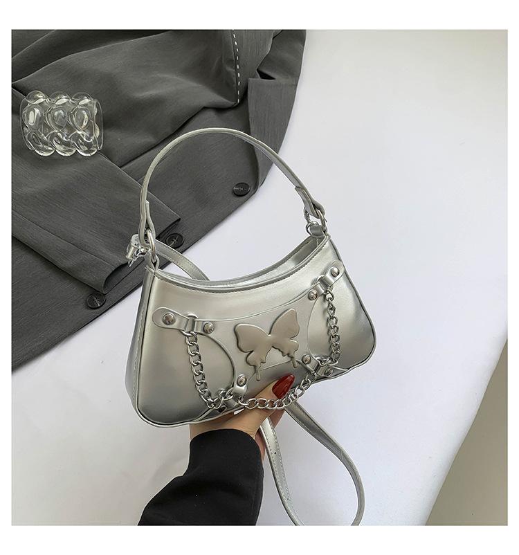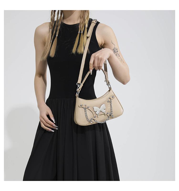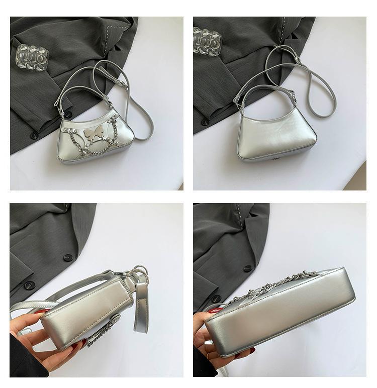 Bolso pequeño portátil con cadena para mujer, estilo retro, de moda 2024, con diseño de nicho, tipo bandolera tipo bagel.