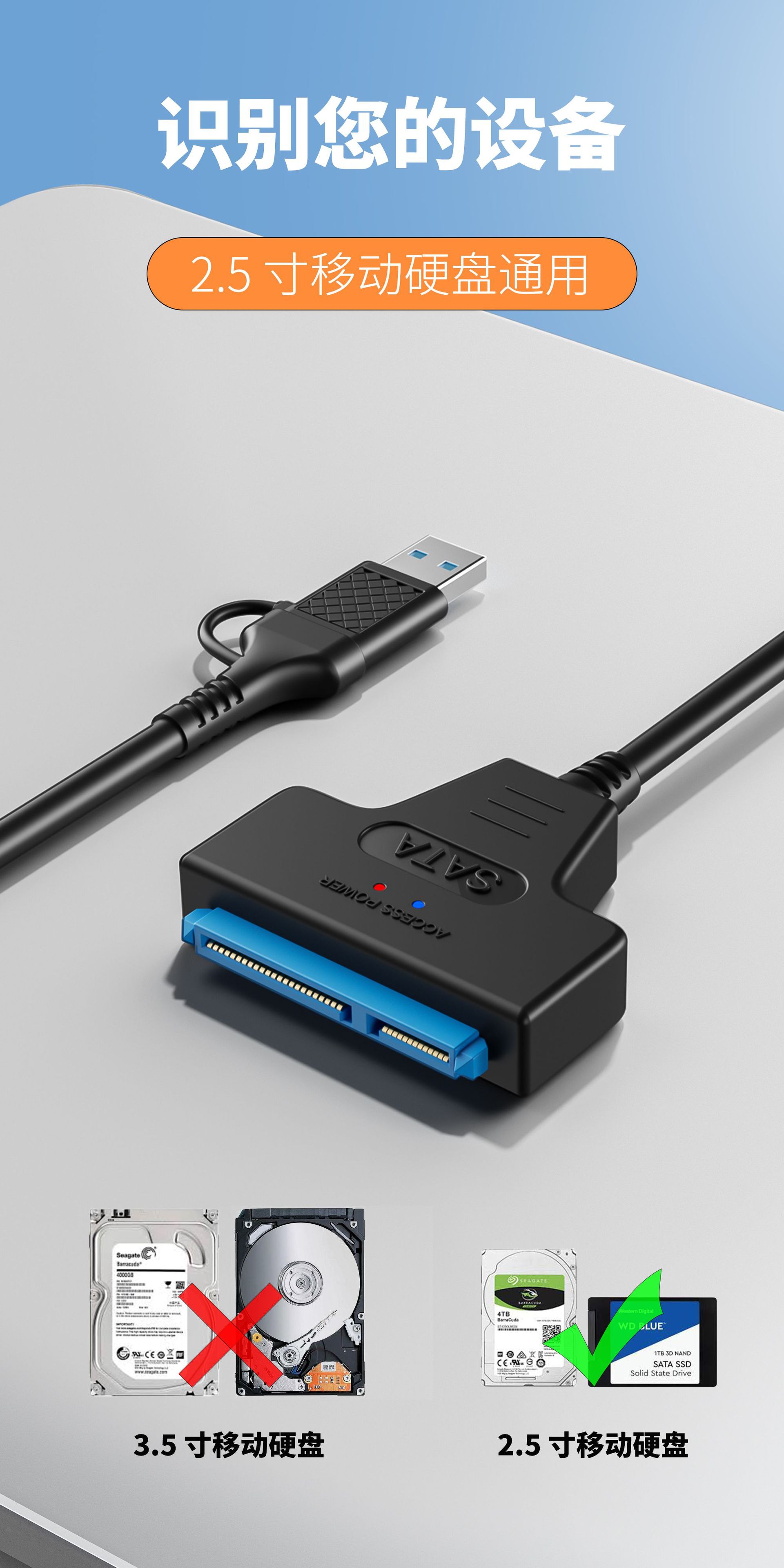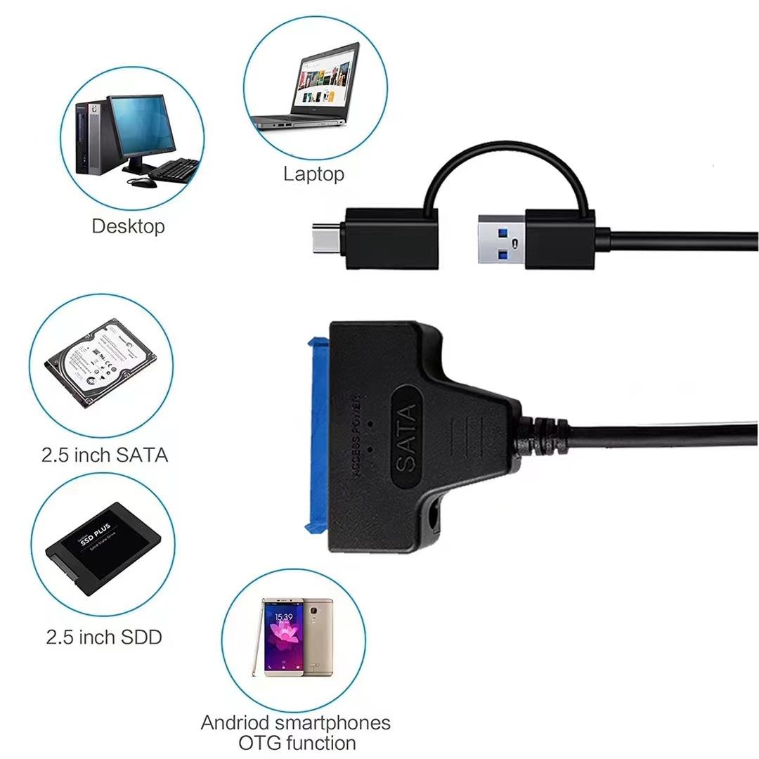 Línea Adaptadora Easy Drive Tipo-c/USB3.0/2.0 a SATA SATA22p 2.5" 3.5" Disco Duro Móvil