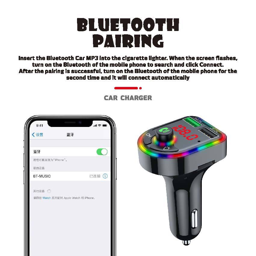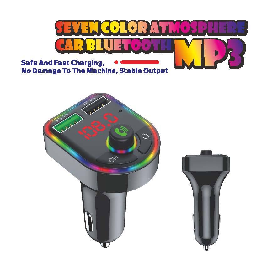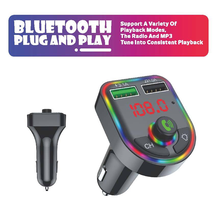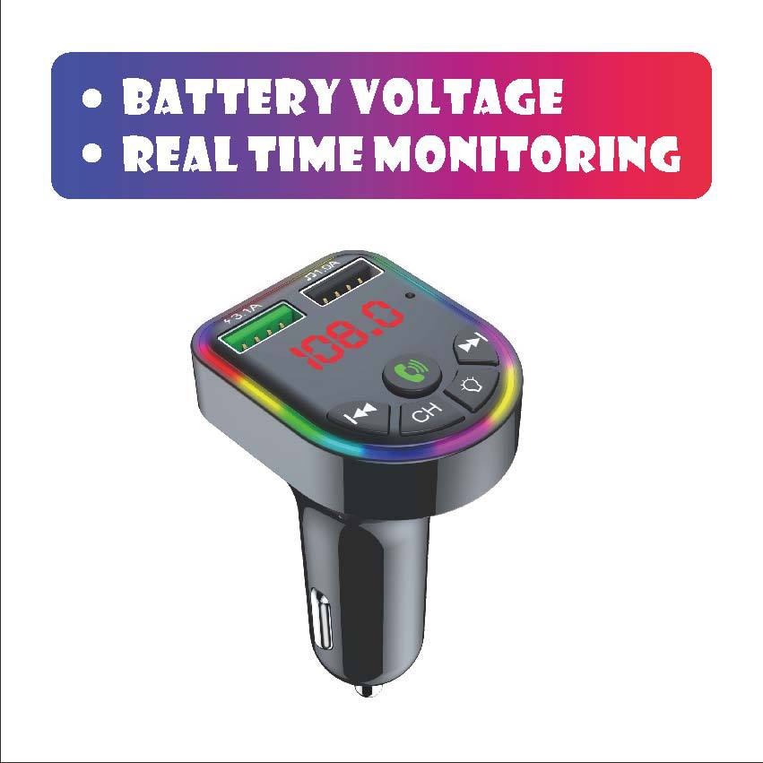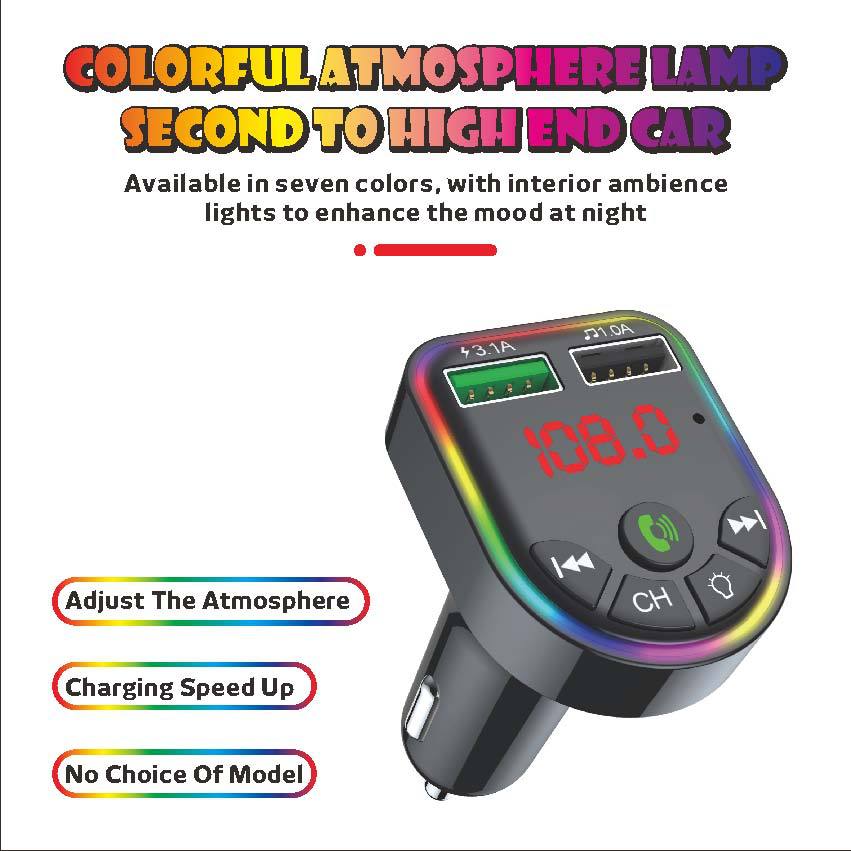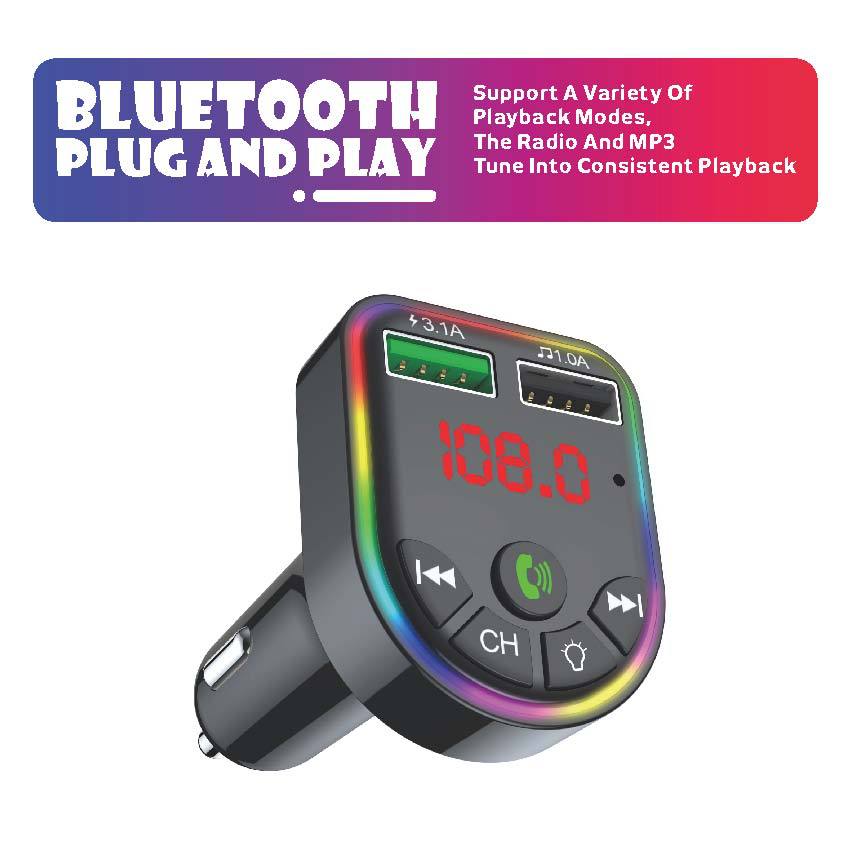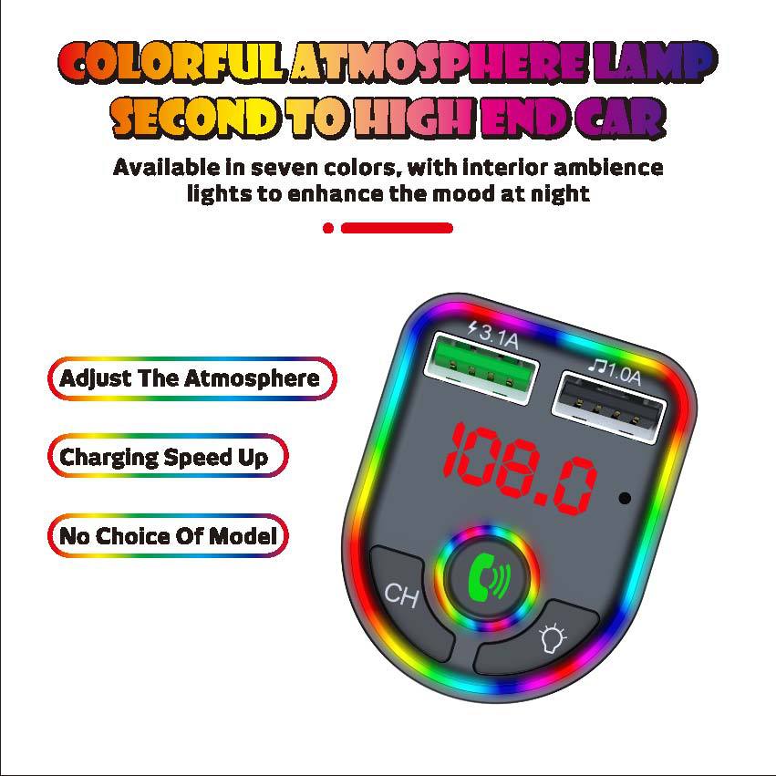 F6 Reproductor de MP3 Bluetooth para Coche Manos Libres Luz Ambiental Colorida Carga Rápida PD Qc3.0 Transmisor FM para Coche Carga Rápida
