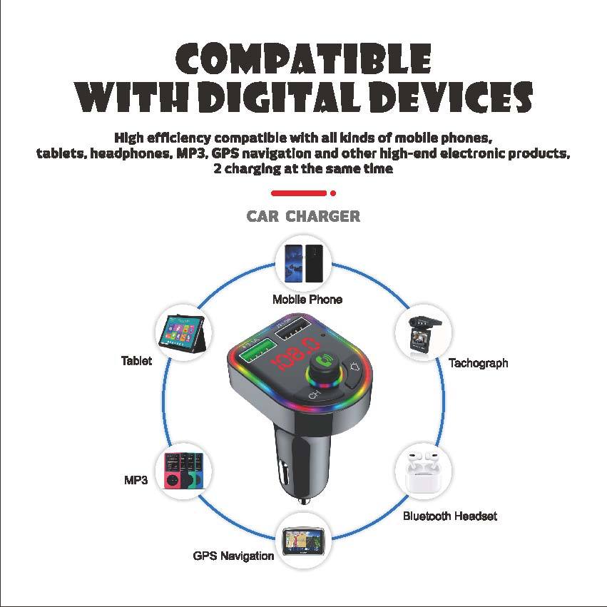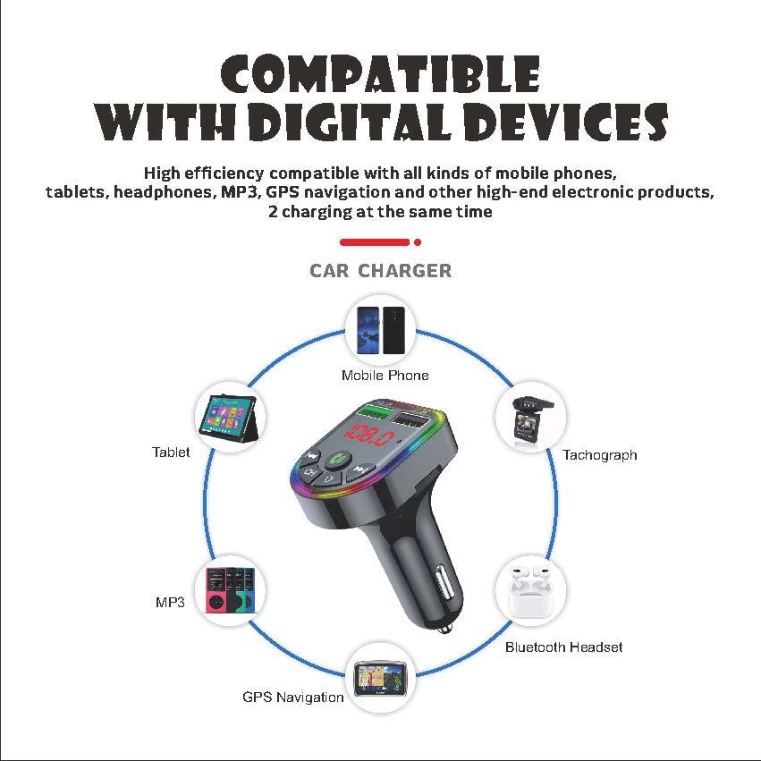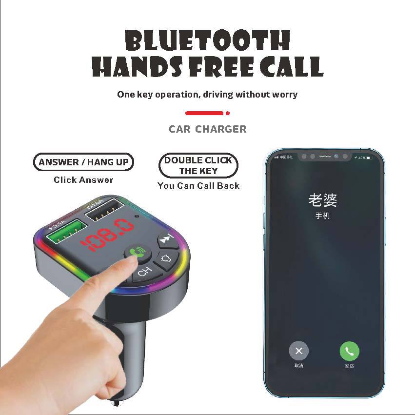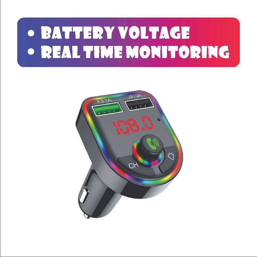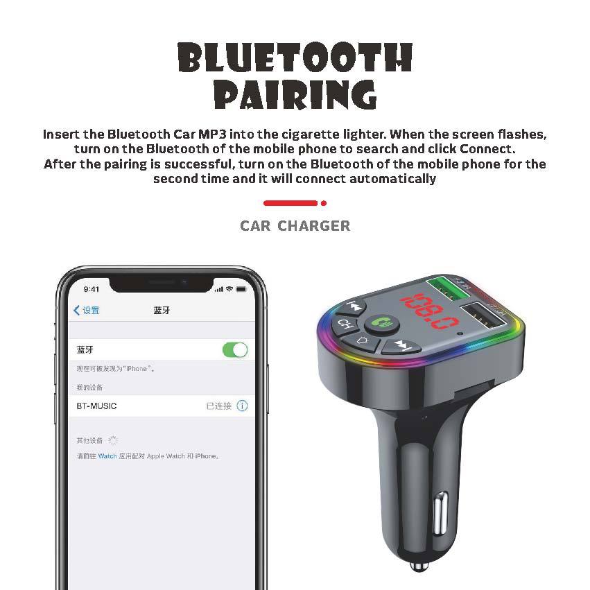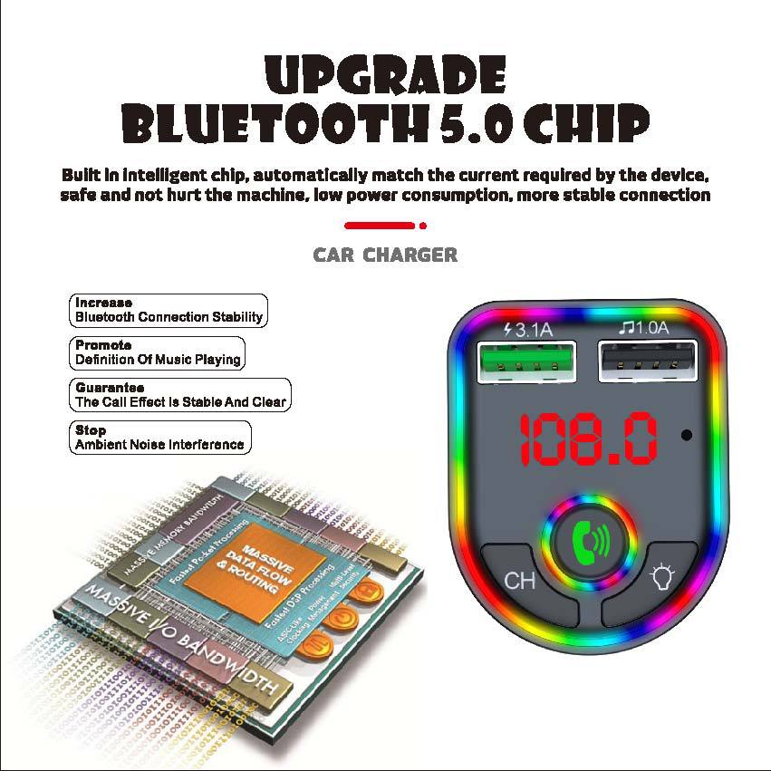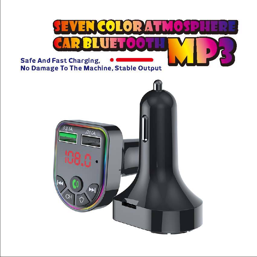 F6 Reproductor de MP3 Bluetooth para Coche Manos Libres Luz Ambiental Colorida Carga Rápida PD Qc3.0 Transmisor FM para Coche Carga Rápida