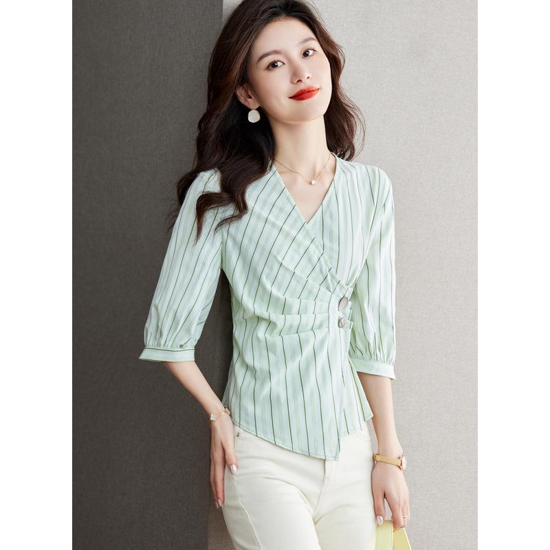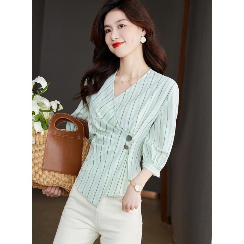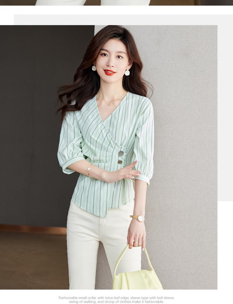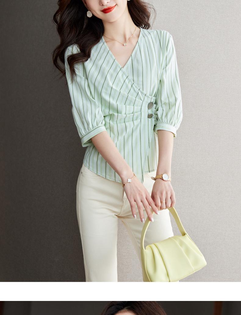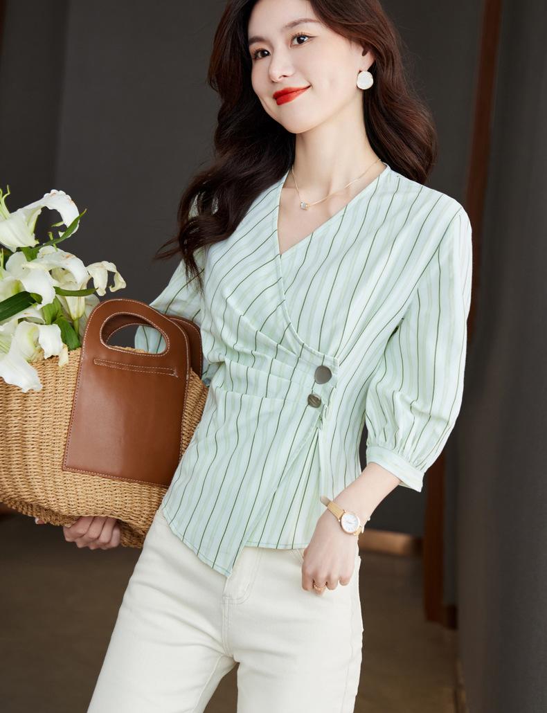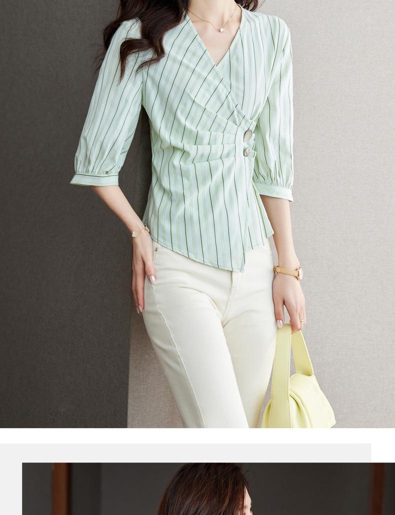 Blusa de verano con cuello en V y rayas, cuello en V, top de tela femenino