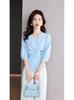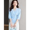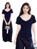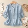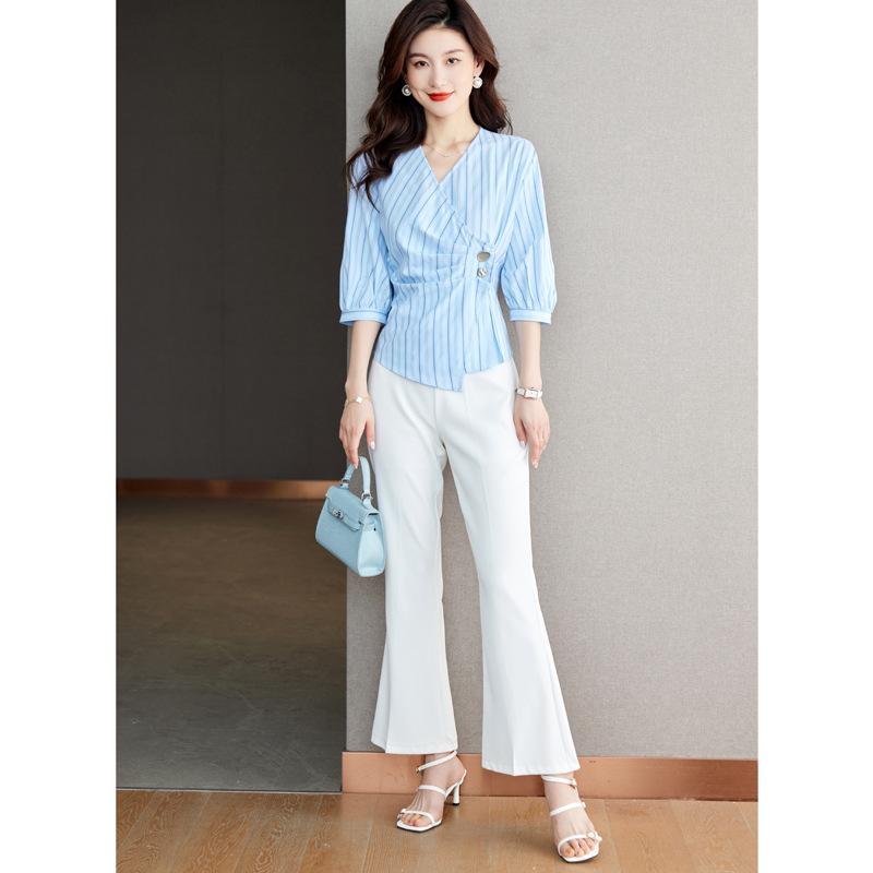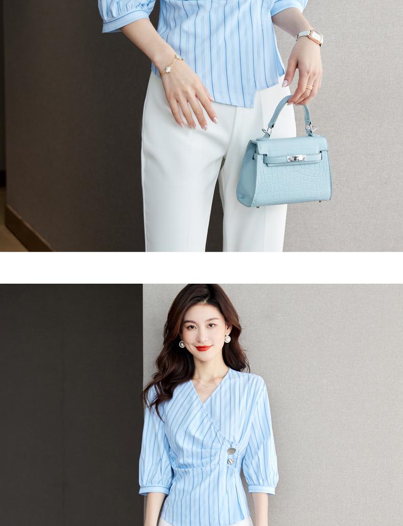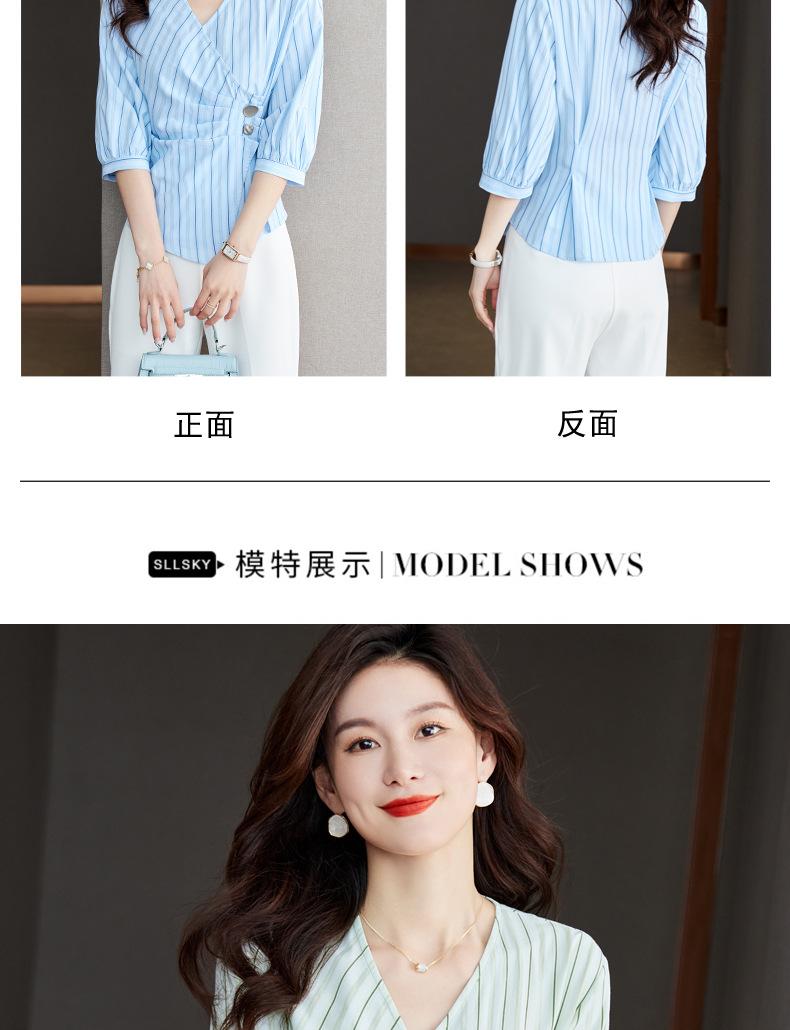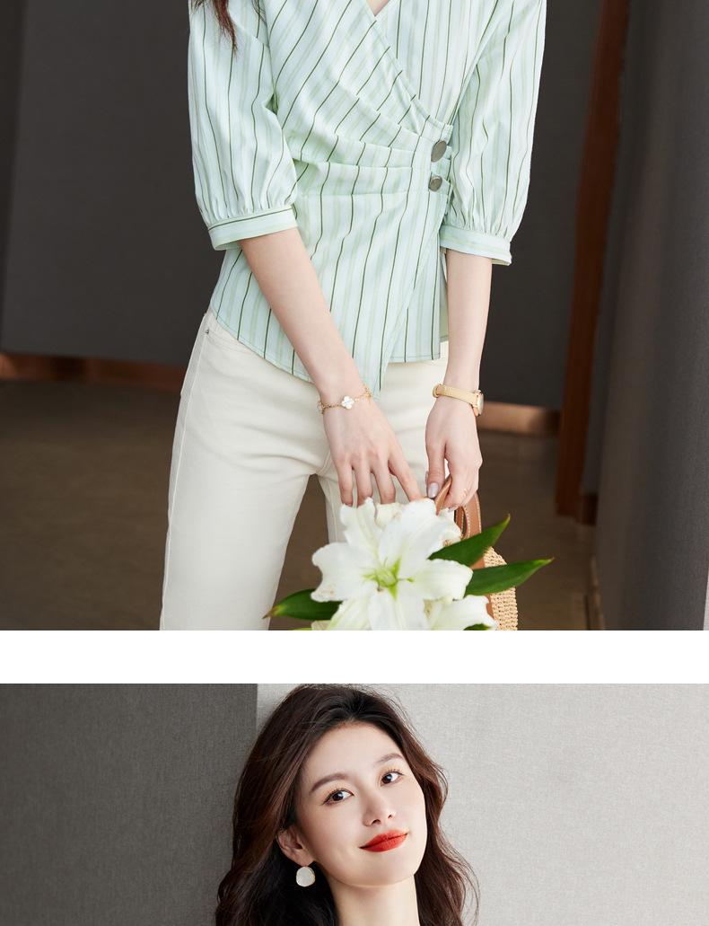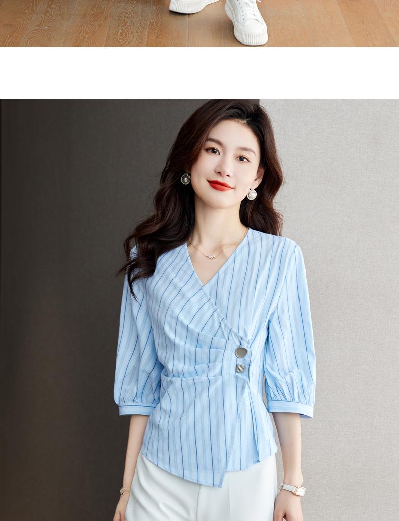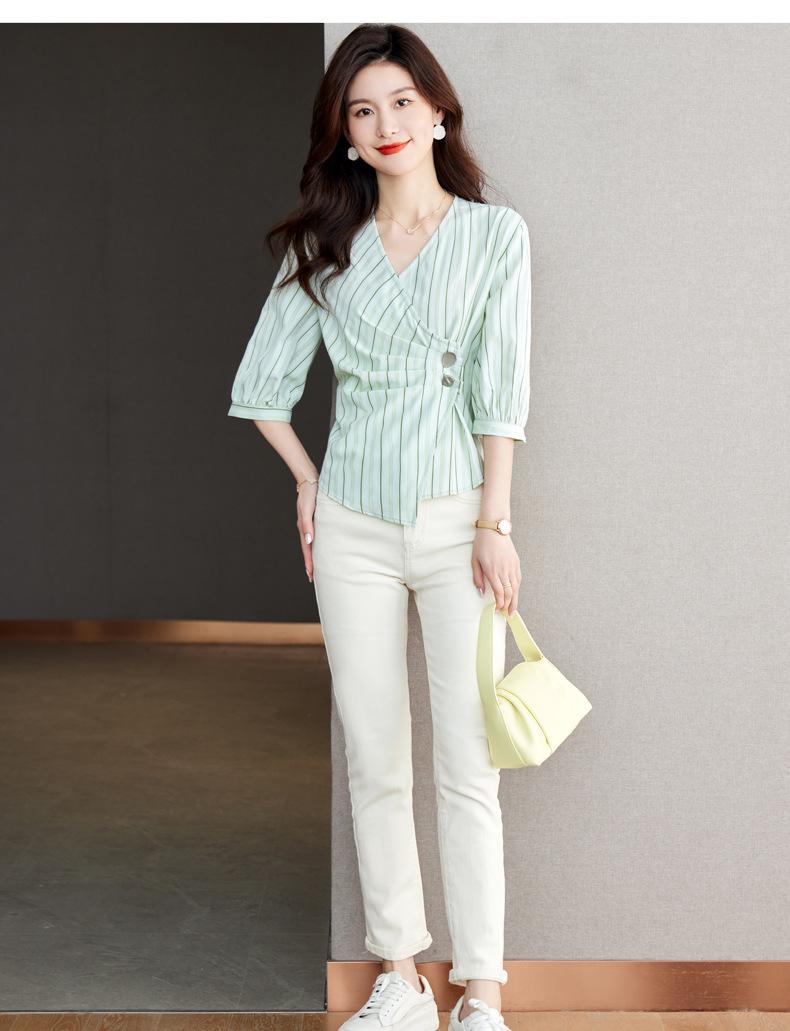 Blusa de verano con cuello en V y rayas, cuello en V, top de tela femenino