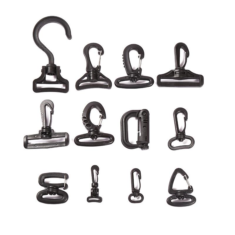Fábrica 20~51mm gancho de plástico para accesorios de equipaje gancho giratorio universal hebilla gancho para bolsa con hebilla de gancho con herraje venta al por mayor