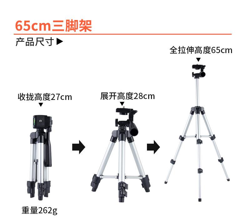 65cm aluminum alloy tripod + u-shaped clip + cloth bag