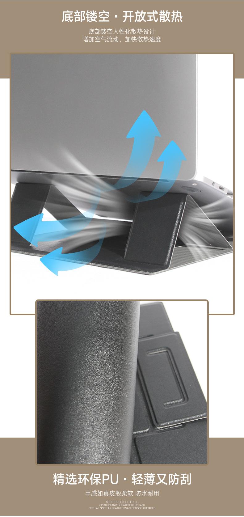 Soporte para Laptop Plegable Base Estéreo Soporte Elevador Soporte de Refrigeración para Computadora de Escritorio Soporte de Cuero PU para Tablet
