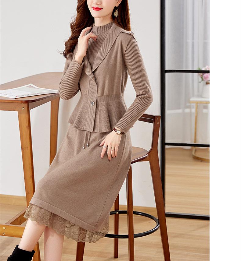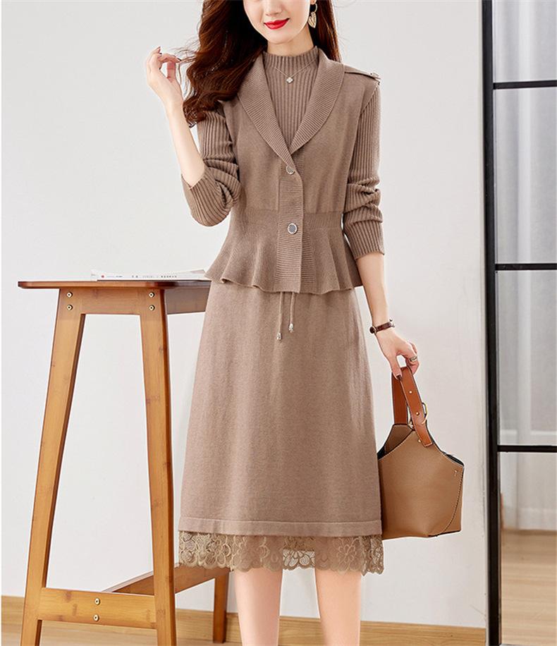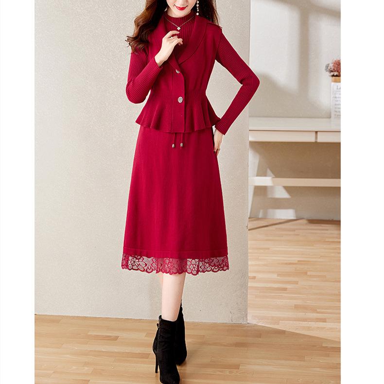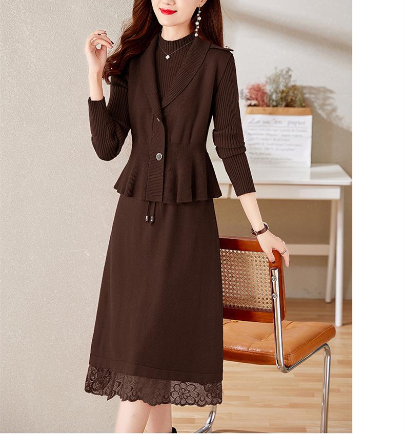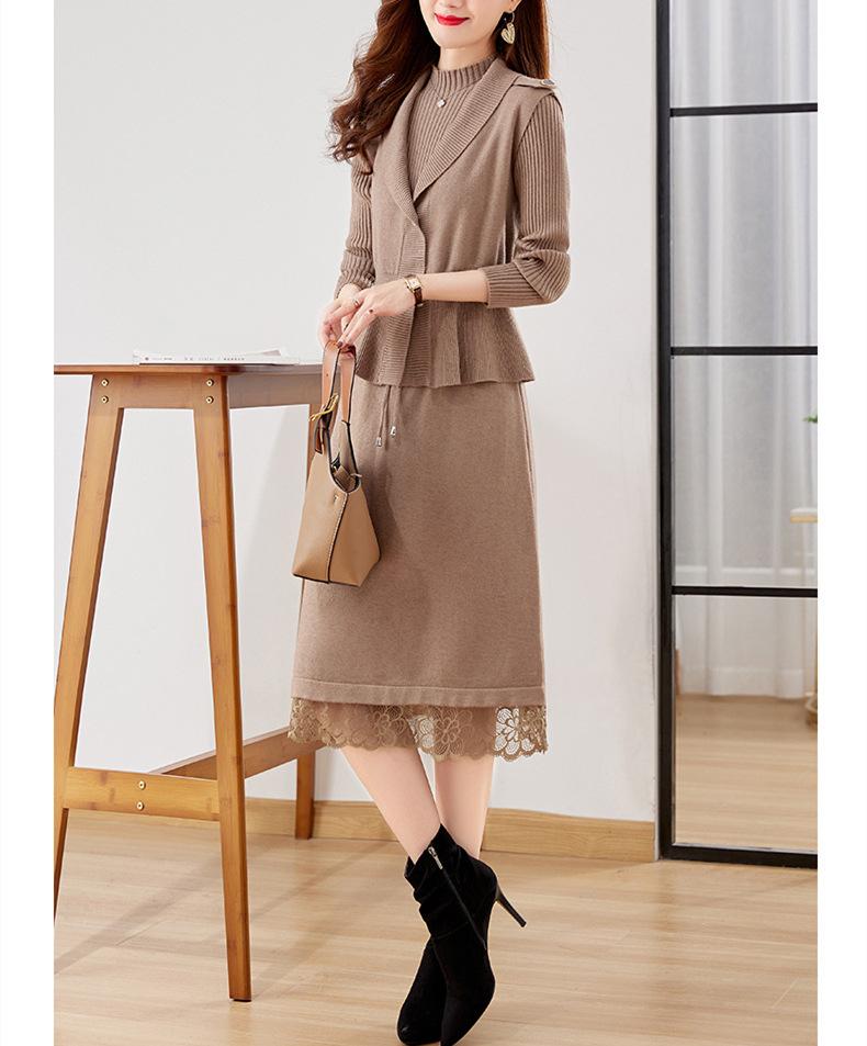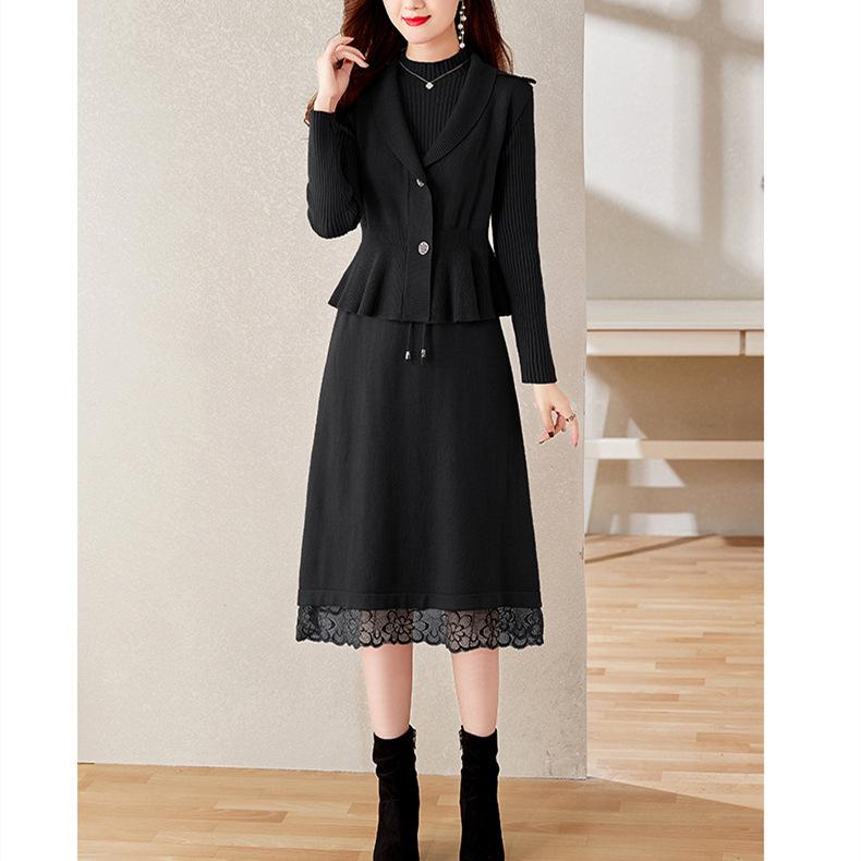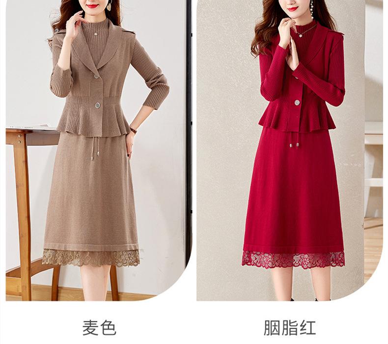 Vestido de Punto de Moda Nueva para Otoño/Invierno 2025 para Mujer, Adelgazante, Chaleco de Color Sólido Versátil, Vestido Base de Suéter, Conjunto de Dos Piezas