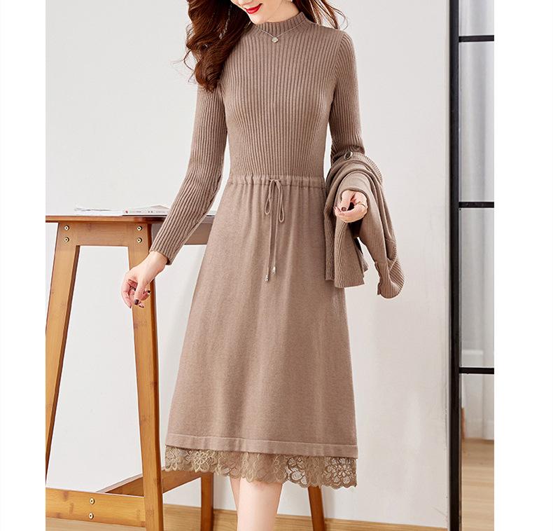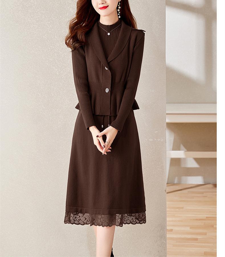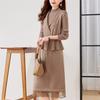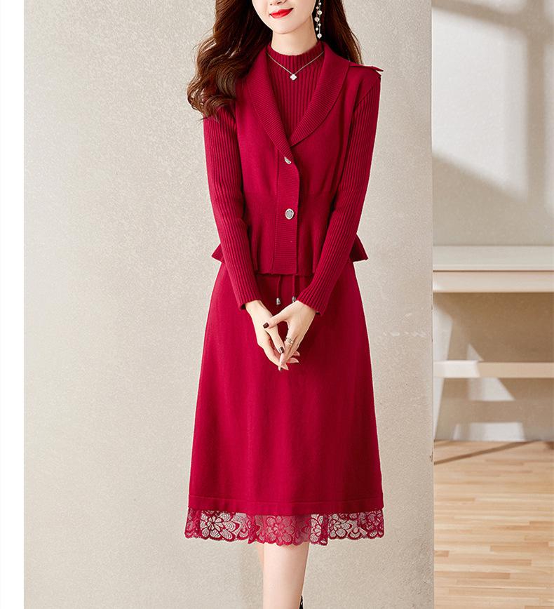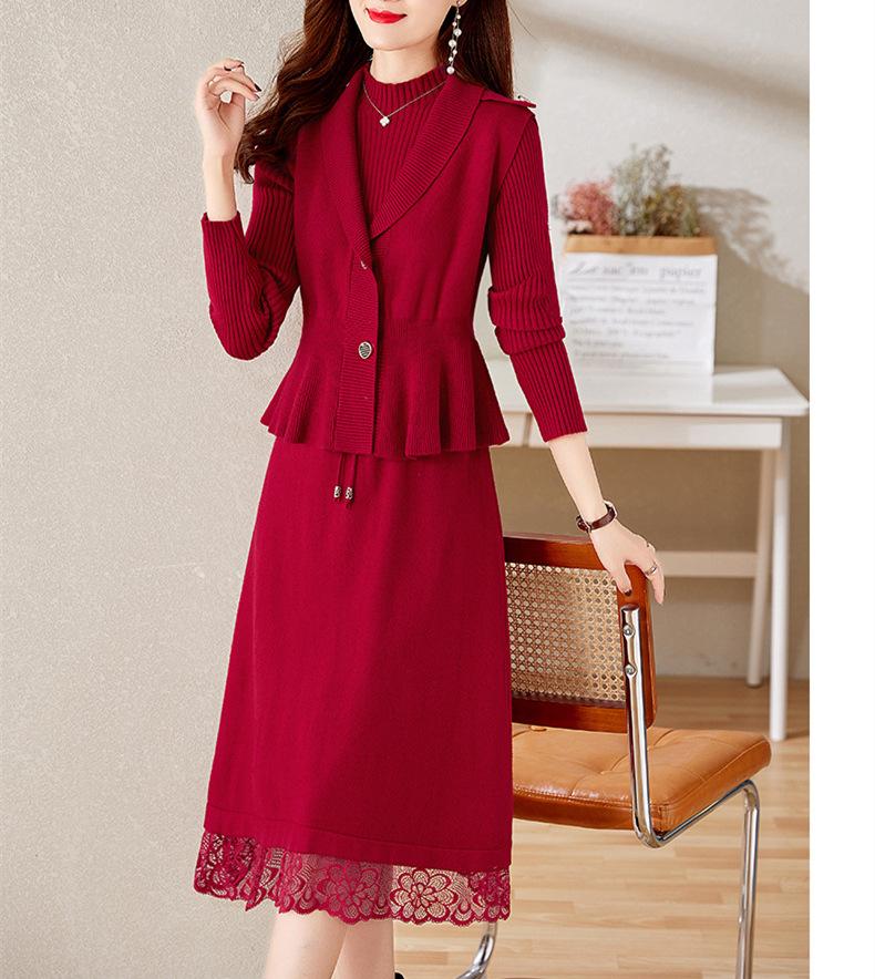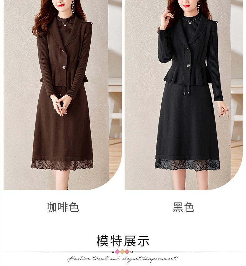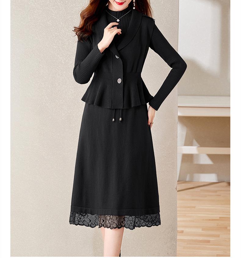 Vestido de Punto de Moda Nueva para Otoño/Invierno 2025 para Mujer, Adelgazante, Chaleco de Color Sólido Versátil, Vestido Base de Suéter, Conjunto de Dos Piezas