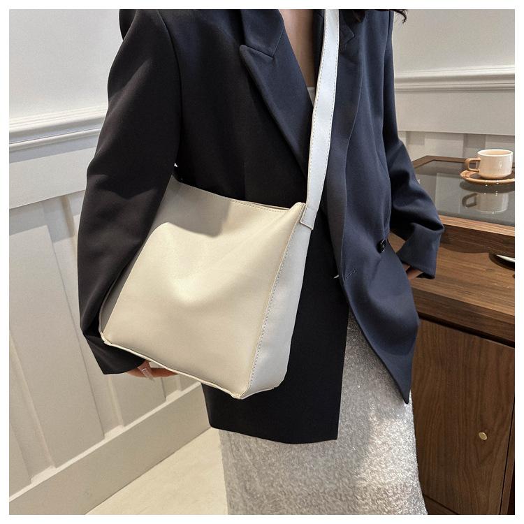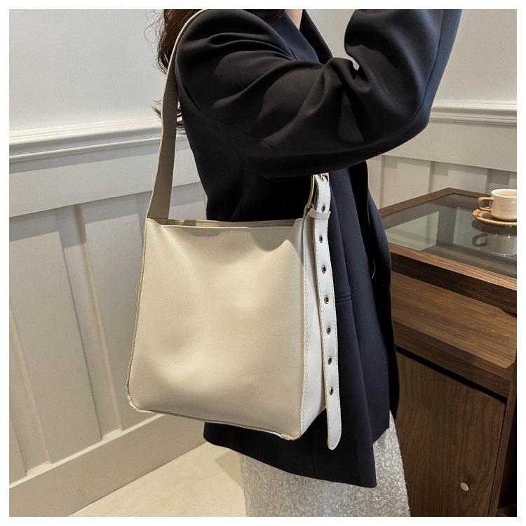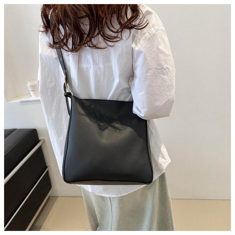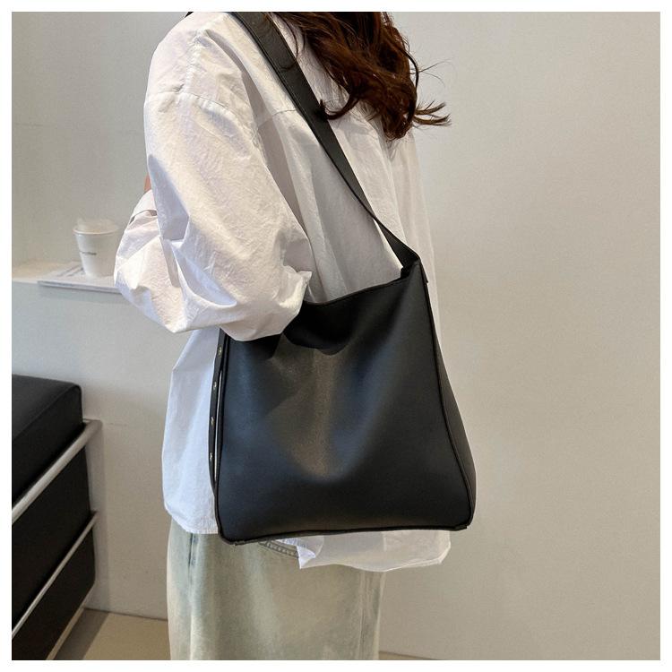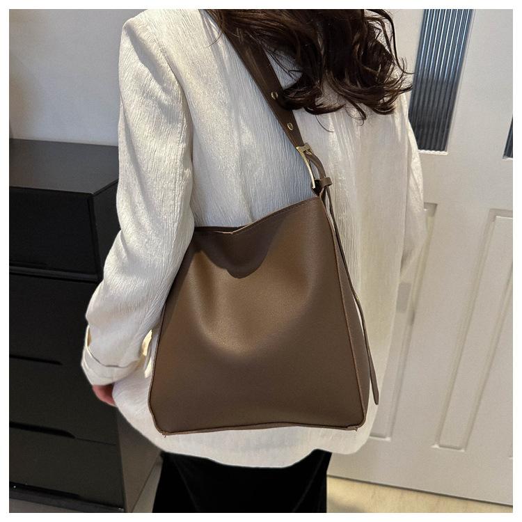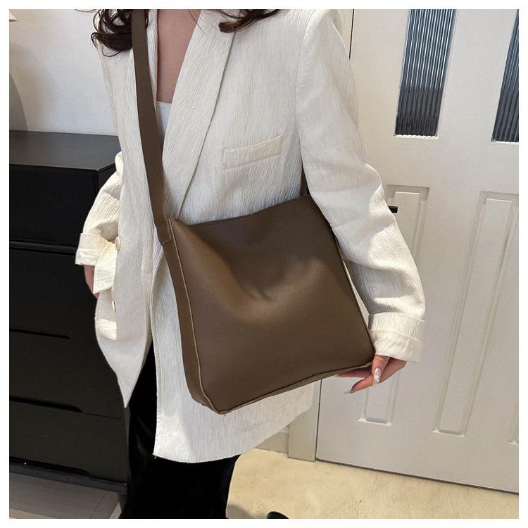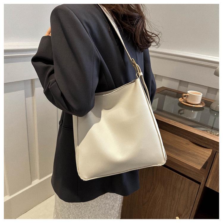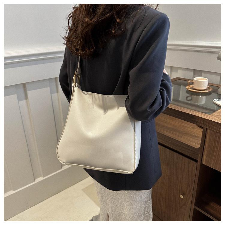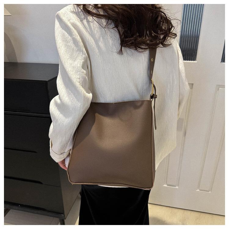 Bolso tote simple de color sólido y gran capacidad para mujer 2024 primavera y verano nuevo bolso tipo cubo retro para ir al trabajo, de hombro o bandolera