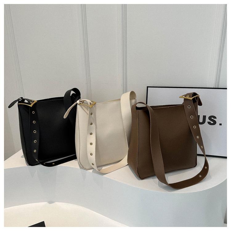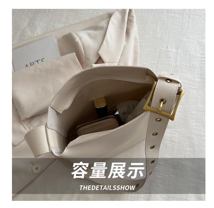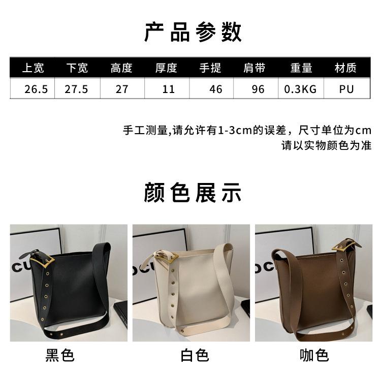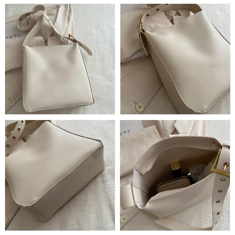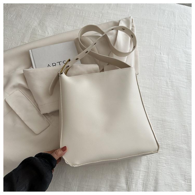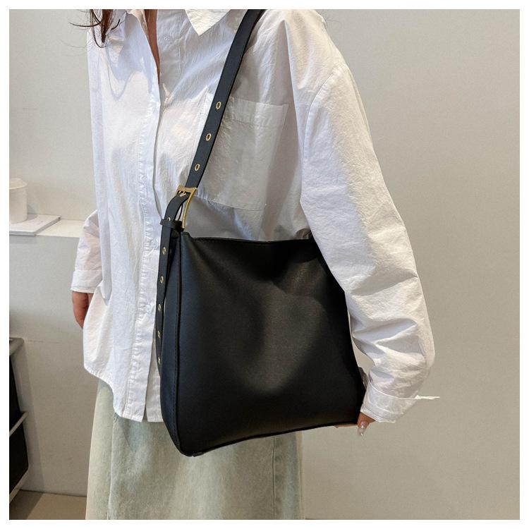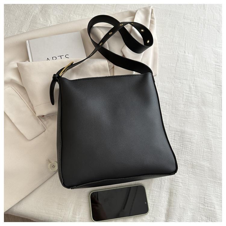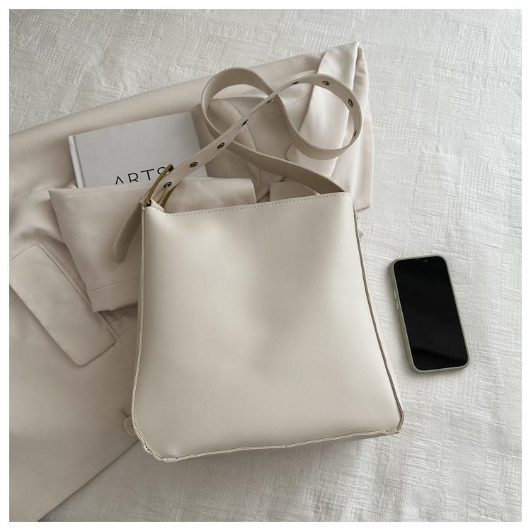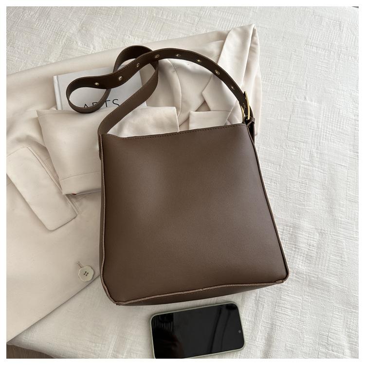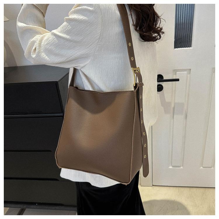 Bolso tote simple de color sólido y gran capacidad para mujer 2024 primavera y verano nuevo bolso tipo cubo retro para ir al trabajo, de hombro o bandolera