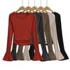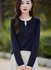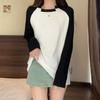 Camiseta básica de color sólido con cuello redondo, otoño, nuevo diseño, top elegante con empalme, camiseta decorativa de manga larga para mujer