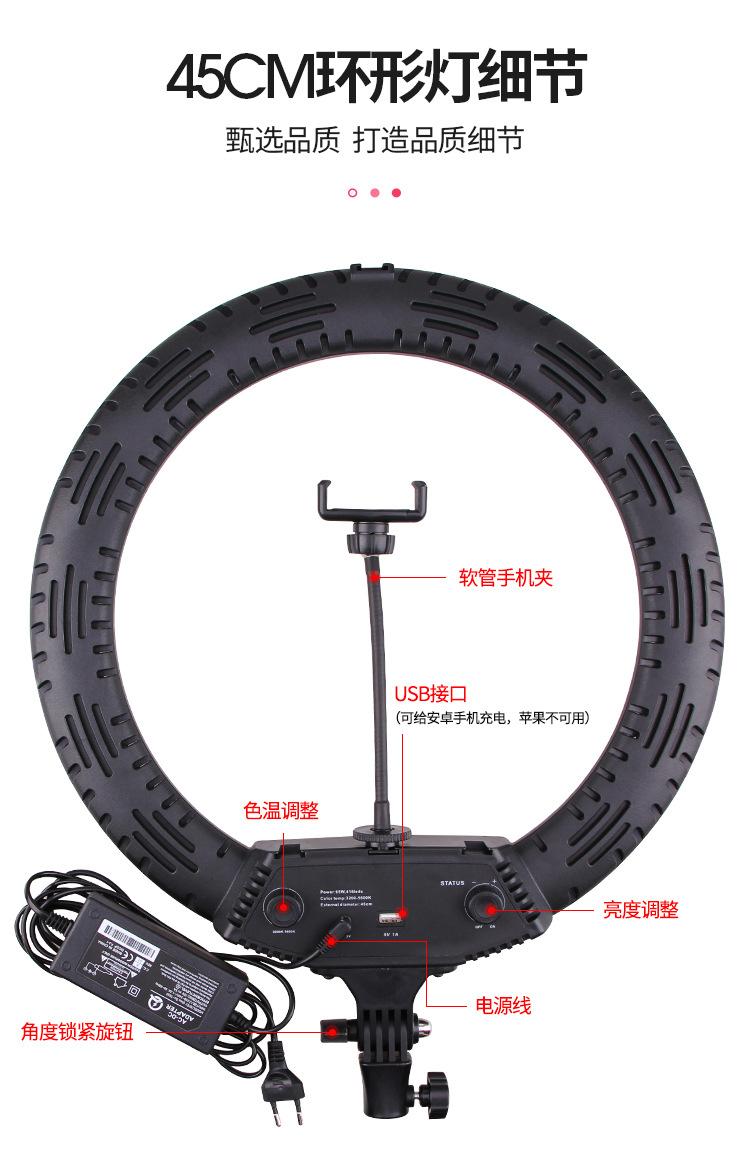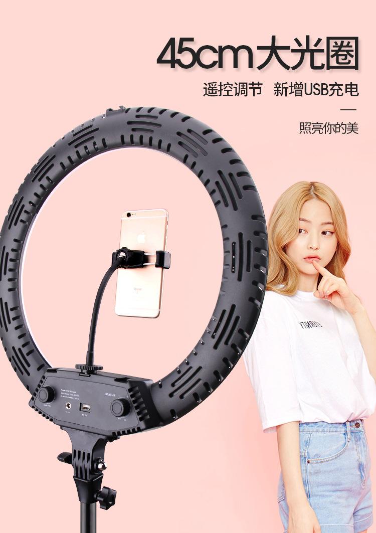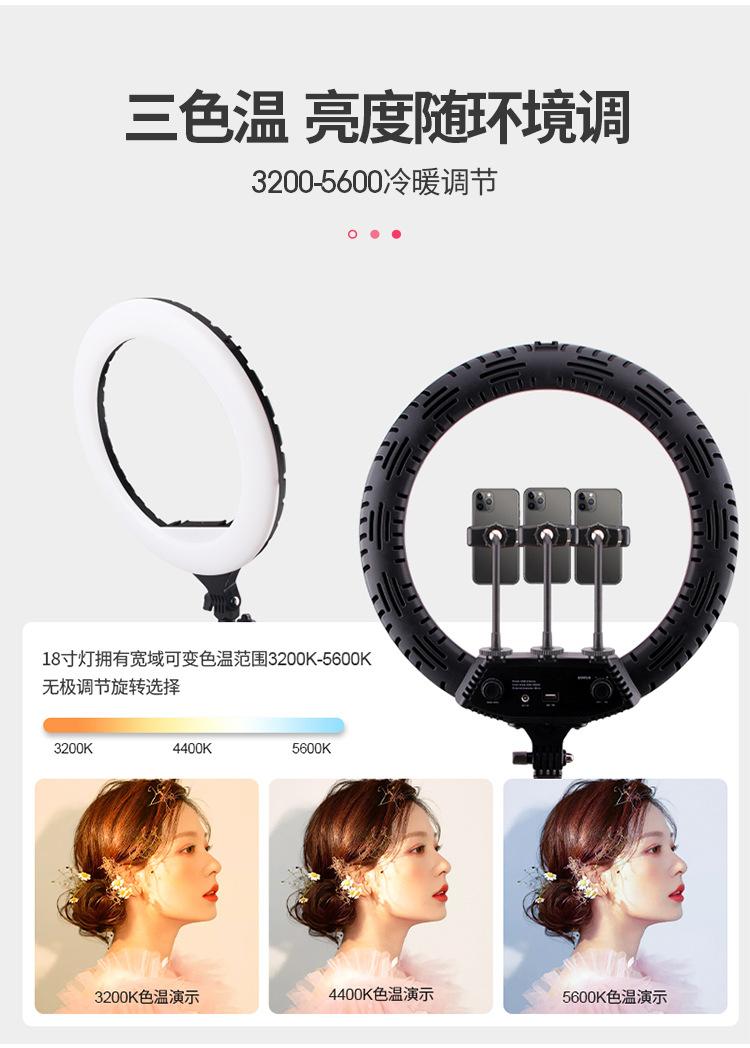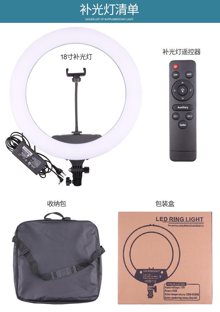 Luz de relleno para fotografía de ancla, transmisión en vivo de Douyin Kuaishou, anillo de luz LED de 18 pulgadas, soporte para teléfono móvil, trípode