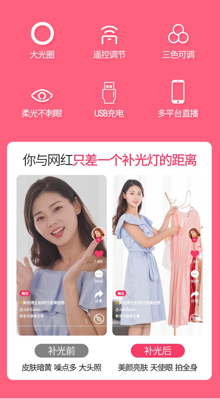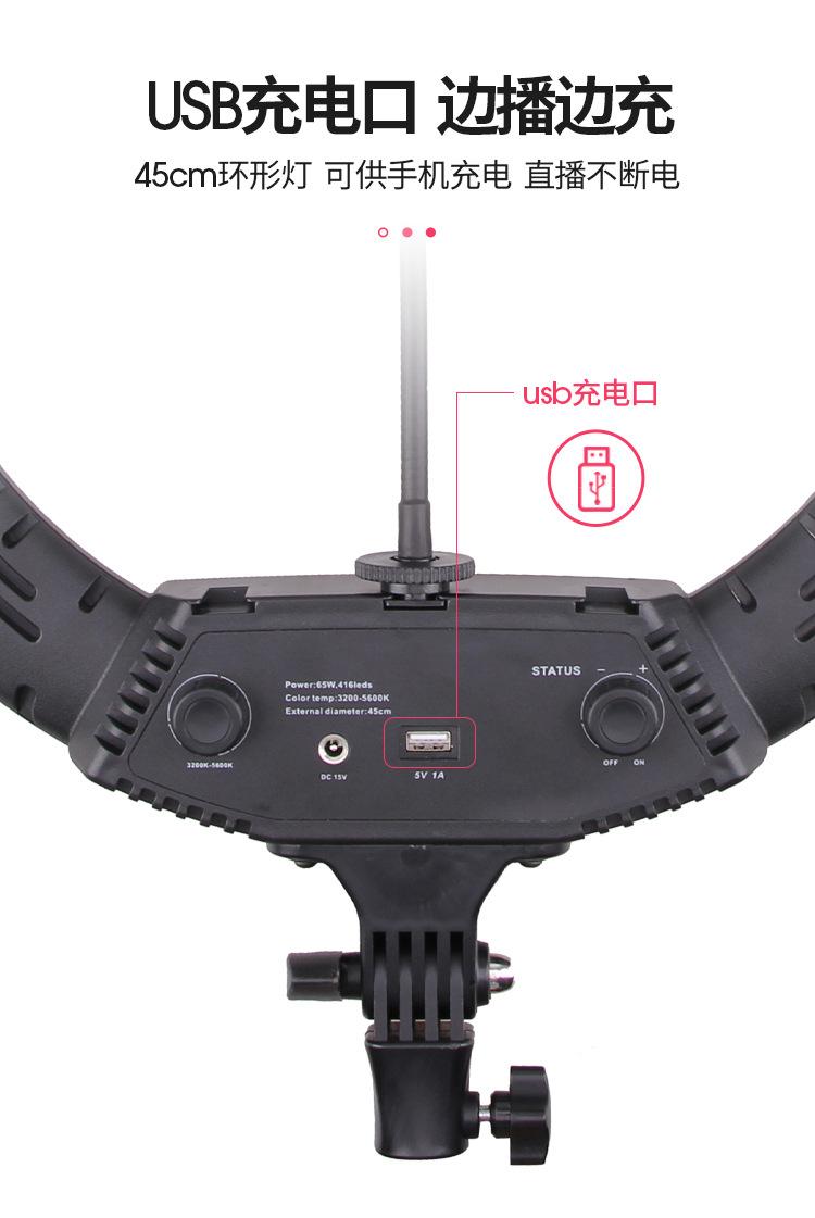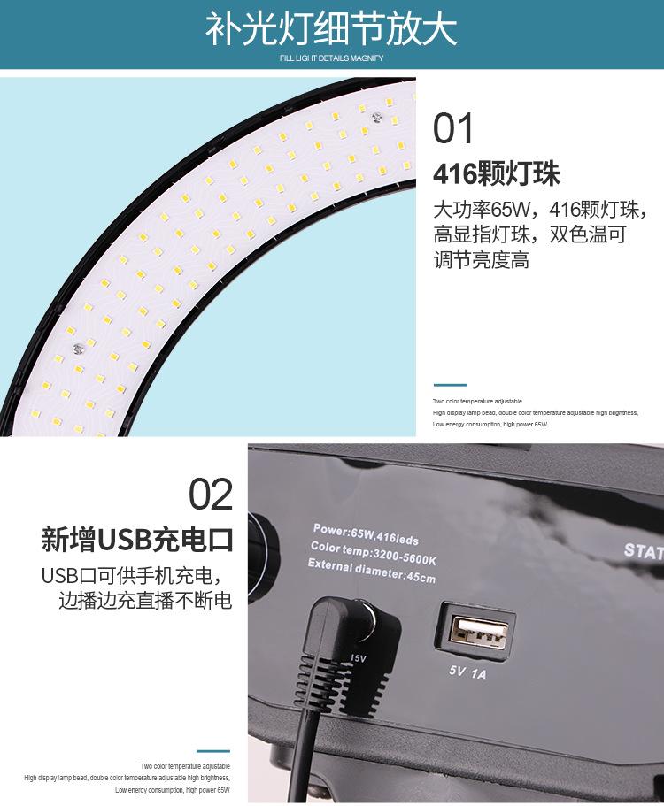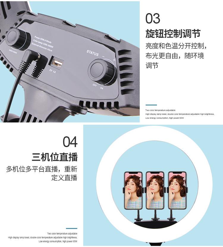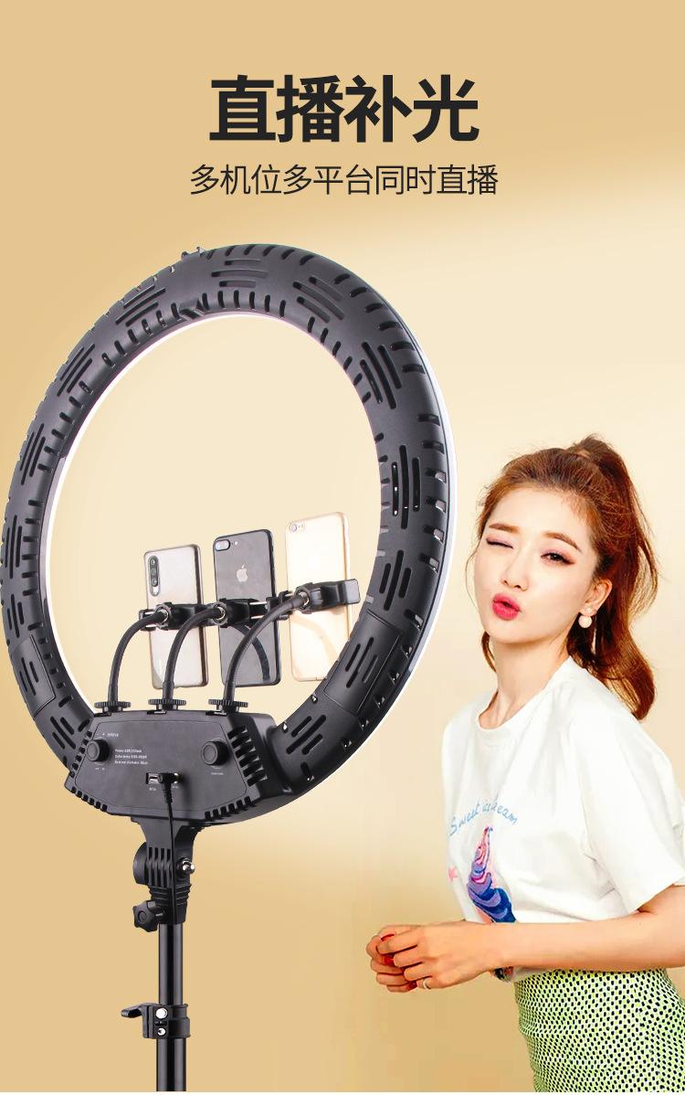 Luz de relleno para fotografía de ancla, transmisión en vivo de Douyin Kuaishou, anillo de luz LED de 18 pulgadas, soporte para teléfono móvil, trípode