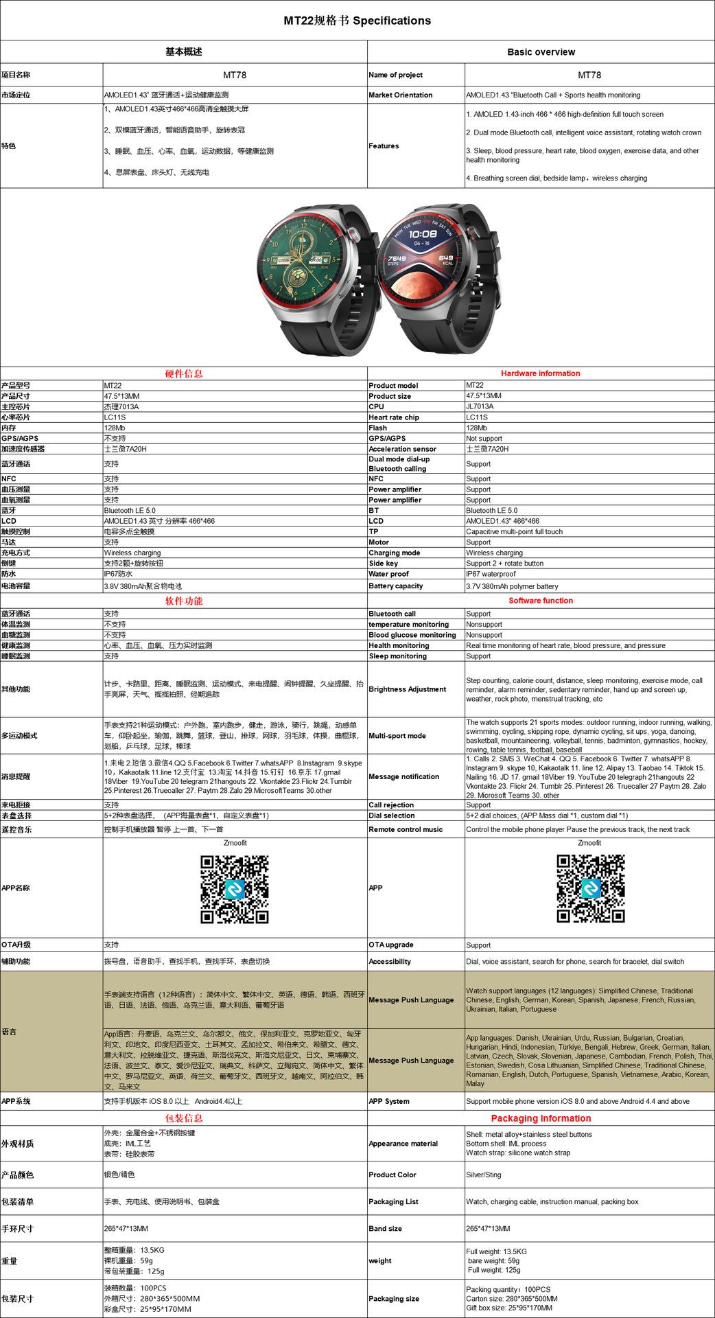 Nuevo reloj inteligente transfronterizo MT78, llamada Bluetooth, frecuencia cardíaca, presión arterial, salud, pantalla AMOLED, reloj deportivo, generación de cabello