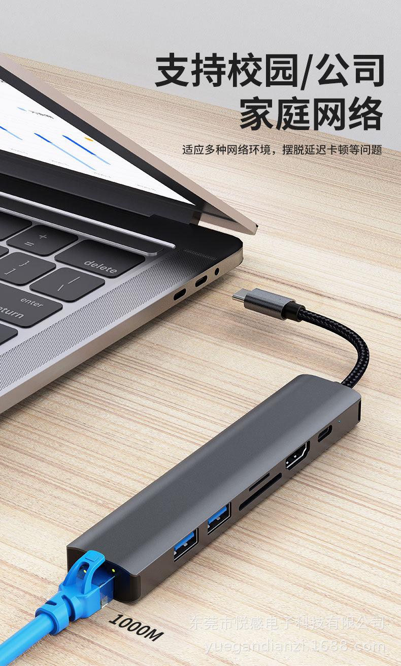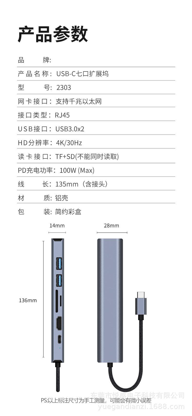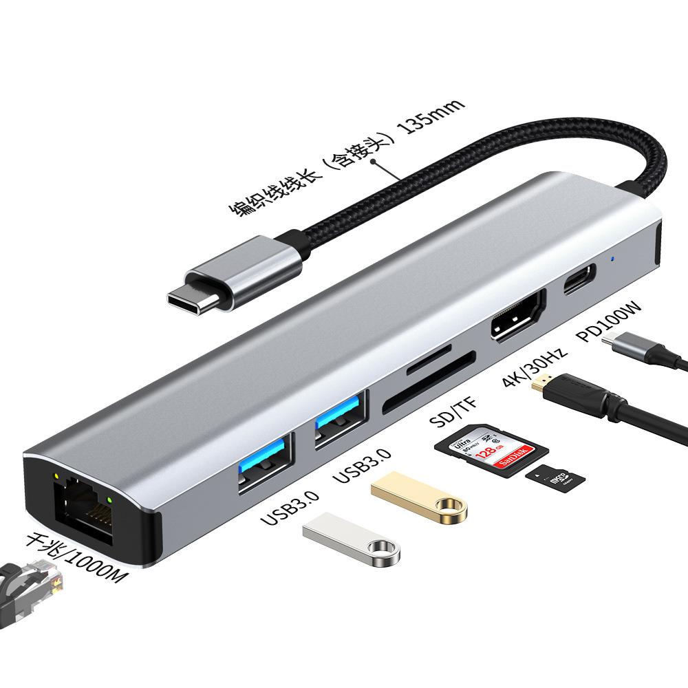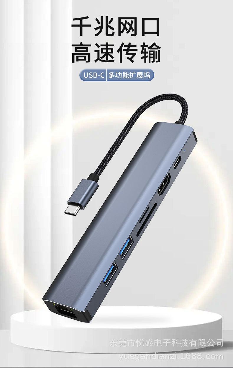 Estación de acoplamiento transfronteriza siete en uno, convertidor de portátil Type-C, base de expansión de tarjeta de red Gigabit USB 3.0