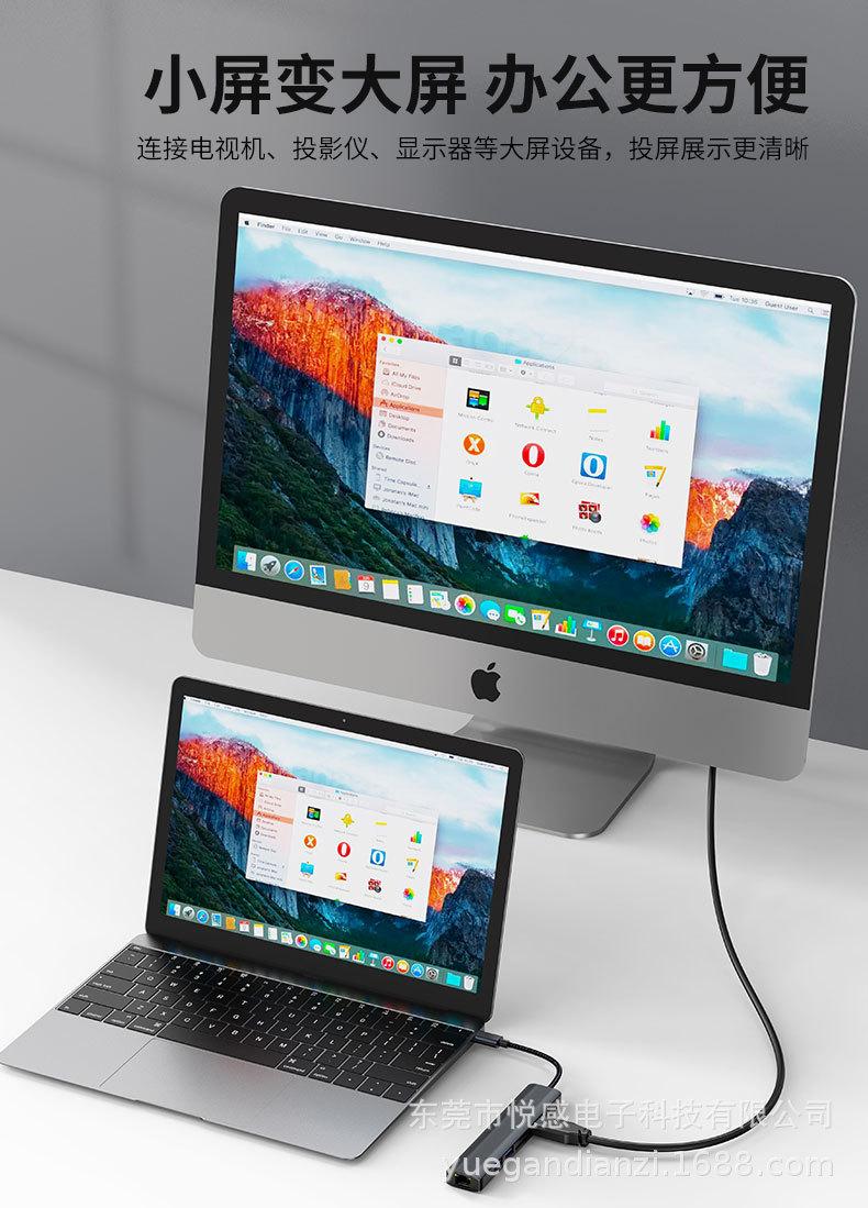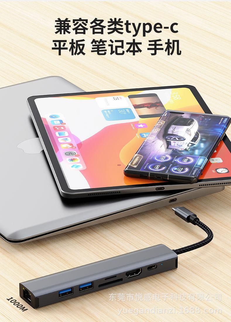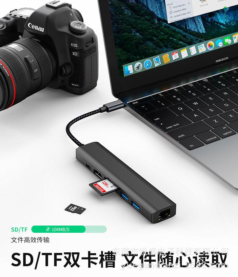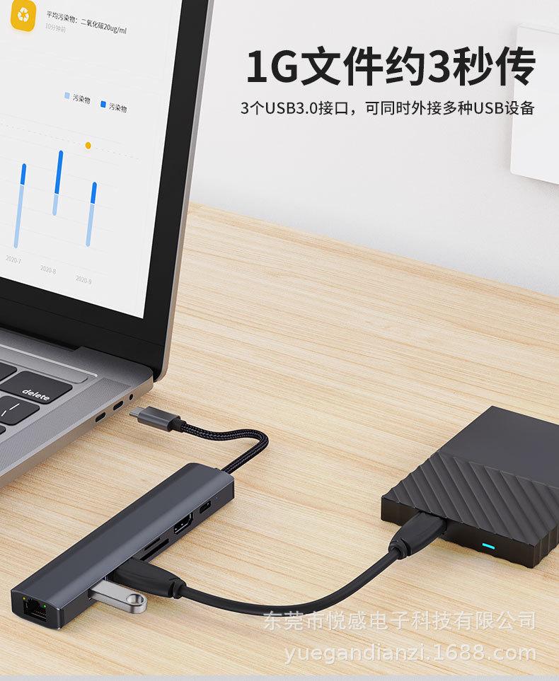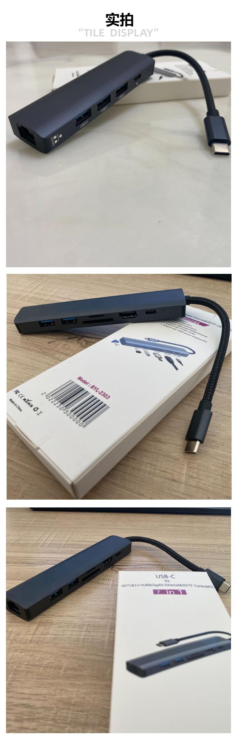 Estación de acoplamiento transfronteriza siete en uno, convertidor de portátil Type-C, base de expansión de tarjeta de red Gigabit USB 3.0