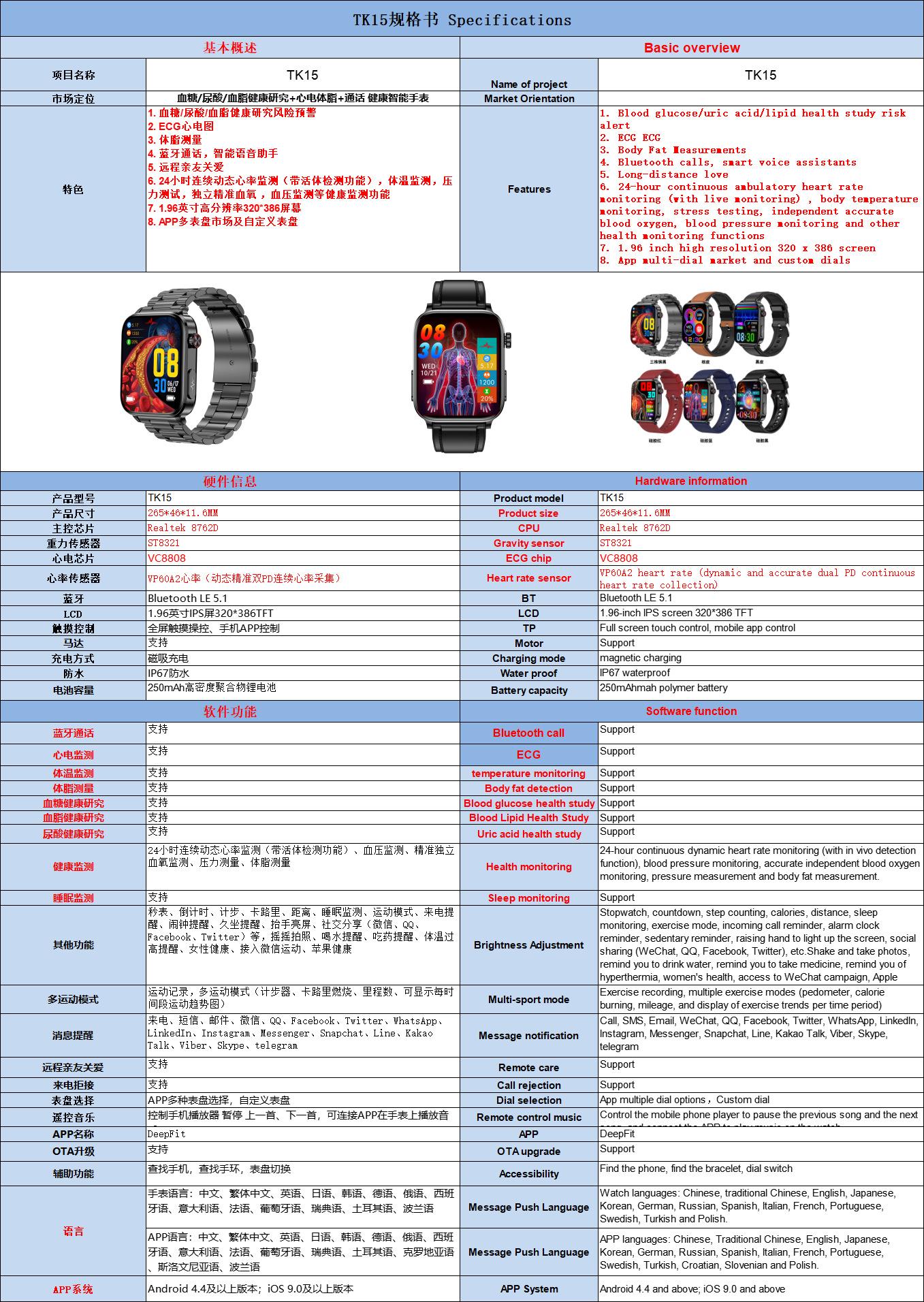 Nuevo Reloj Inteligente TK15 ECG glucosa en sangre ácido úrico llamada Bluetooth temperatura corporal frecuencia cardíaca multideporte