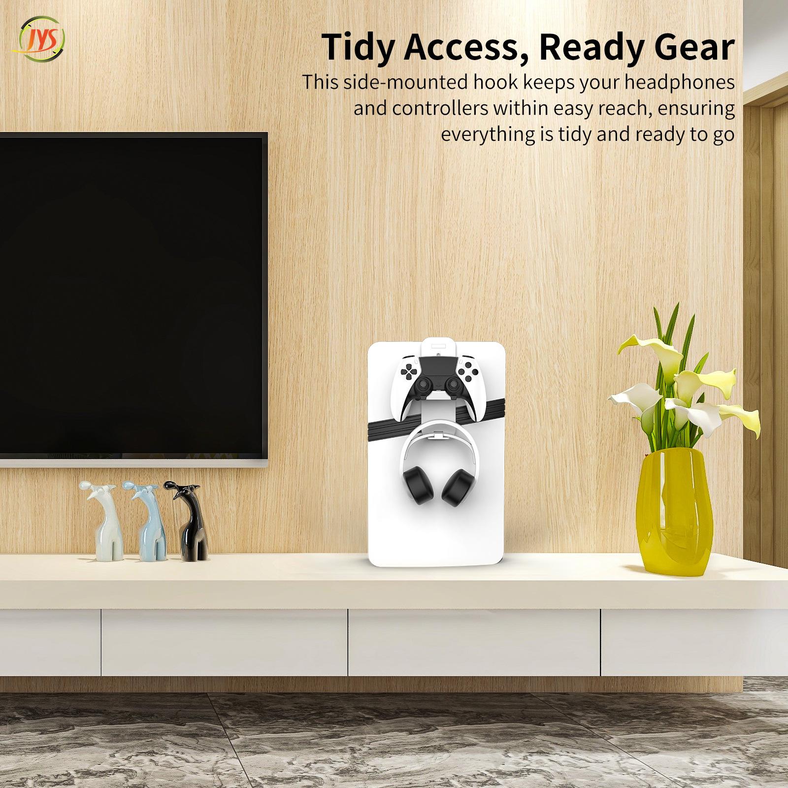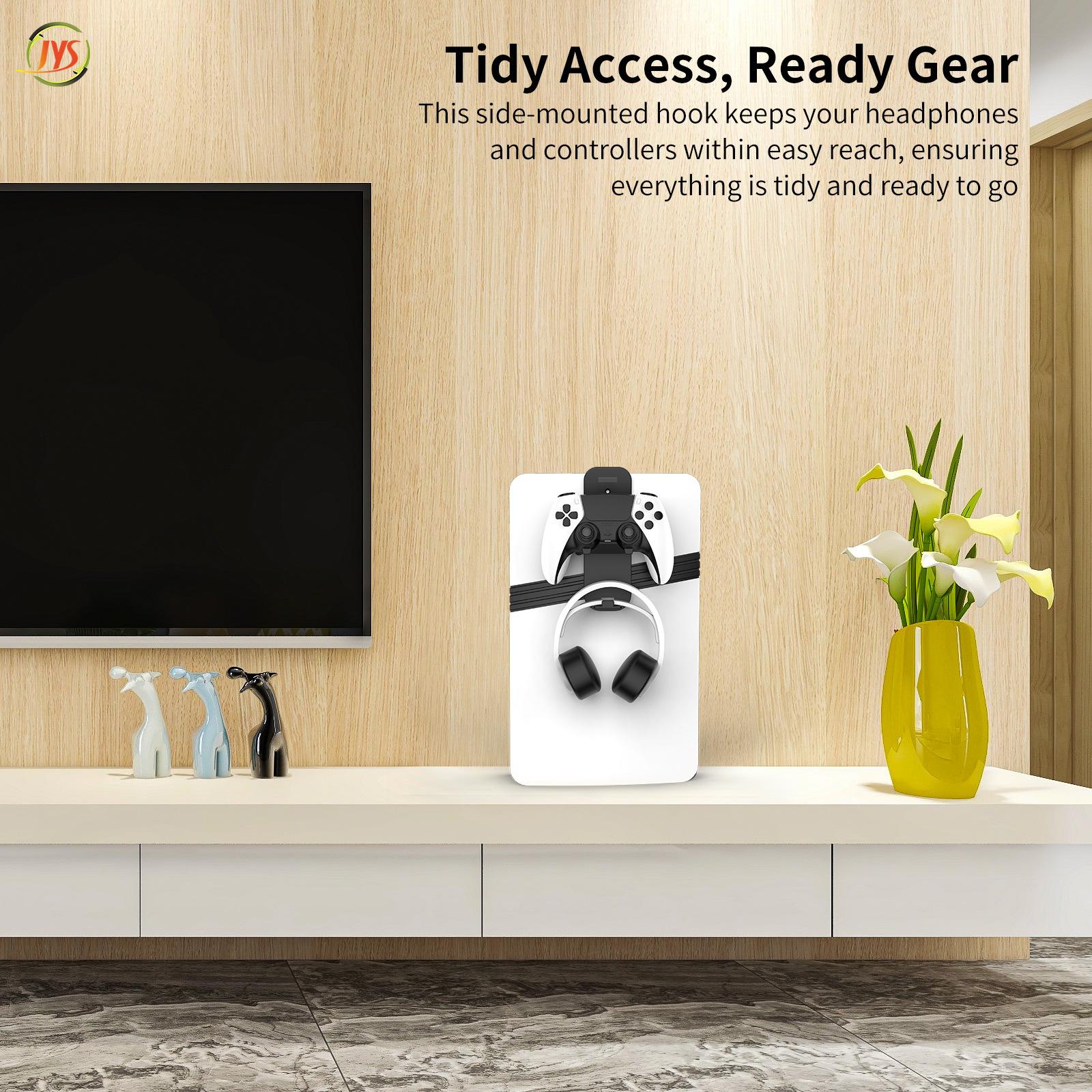 *El diseño de gancho desmontable en la parte superior se puede colgar en la consola PS5 para guardar accesorios como controles y auriculares de manera ordenada; los orificios para tornillos reservados en la parte superior también pueden utilizar el espacio de la pared para guardar accesorios como controles y auriculares de manera ordenada; también puedes usar adhesivo 3M importado para adherirlo firmemente y de manera estable a la mayoría de las superficies lisas, y usar todo el espacio libre para guardar accesorios como controles y auriculares.