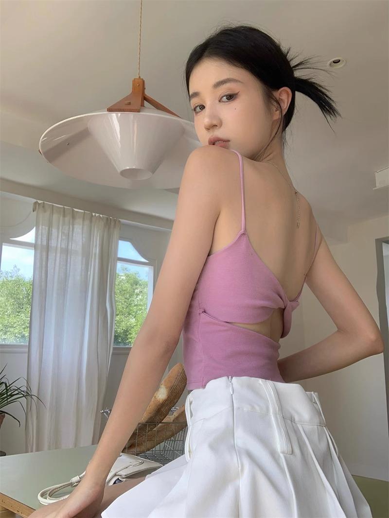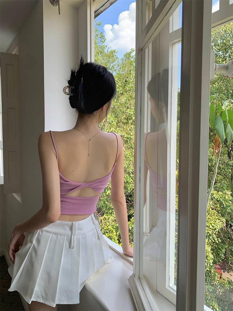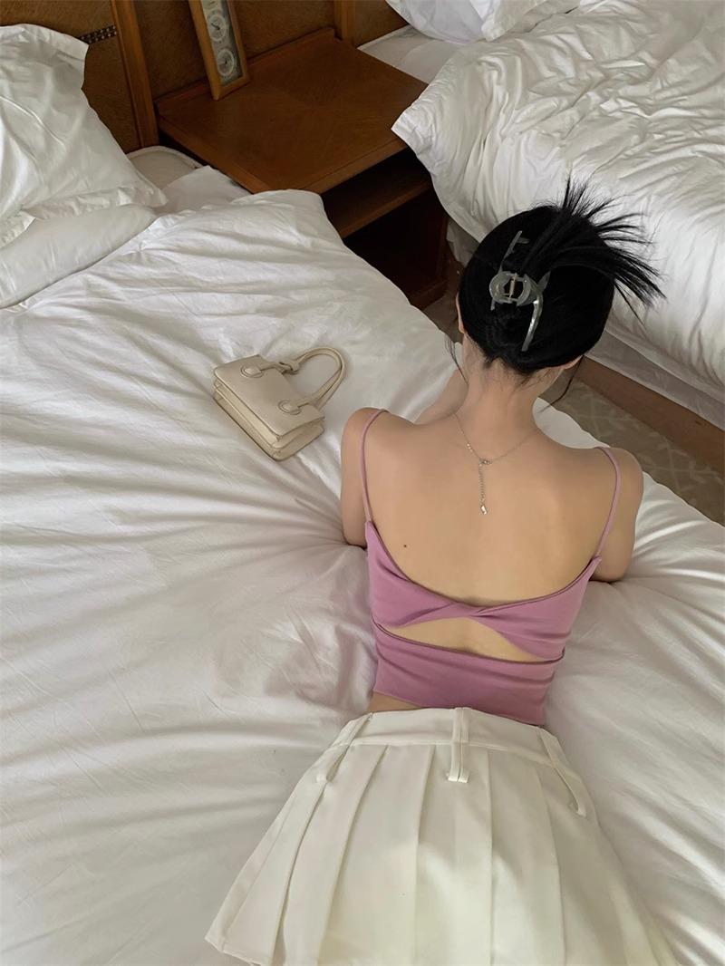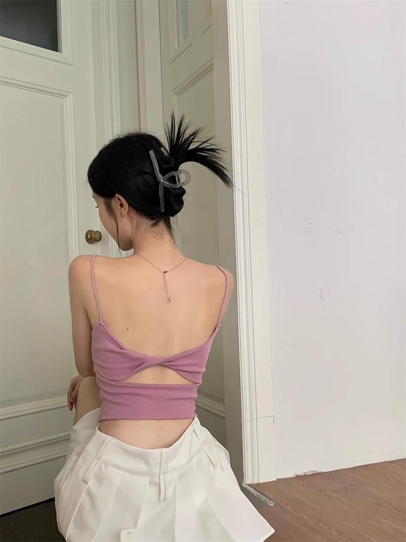 Camisola sexy para chica con almohadilla en el pecho para mujer, verano 2023, nueva camiseta de temperamento retorcido, ajustada, sin espalda y combinable.
