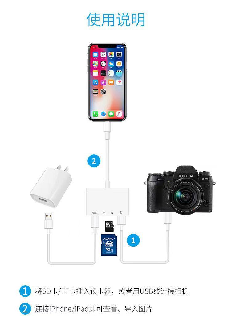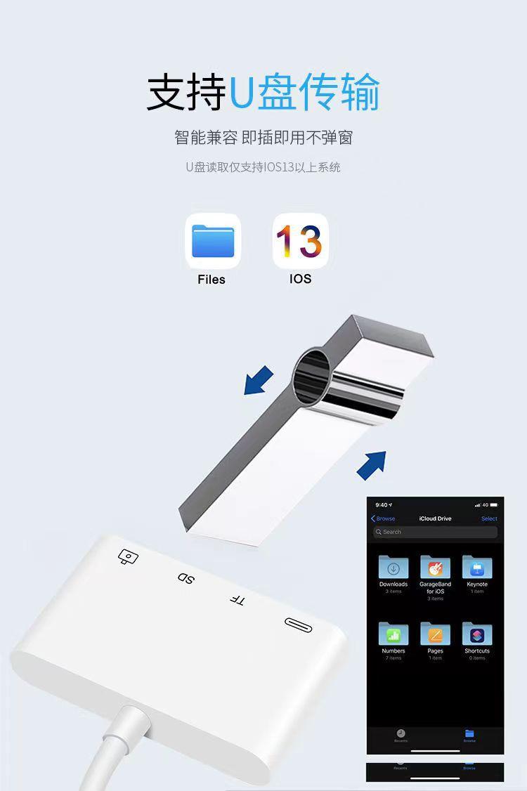Aplicable al lector de tarjetas de teléfono móvil de Apple, lector de tarjetas OTG cuatro en uno, carga de tarjetas de memoria SD/TF, fuente de alimentación PD, multifuncional