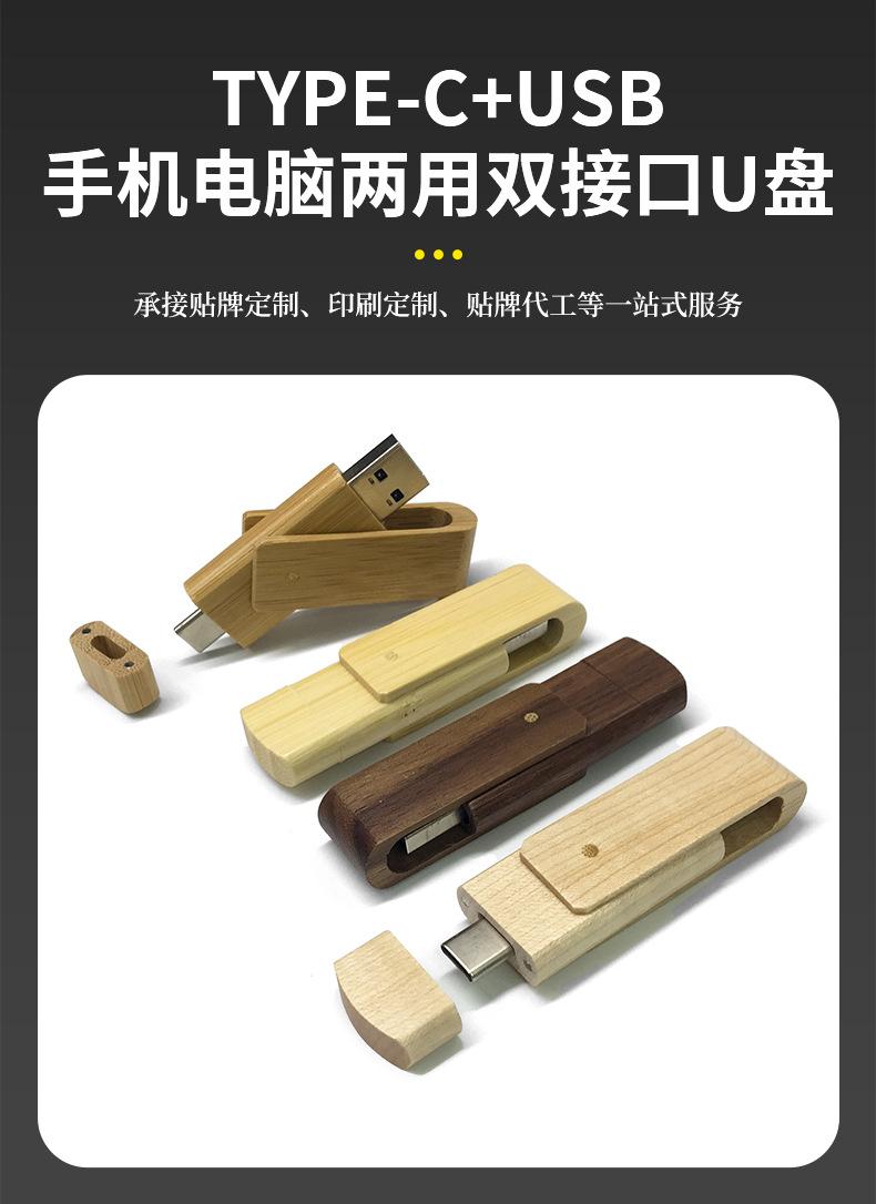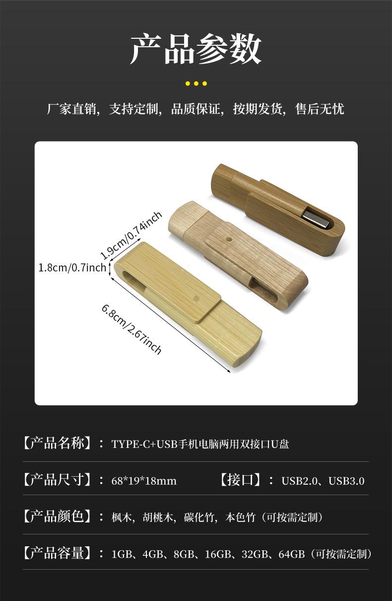 Memoria USB tipo C de 64 GB en color nogal, con logotipo imprimible.