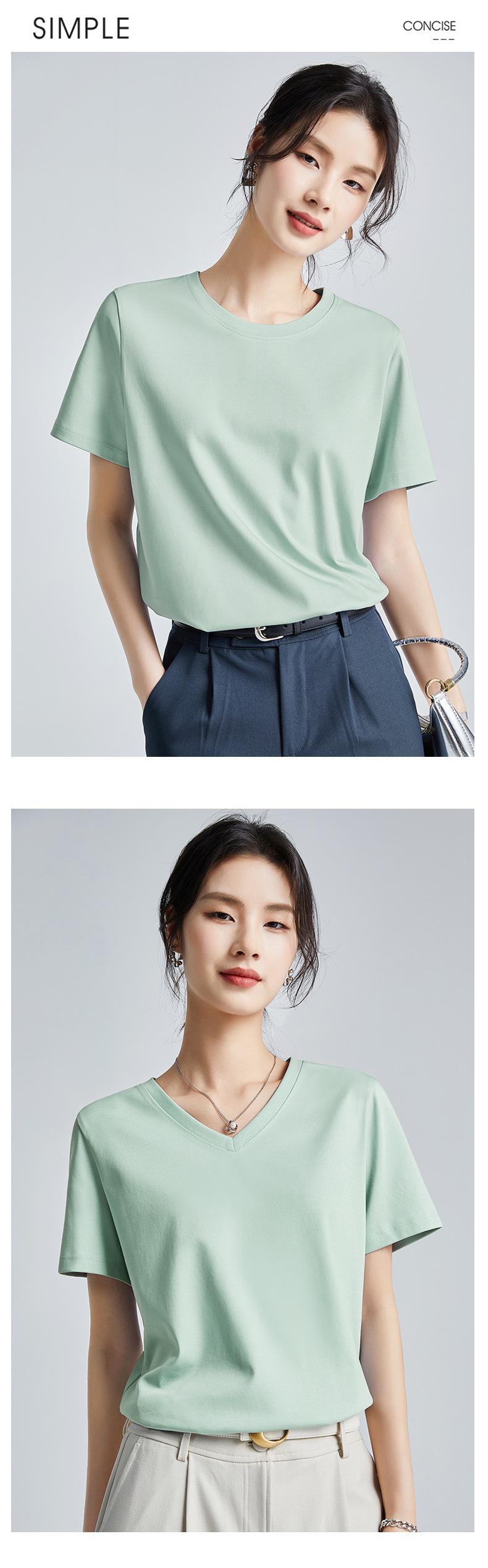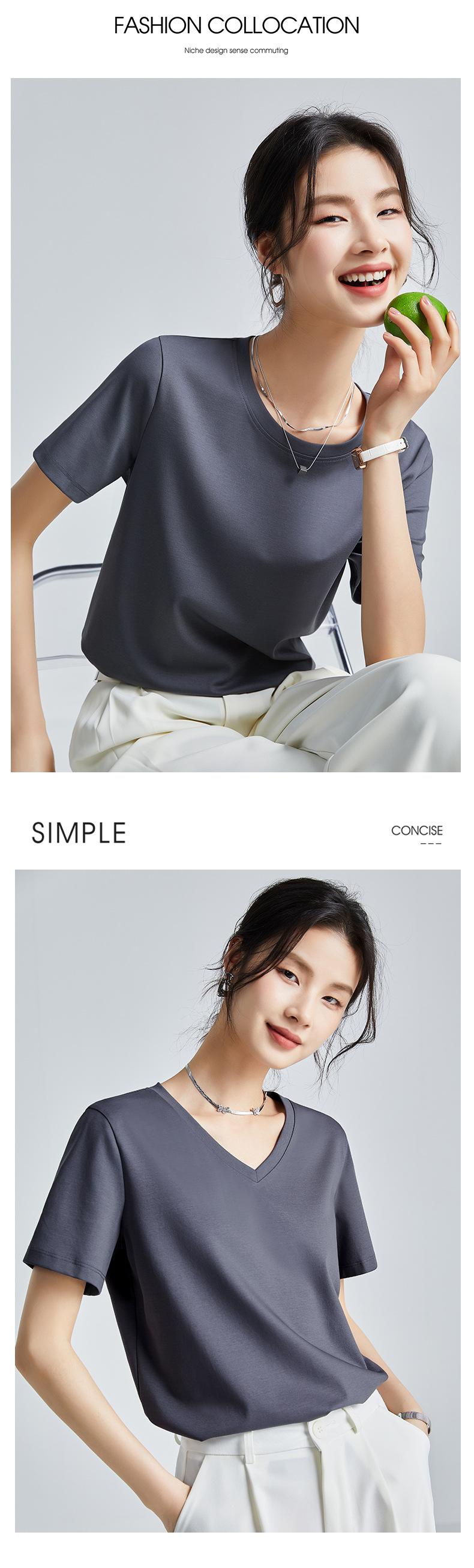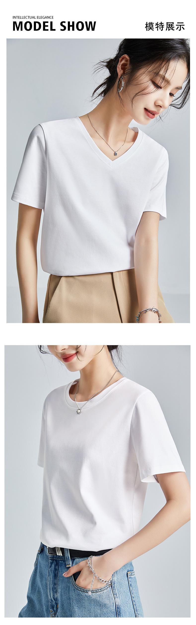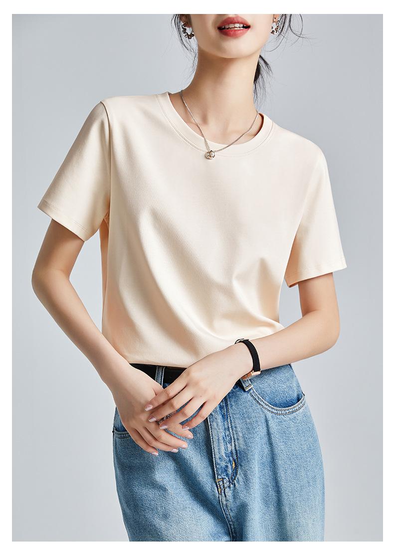 Camiseta Blanca Sencilla de Algodón Mercerizado de Doble Cara de 80 Hilos de Corte Slim Fit de Manga Corta para Mujer Verano 2025 Nueva Camiseta Básica de Cuello Redondo