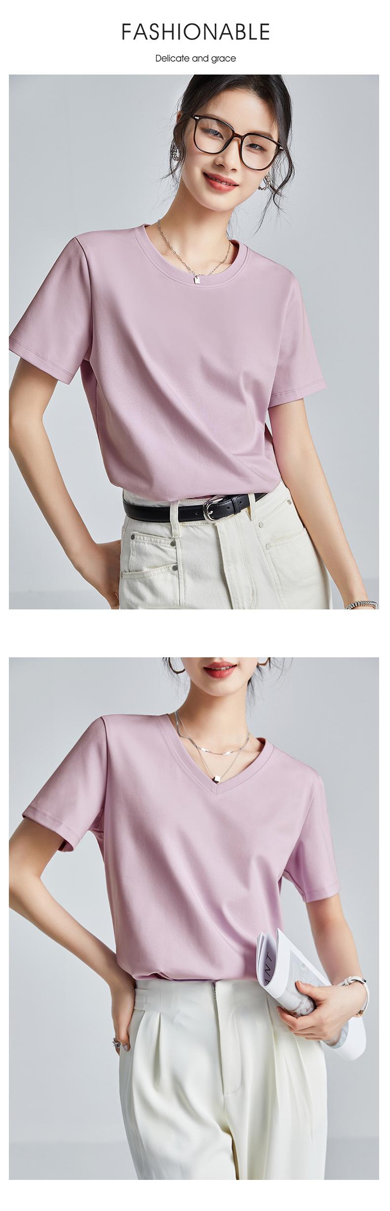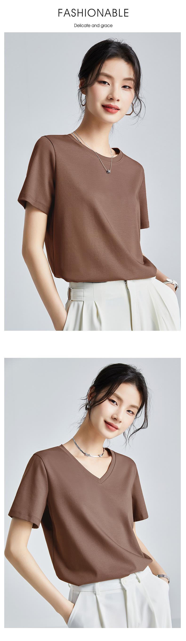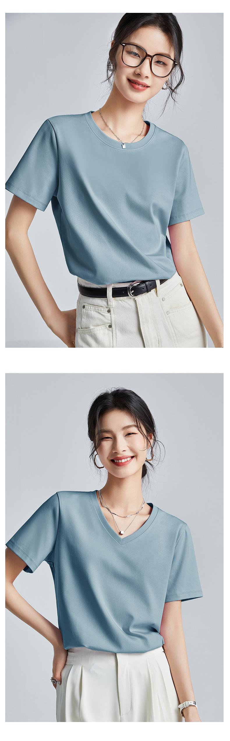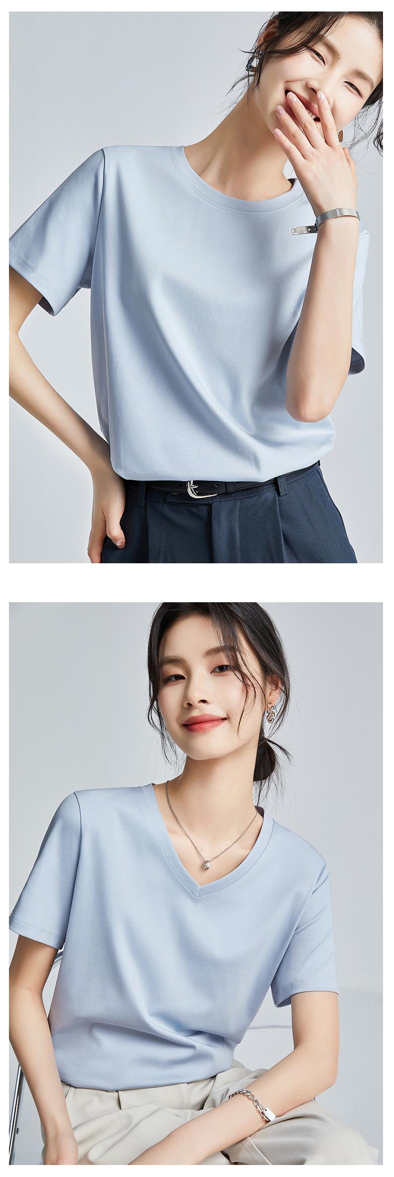 Camiseta Blanca Sencilla de Algodón Mercerizado de Doble Cara de 80 Hilos de Corte Slim Fit de Manga Corta para Mujer Verano 2025 Nueva Camiseta Básica de Cuello Redondo
