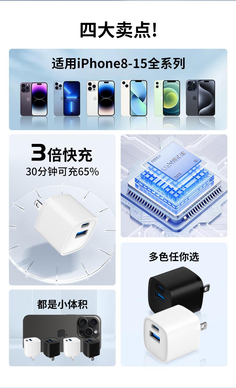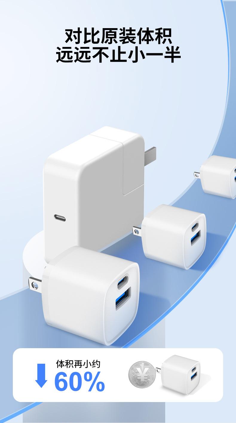 Cargador Apple PD20W de nitruro de galio, cabezal de carga rápida compatible con teléfonos móviles y tabletas Apple 14/iPhone 15.
