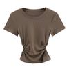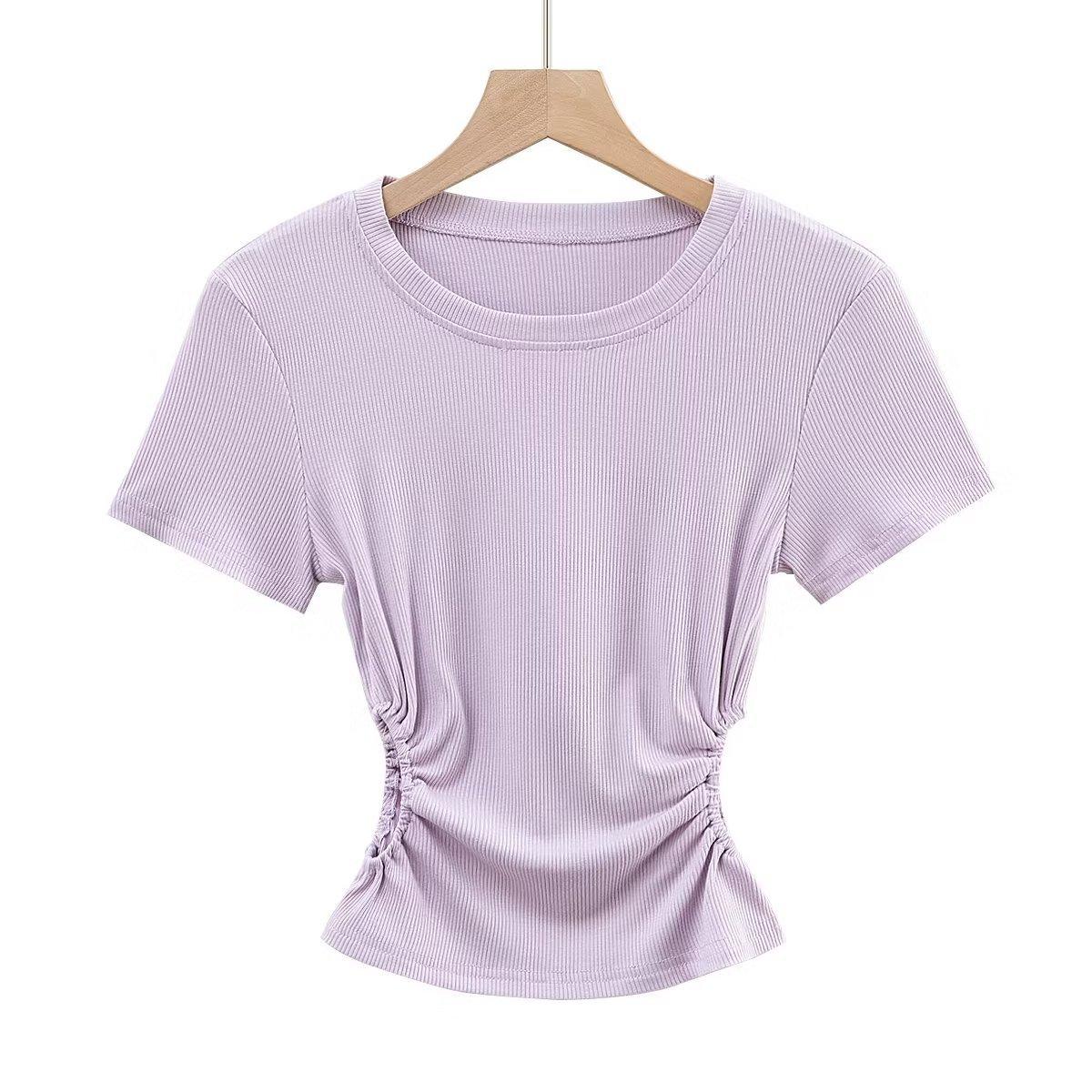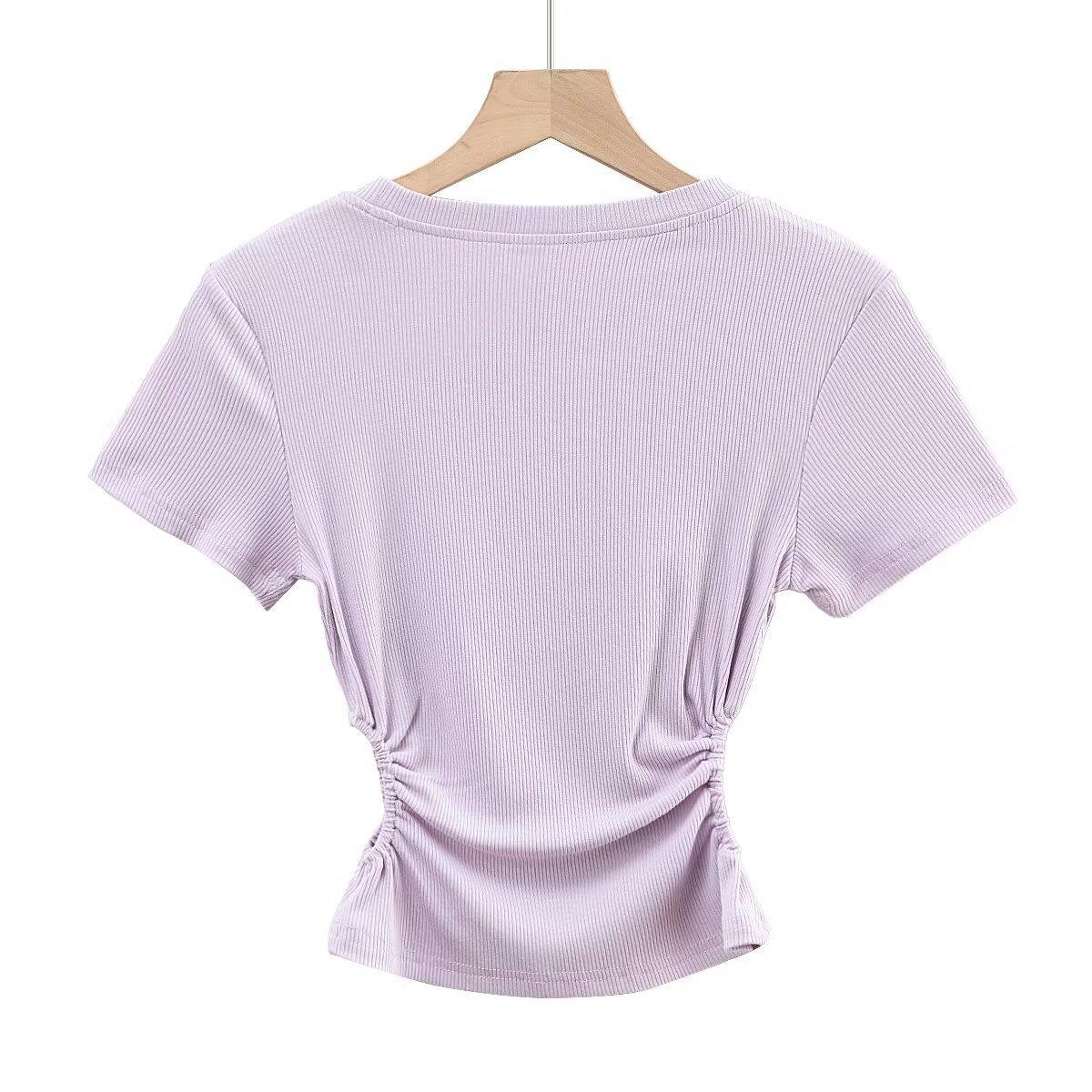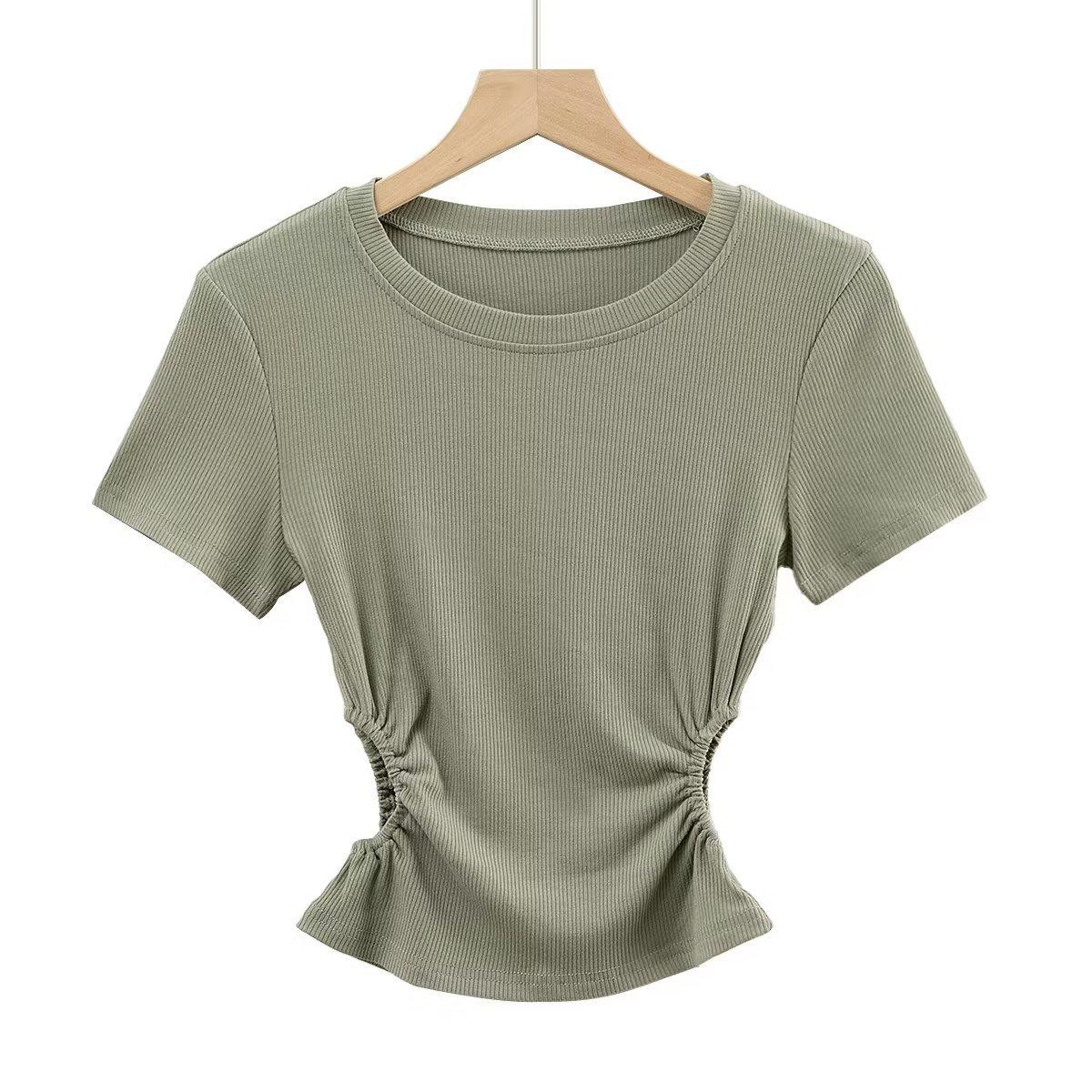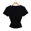 Camiseta de manga corta ajustada con cintura sexy de estilo europeo y americano para mujer, top corto adelgazante con cintura delgada, novedad de verano de 2023