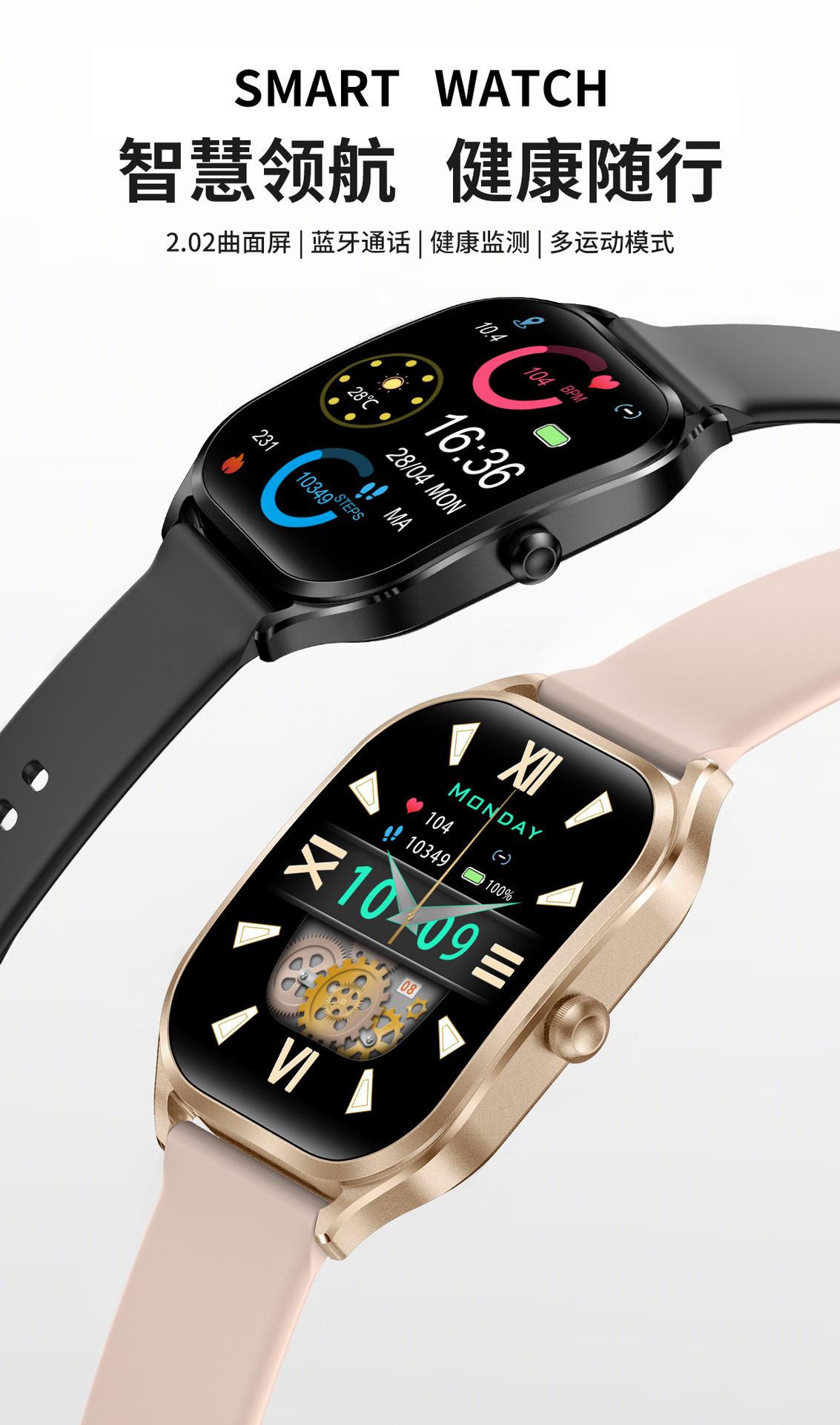 Reloj Inteligente H35 de Pantalla Grande Curva de 2.02 pulgadas HD Llamada Bluetooth Frecuencia Cardíaca Presión Arterial Oxígeno en Sangre Reloj Digital