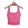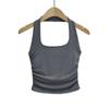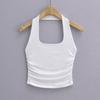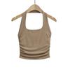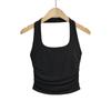 Chaleco tipo top plisado con cuello en U y cuello halter de color liso para mujer de estilo europeo y americano, C74288