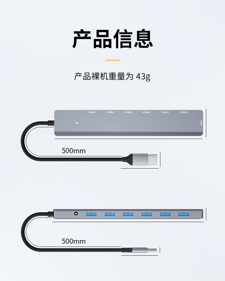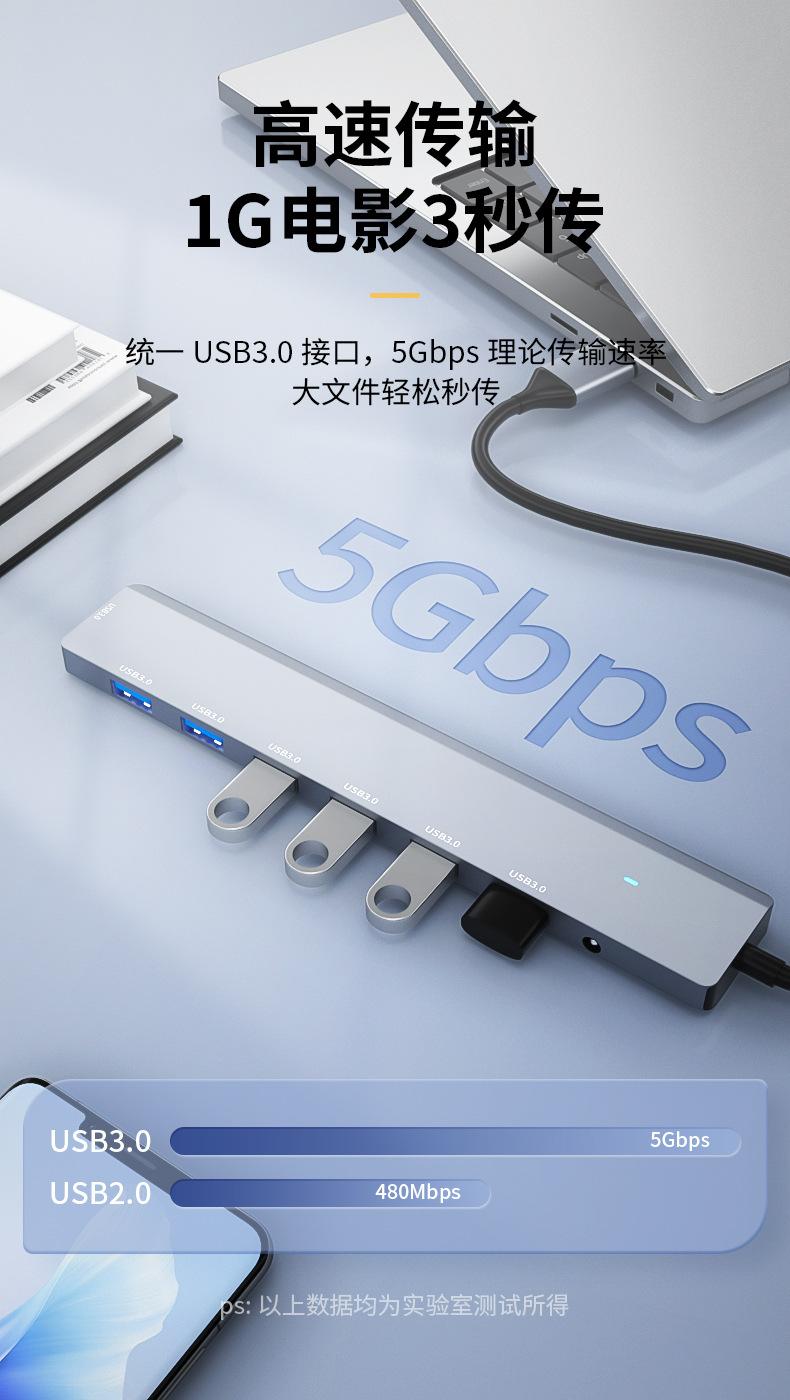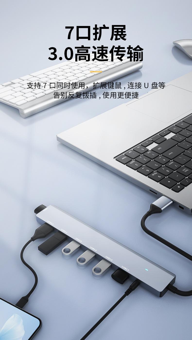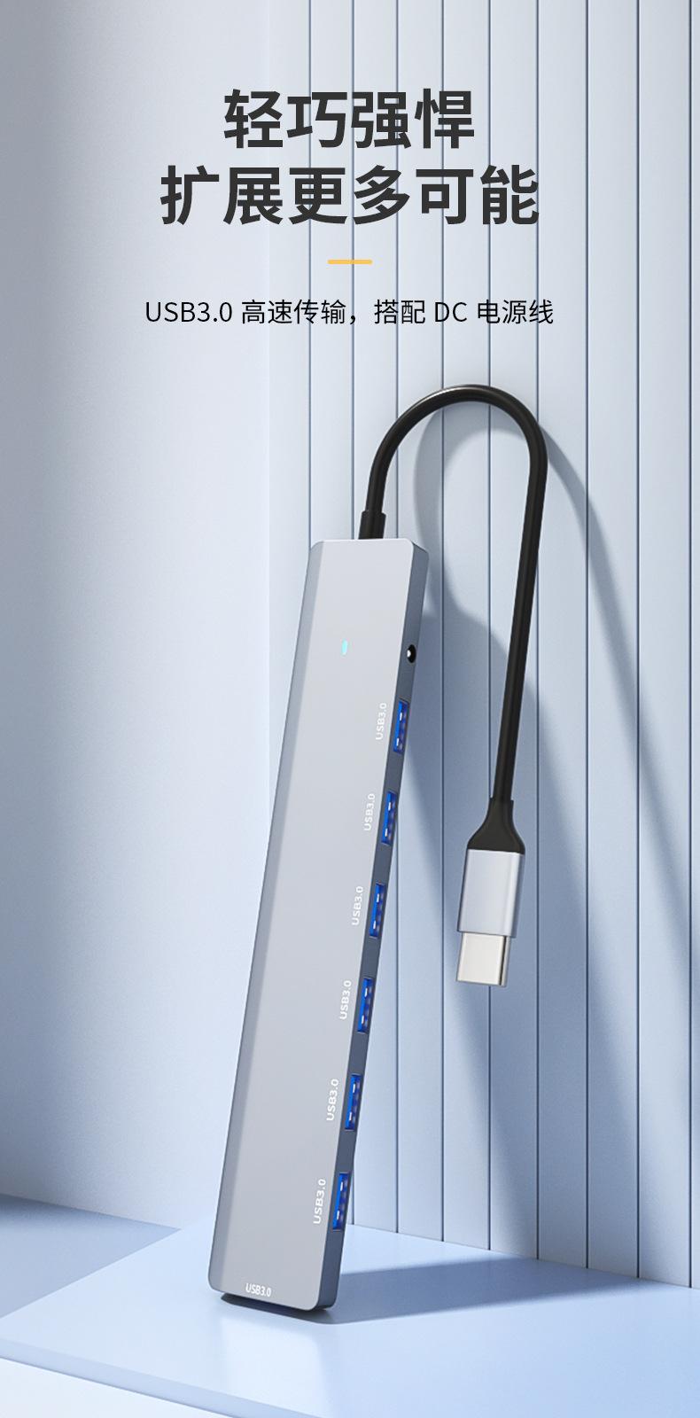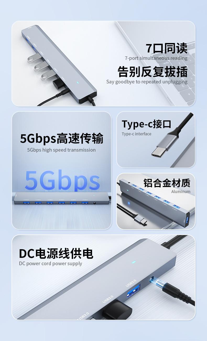 Extensor Tipo C Divisor Transfronterizo Adaptador para Laptop USB 3.0 Multipuerto Uno a Siete Base de Expansión USB