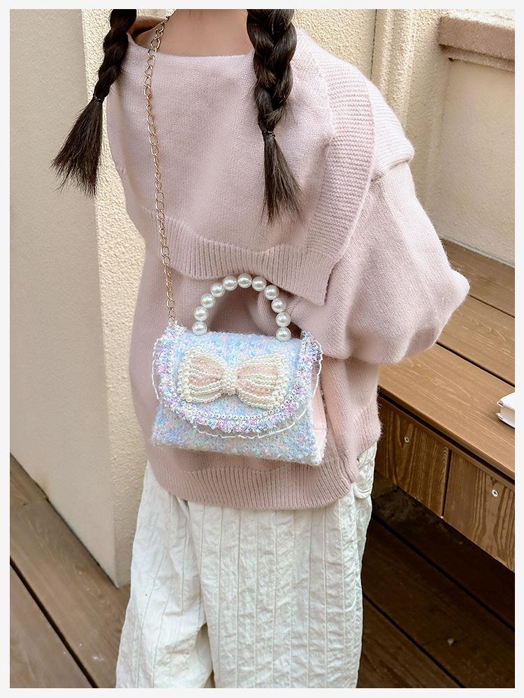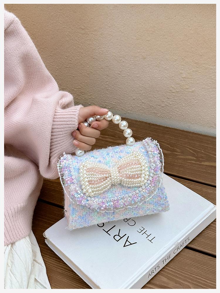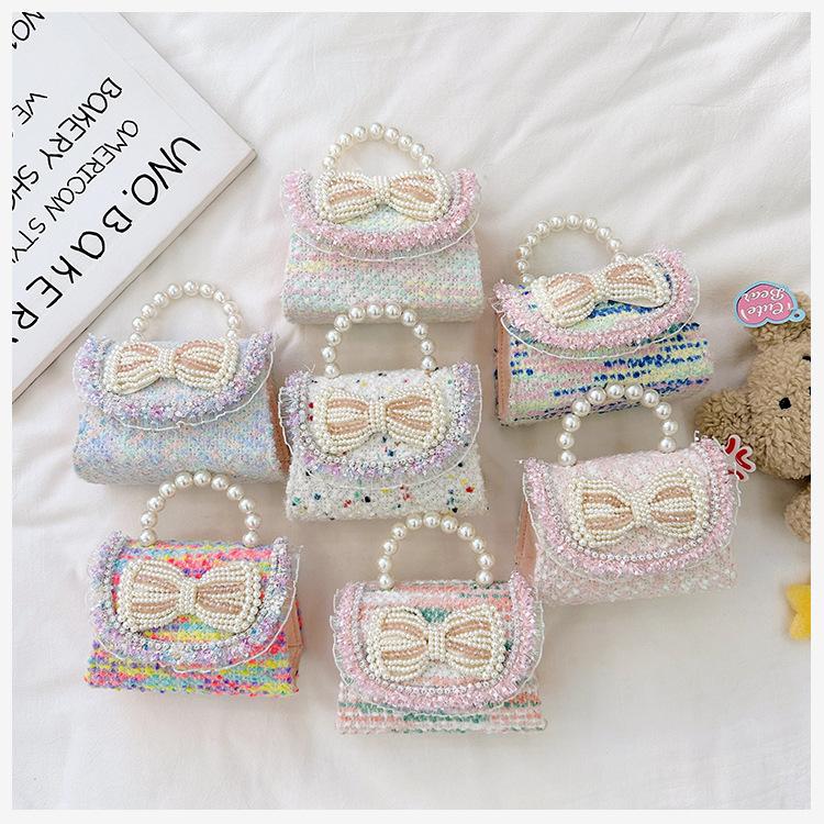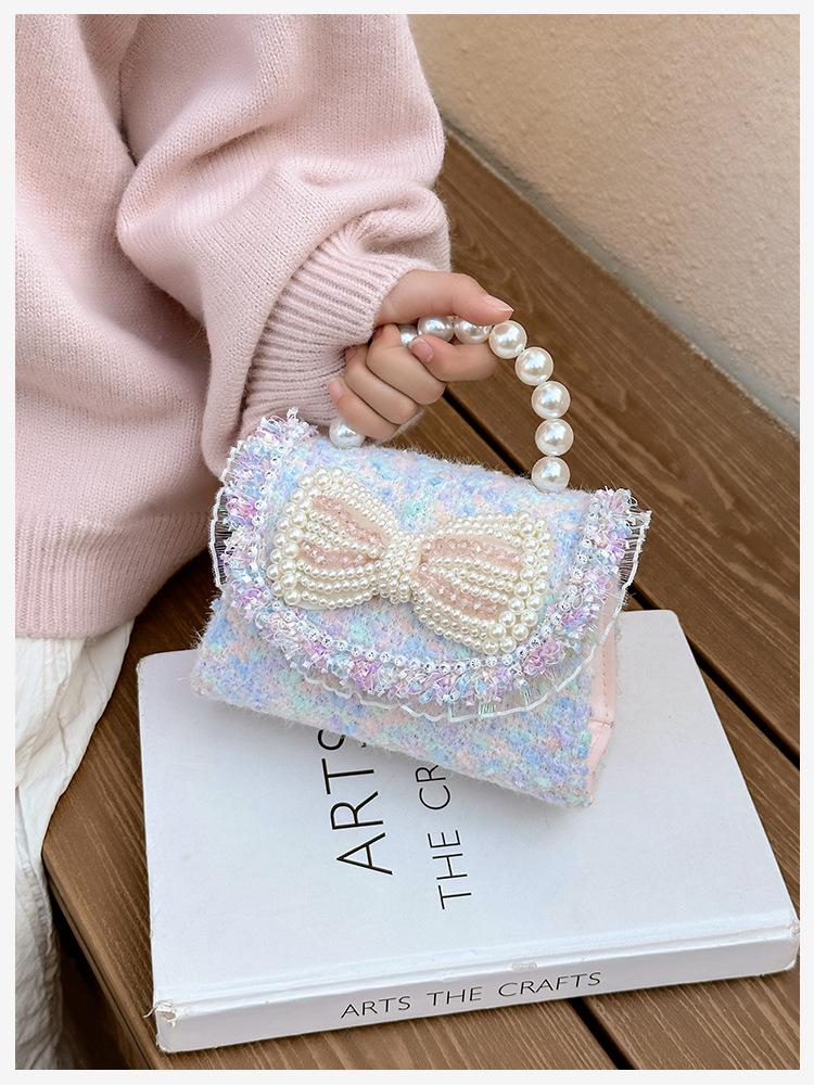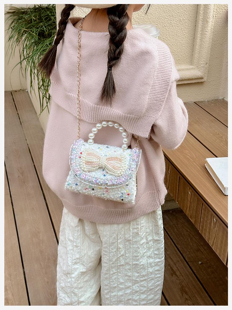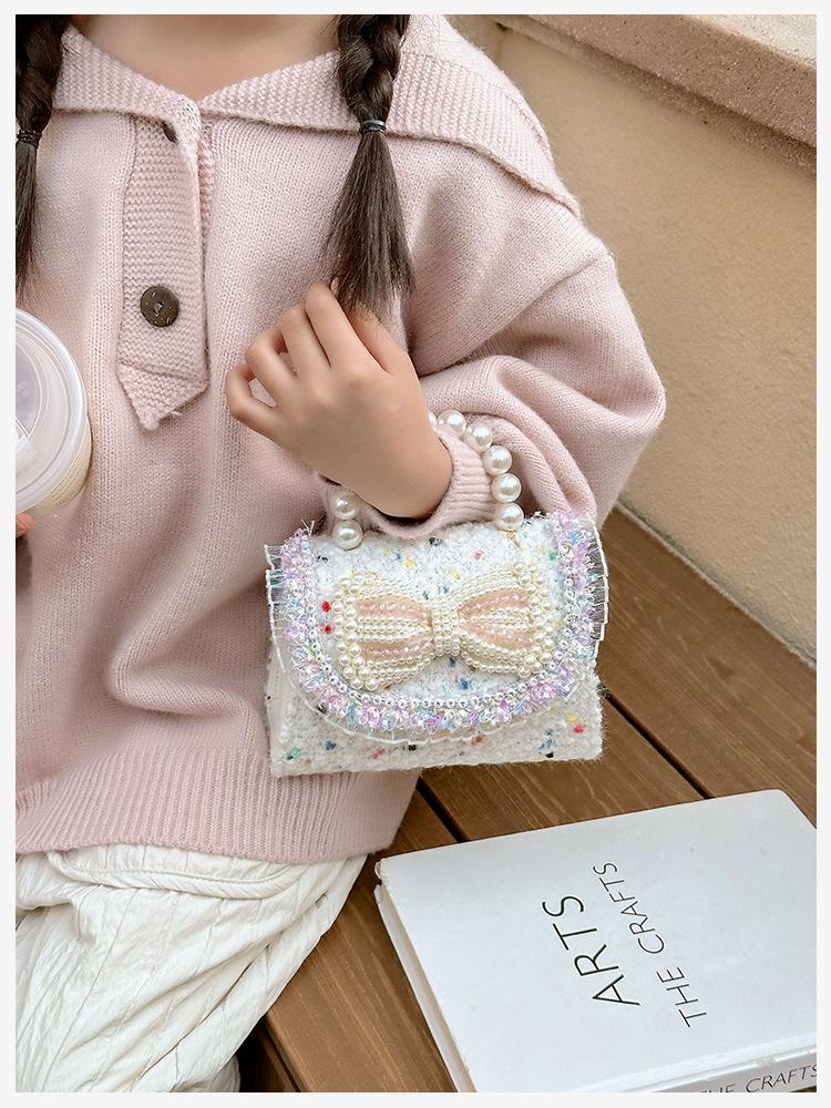 Bolso infantil para niña pequeña, bolso de hombro de moda 2023, bolso bandolera con lazo de perla de dibujos animados, mini monedero