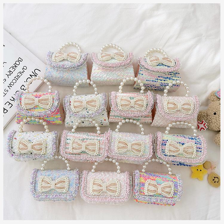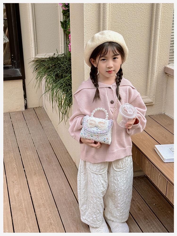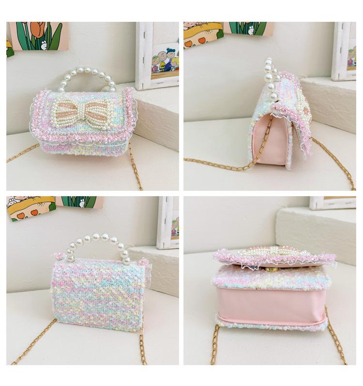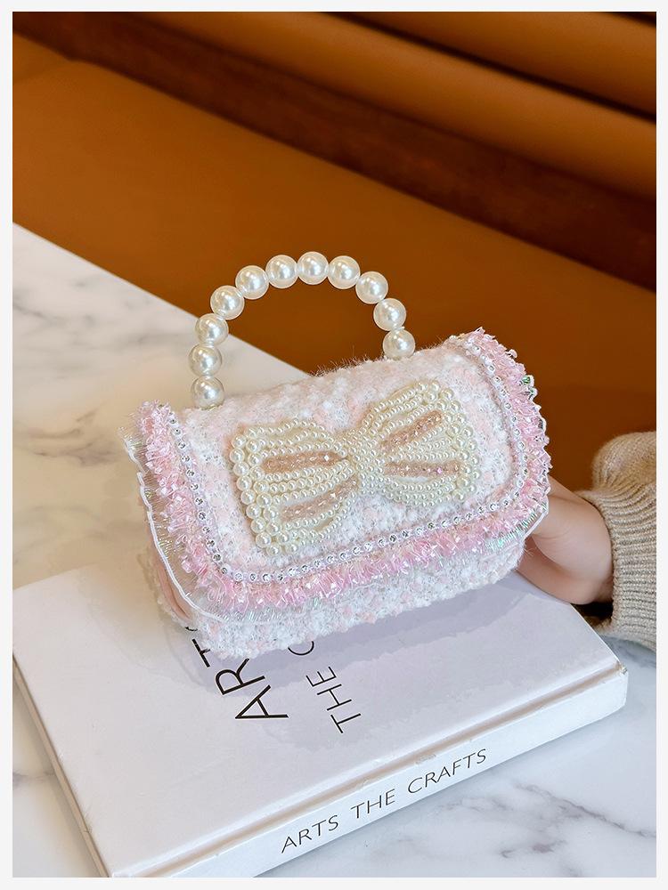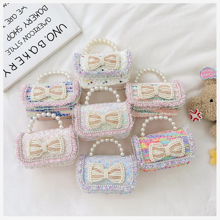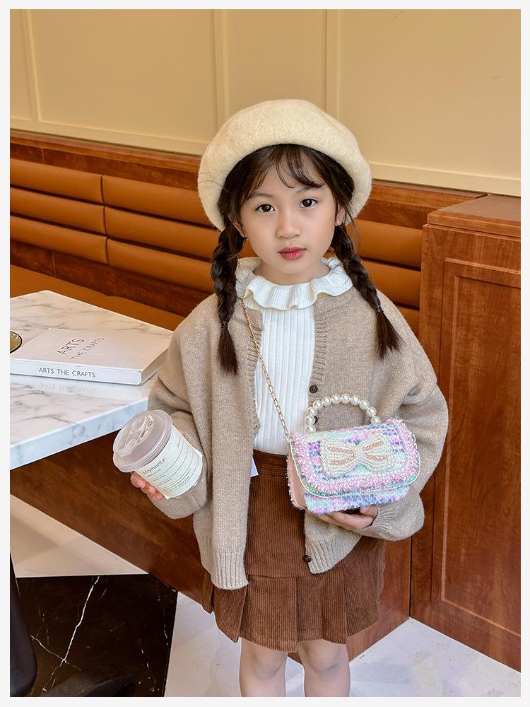 Bolso infantil para niña pequeña, bolso de hombro de moda 2023, bolso bandolera con lazo de perla de dibujos animados, mini monedero