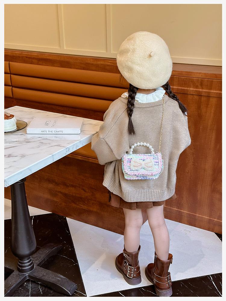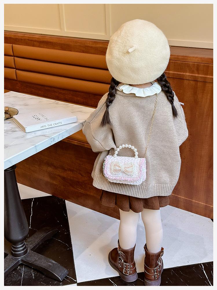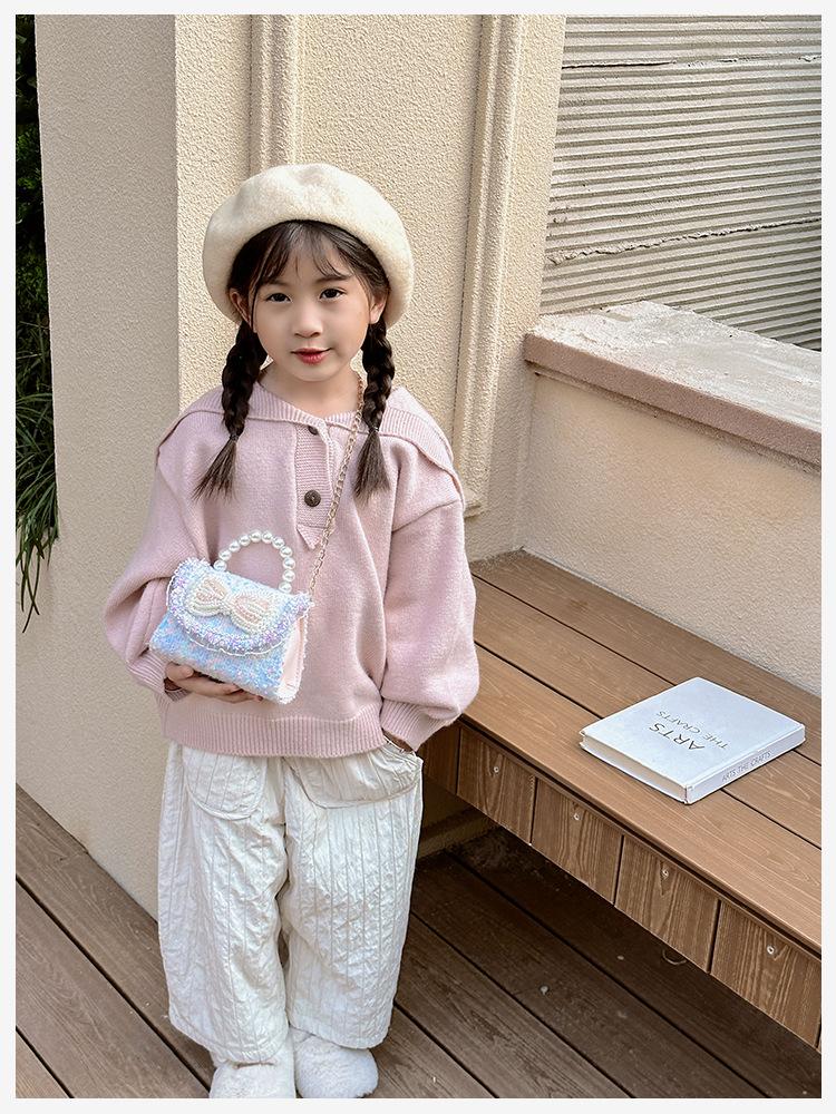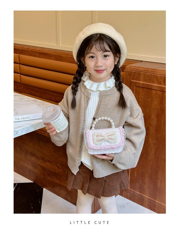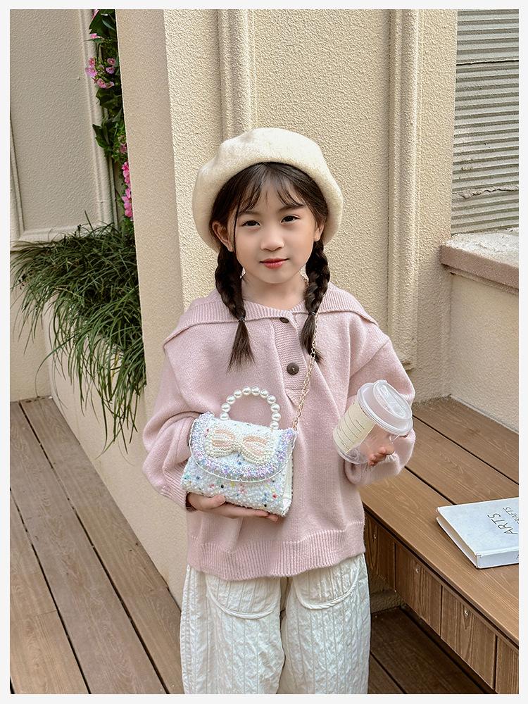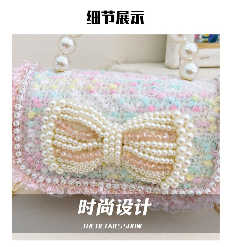 Bolso infantil para niña pequeña, bolso de hombro de moda 2023, bolso bandolera con lazo de perla de dibujos animados, mini monedero