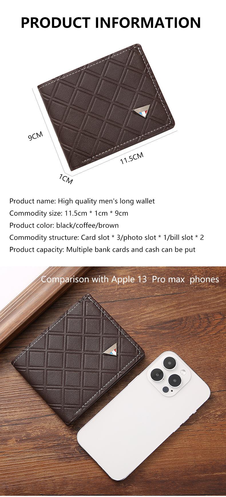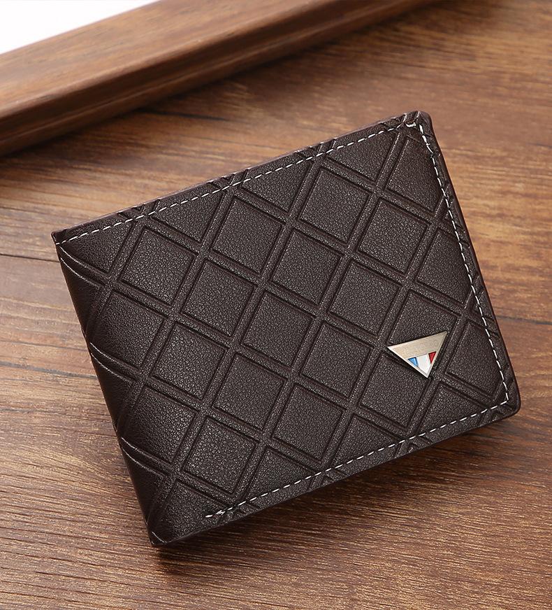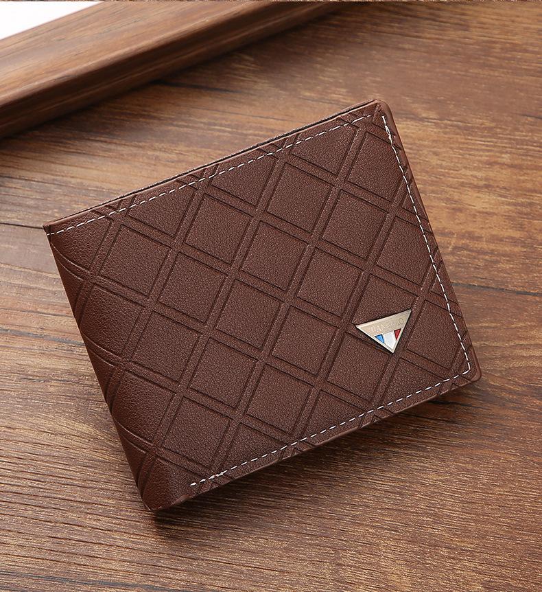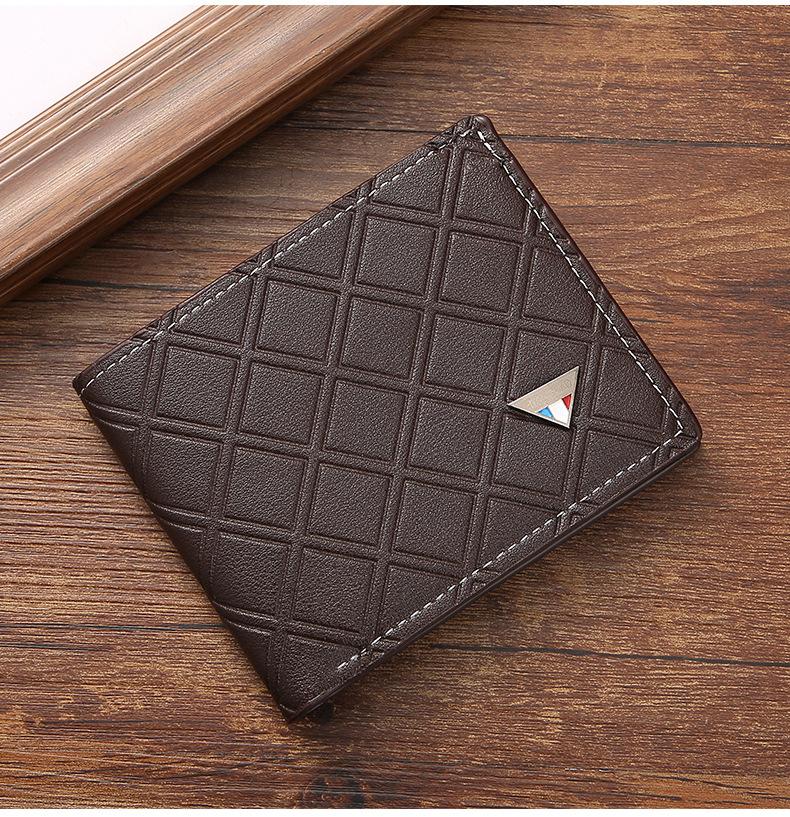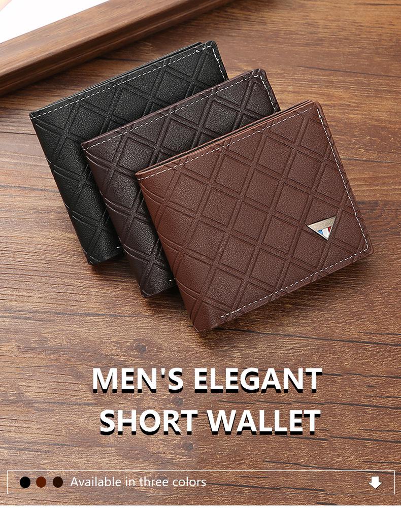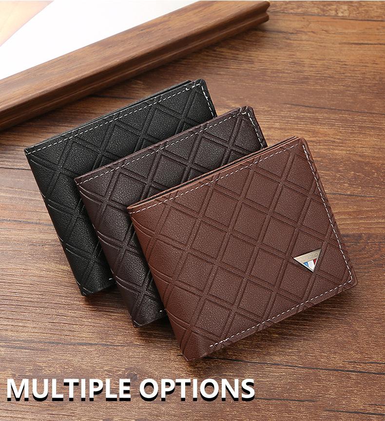 Nueva cartera corta para hombre, estilo juvenil, informal, a cuadros, con ranura para múltiples tarjetas, fina y suave, monedero.
