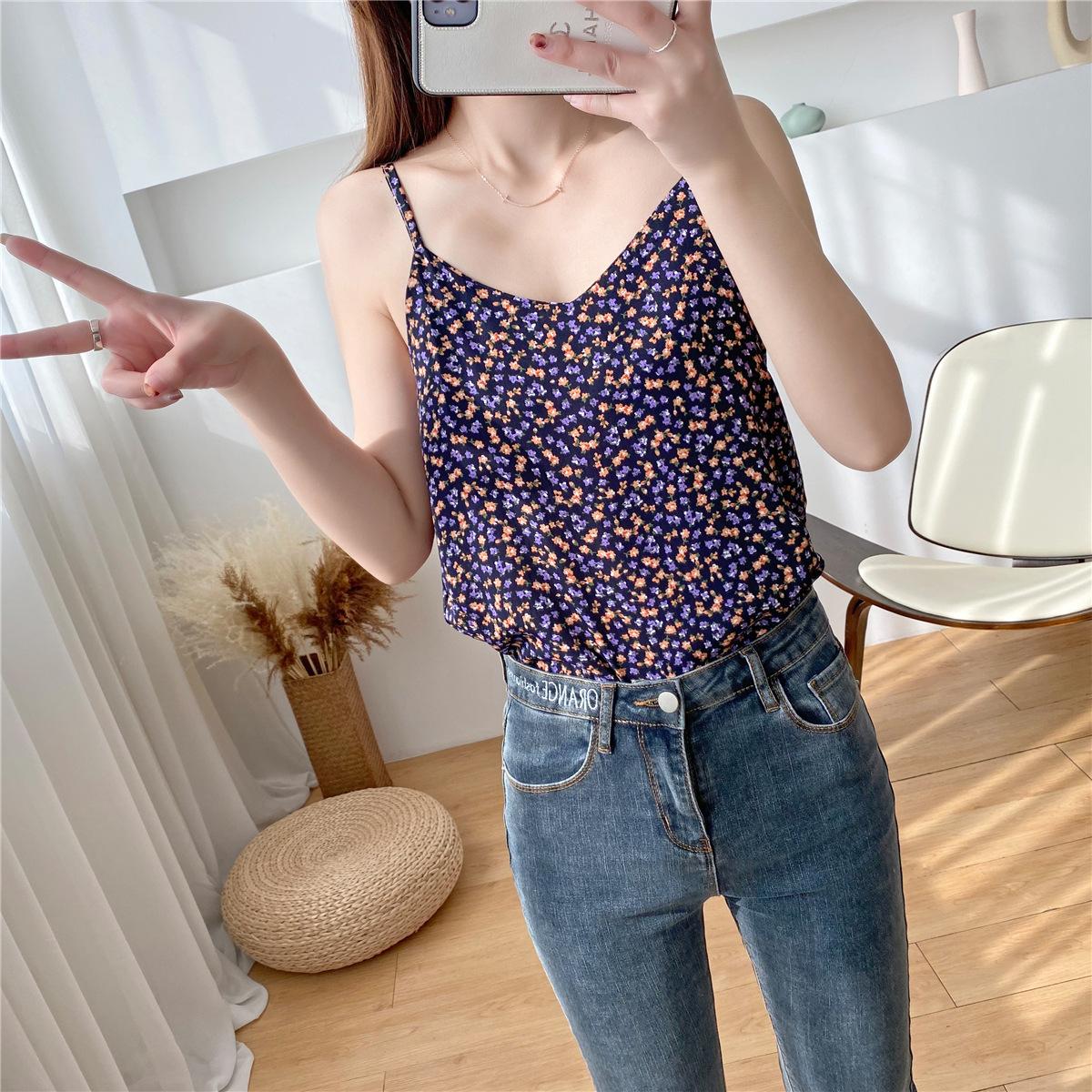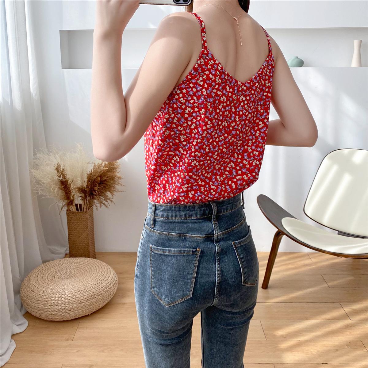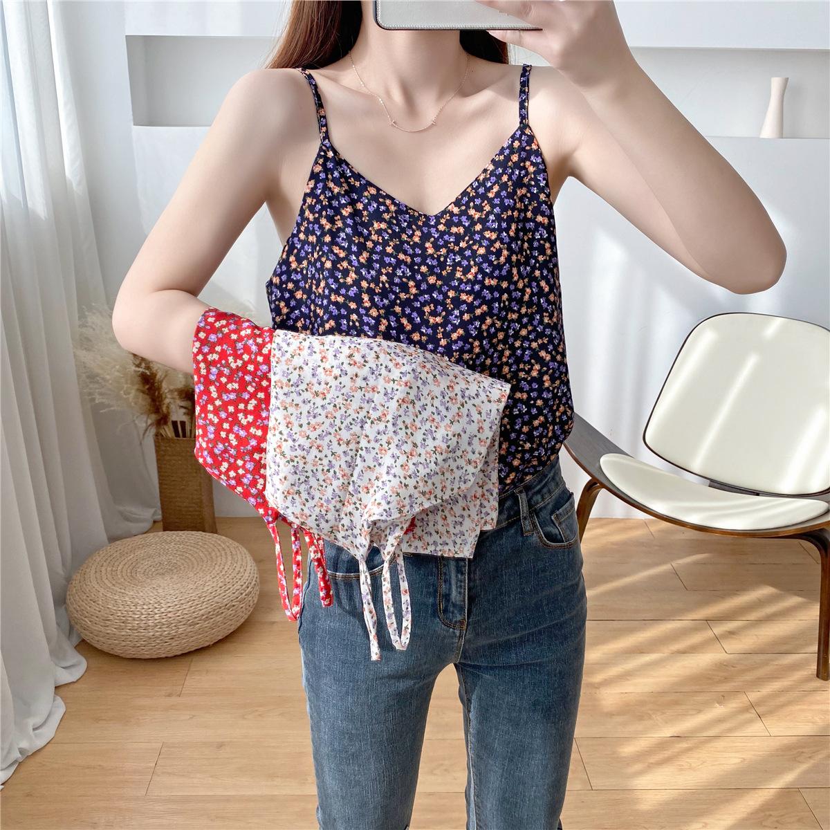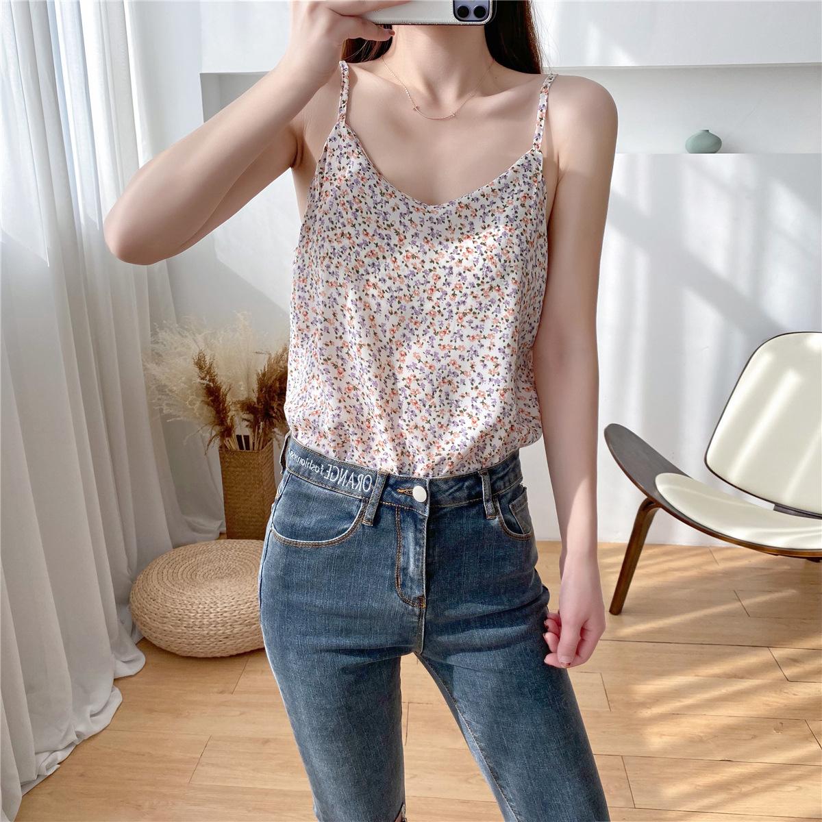 Compra Camisola de gasa de verano 2023 para mujer, prenda interior holgada y exterior, con estampado floral pequeño, sin mangas, base, Tide al por mayor en Joom.pro