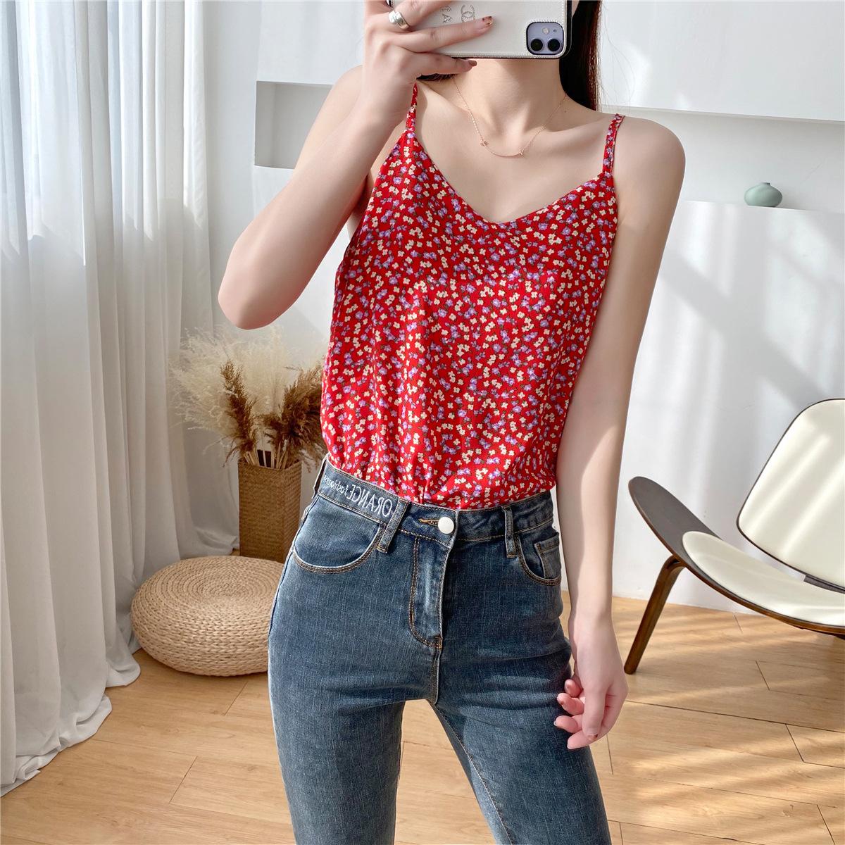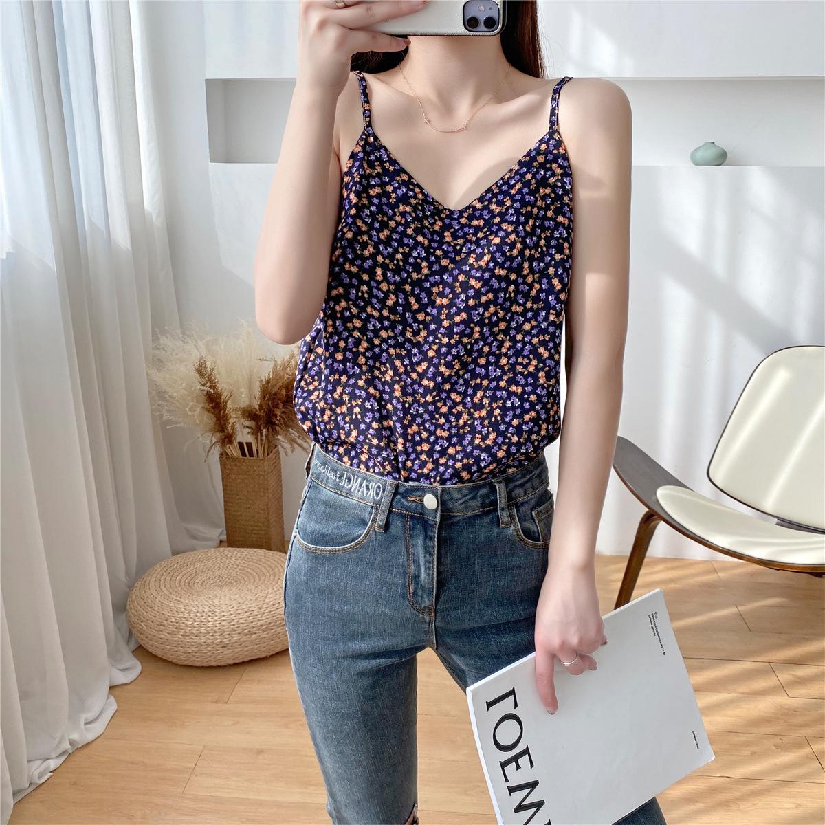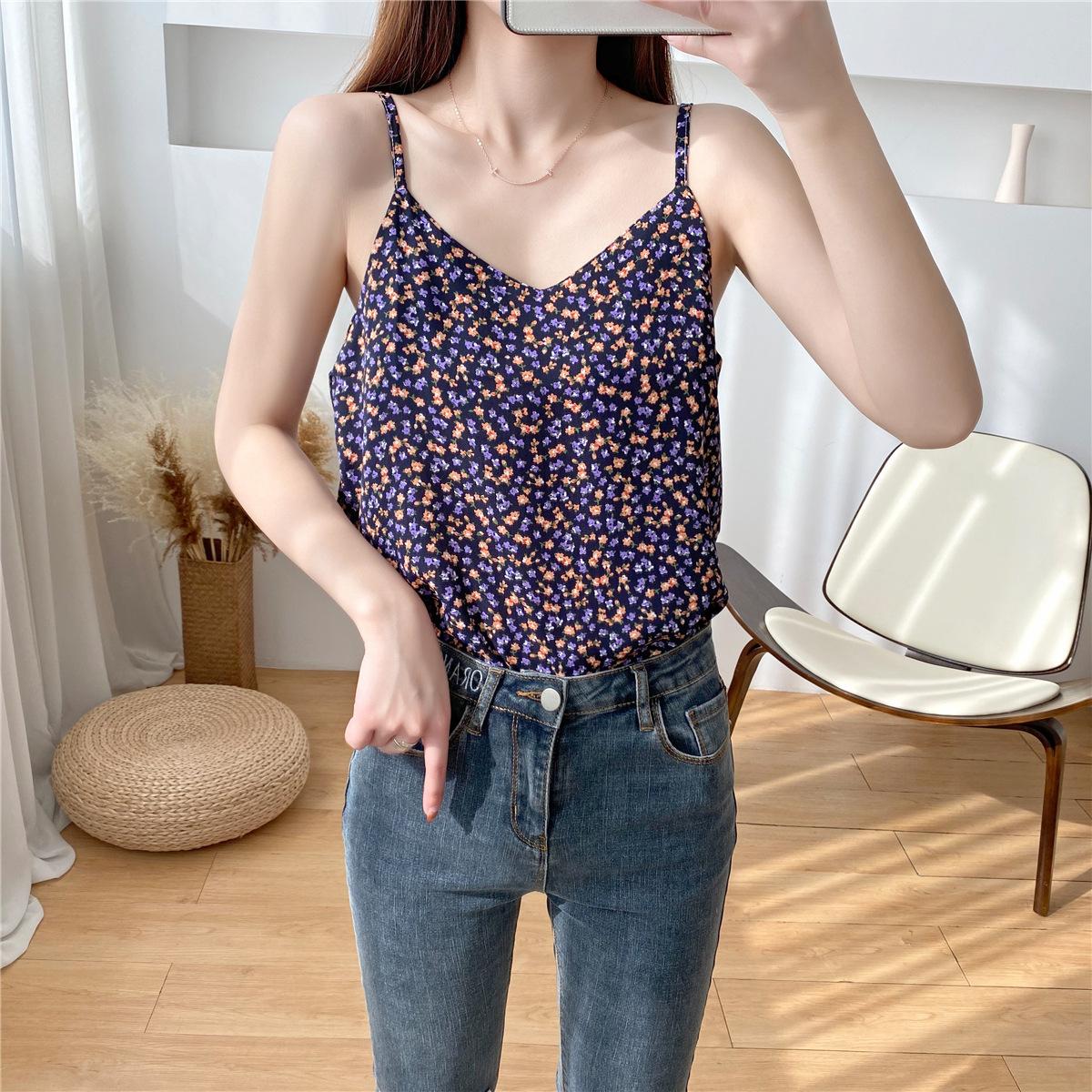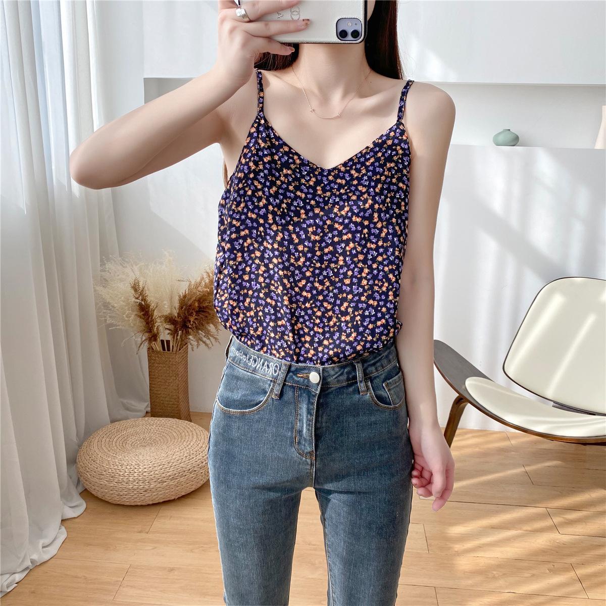 Compra Camisola de gasa de verano 2023 para mujer, prenda interior holgada y exterior, con estampado floral pequeño, sin mangas, base, Tide al por mayor en Joom.pro