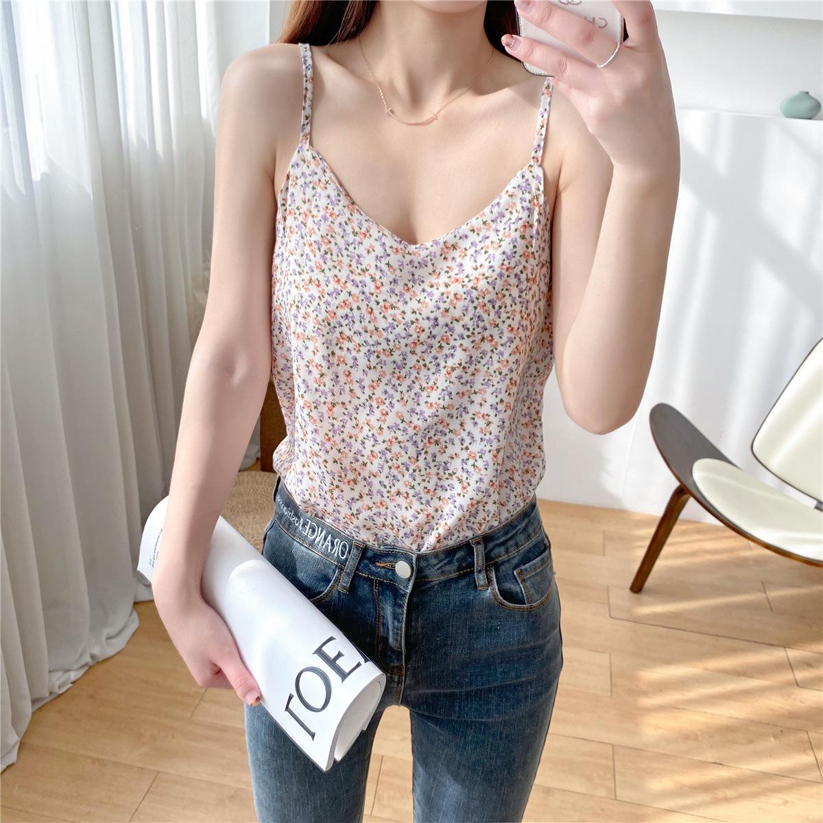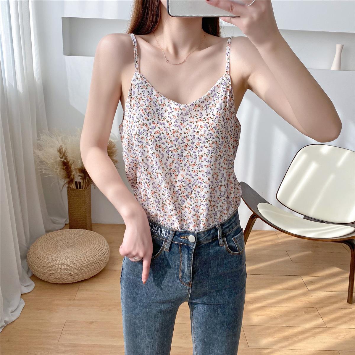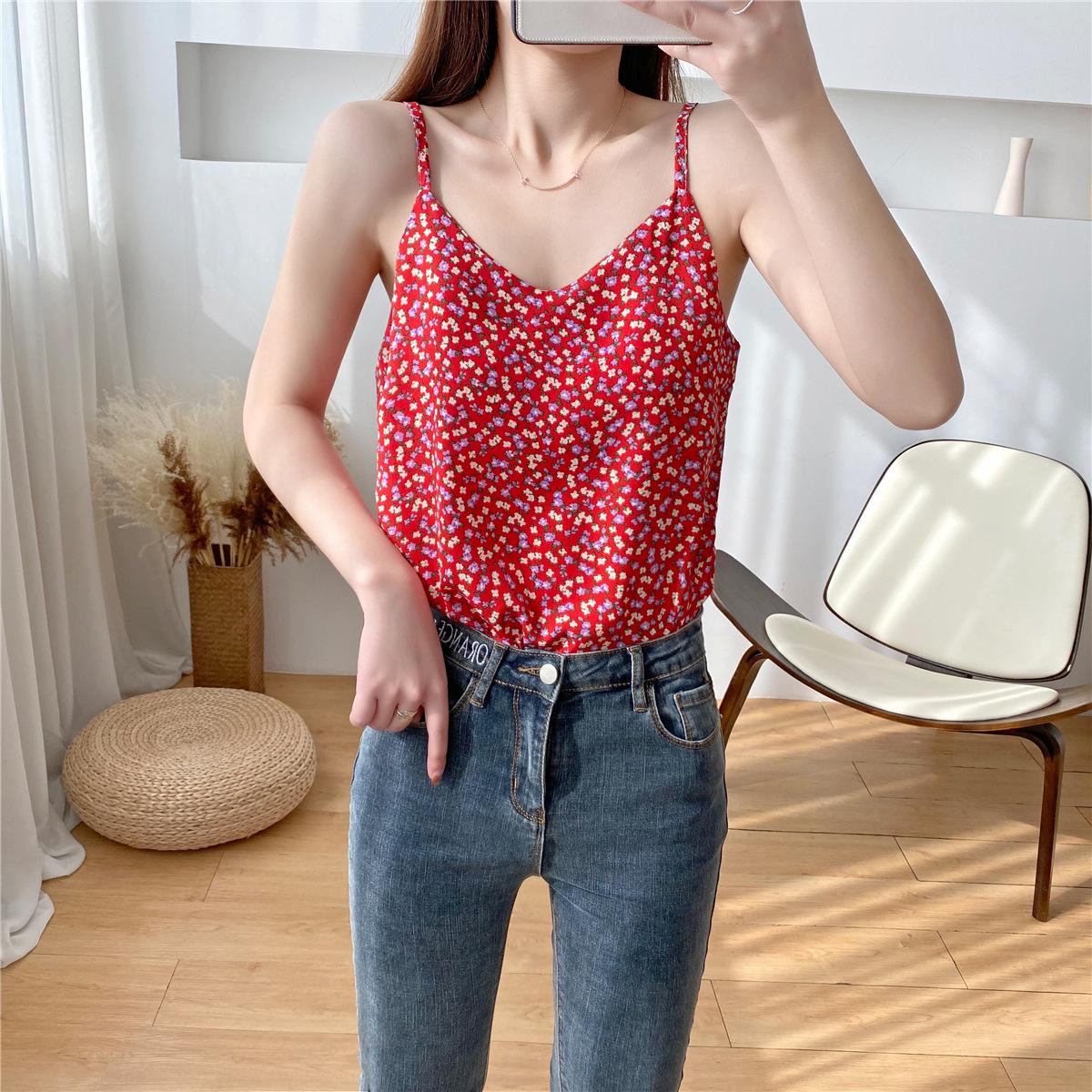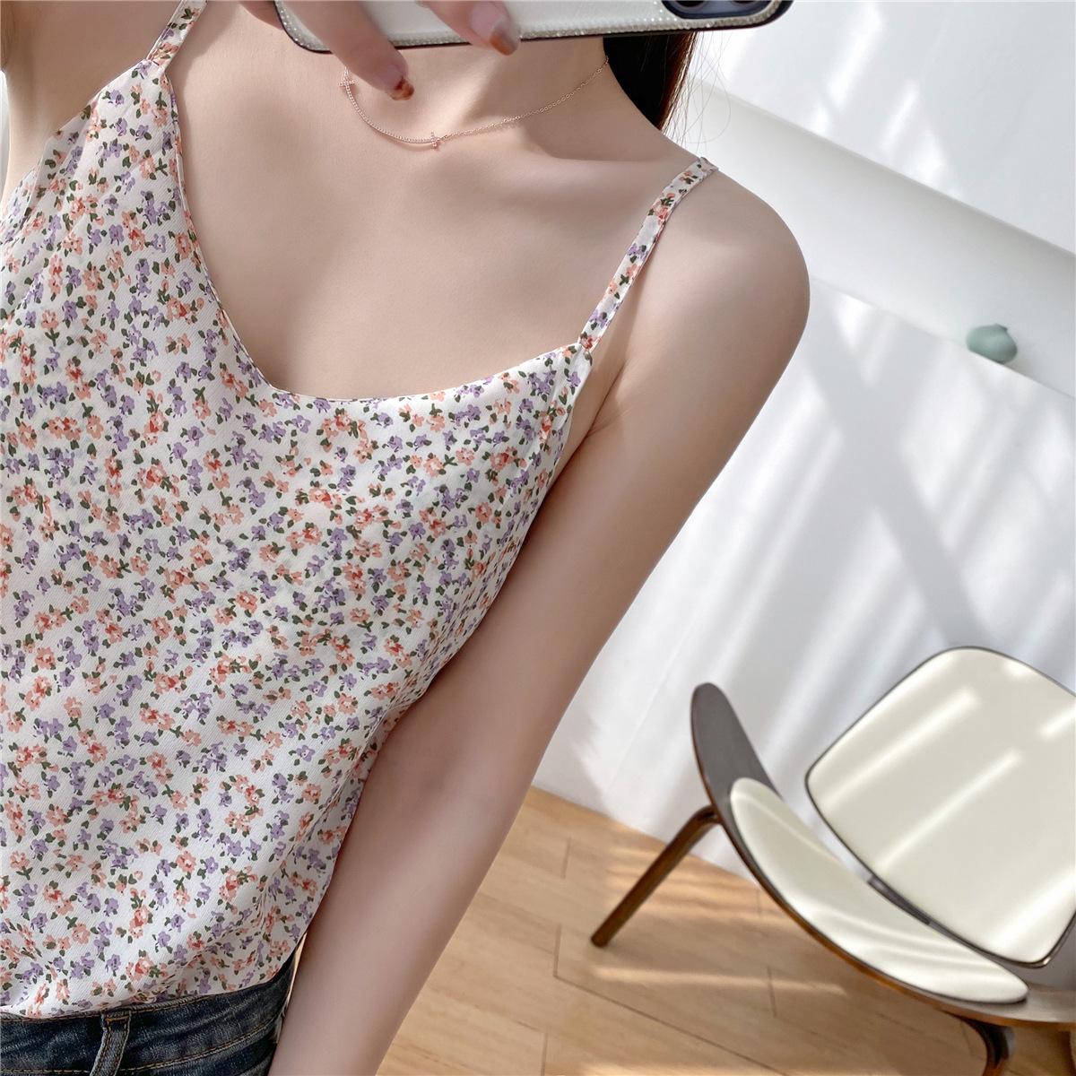 Compra Camisola de gasa de verano 2023 para mujer, prenda interior holgada y exterior, con estampado floral pequeño, sin mangas, base, Tide al por mayor en Joom.pro