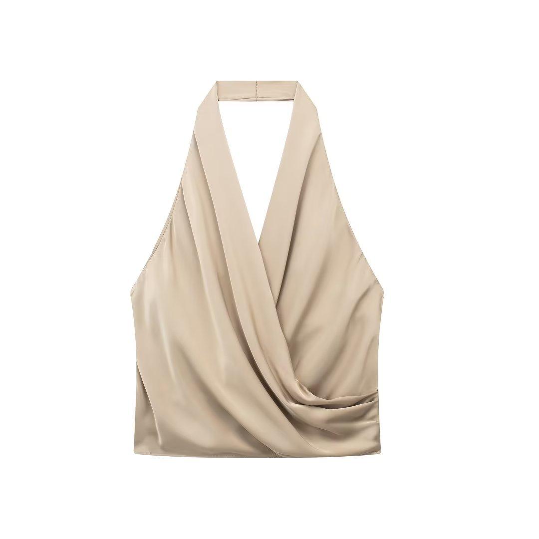 Compra 2023 Verano nuevo elegante sexy chica caliente seda satén textura cuello superior comercio exterior transfronterizo chaleco a juego para mujeres al por mayor en Joom.pro