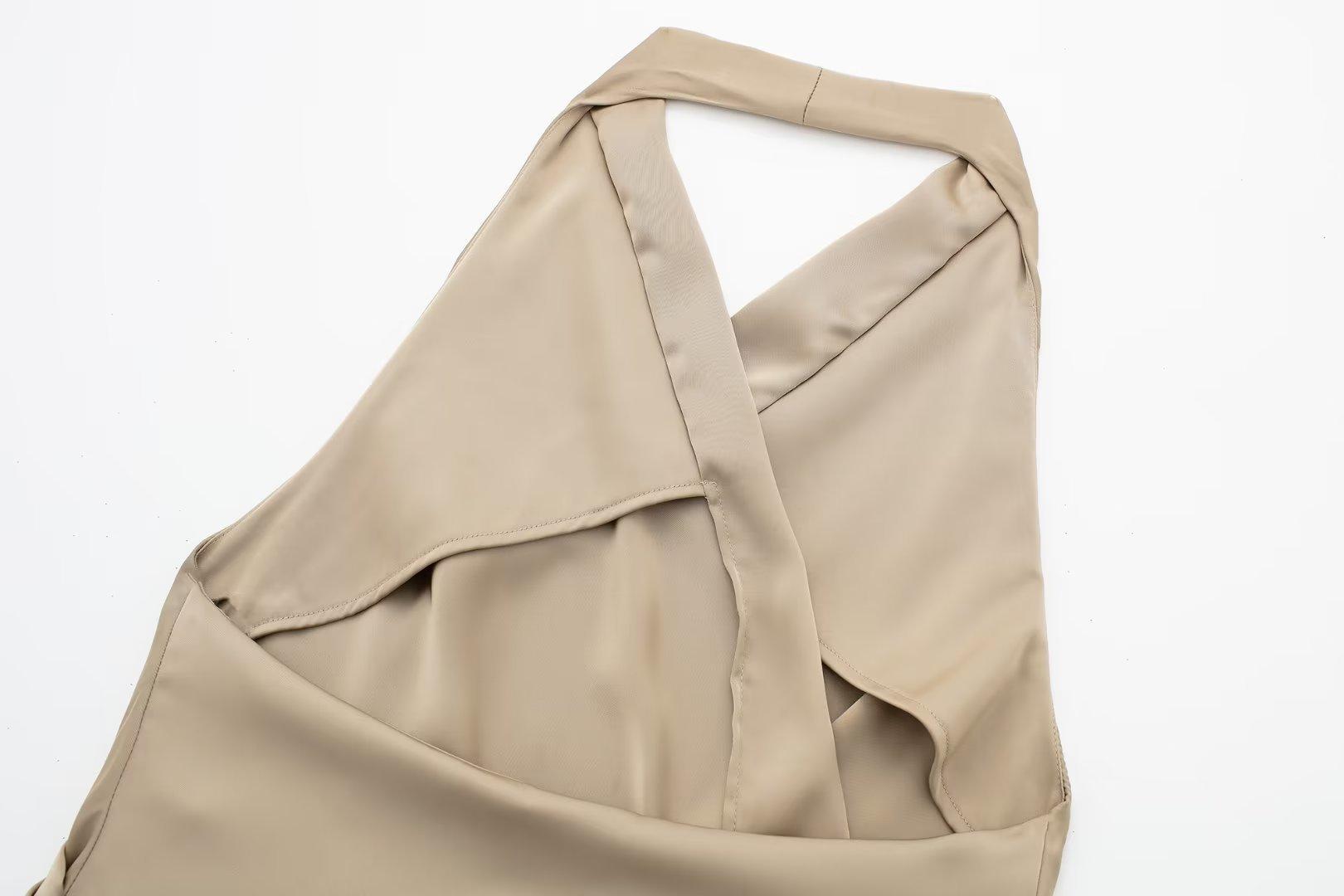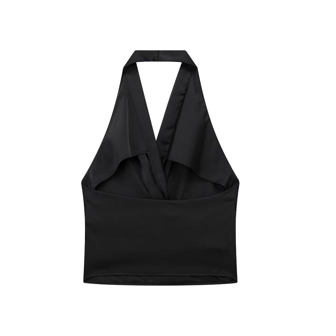 2023 Verano nuevo elegante sexy chica caliente seda satén textura cuello superior comercio exterior transfronterizo chaleco a juego para mujeres