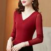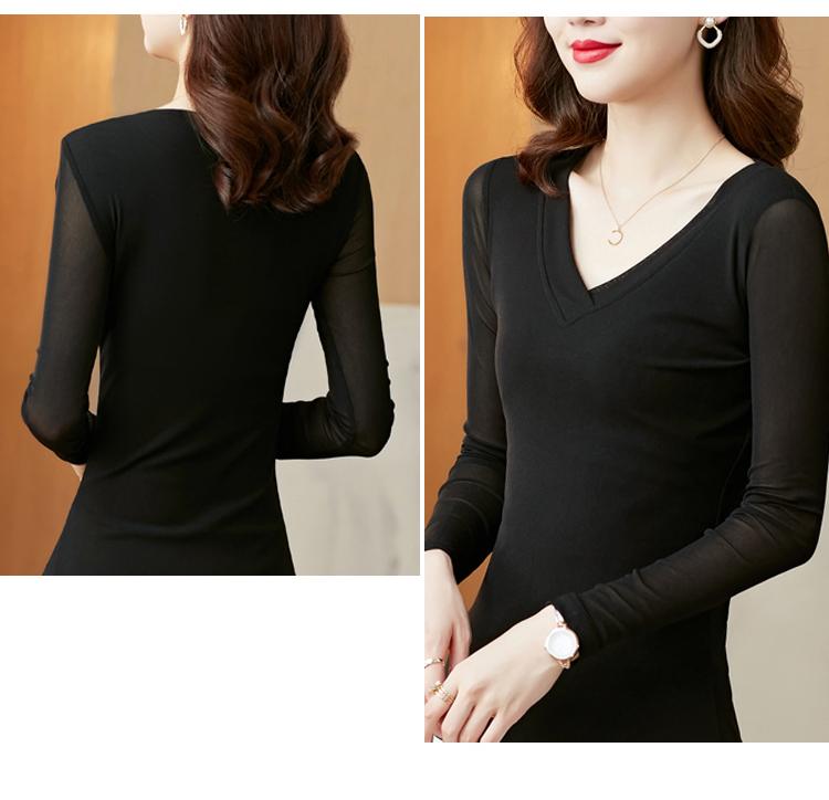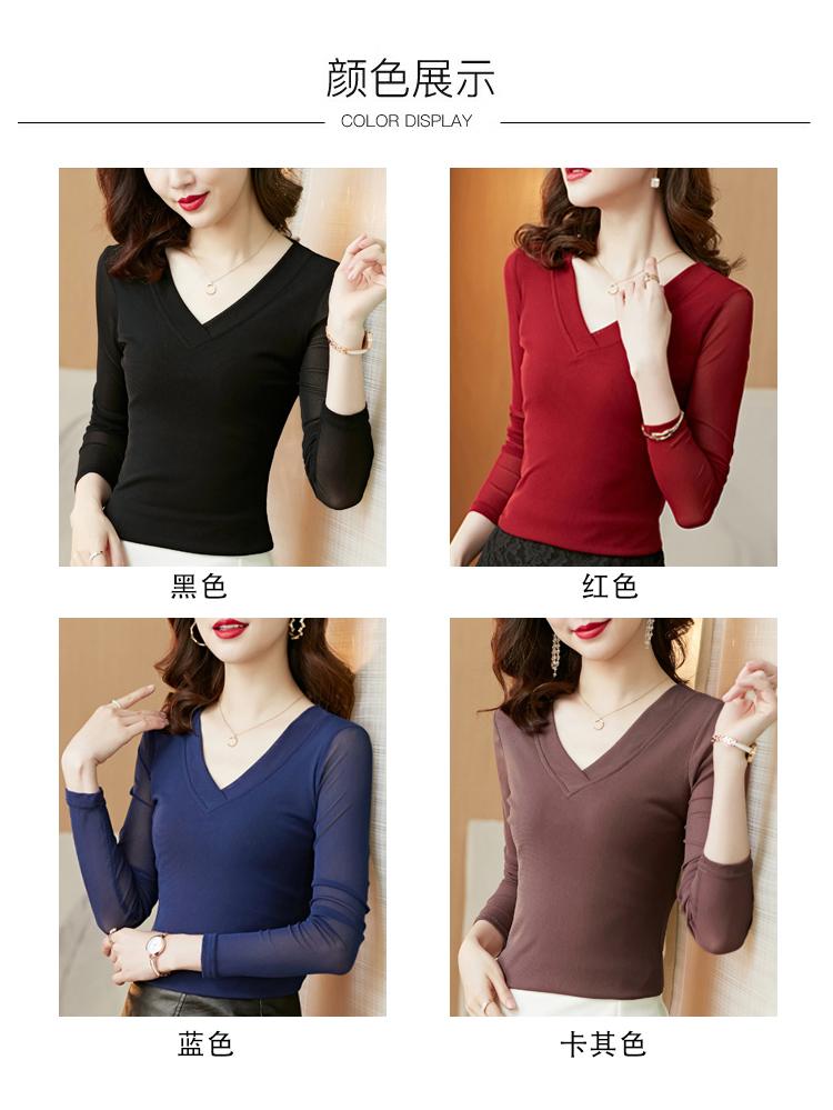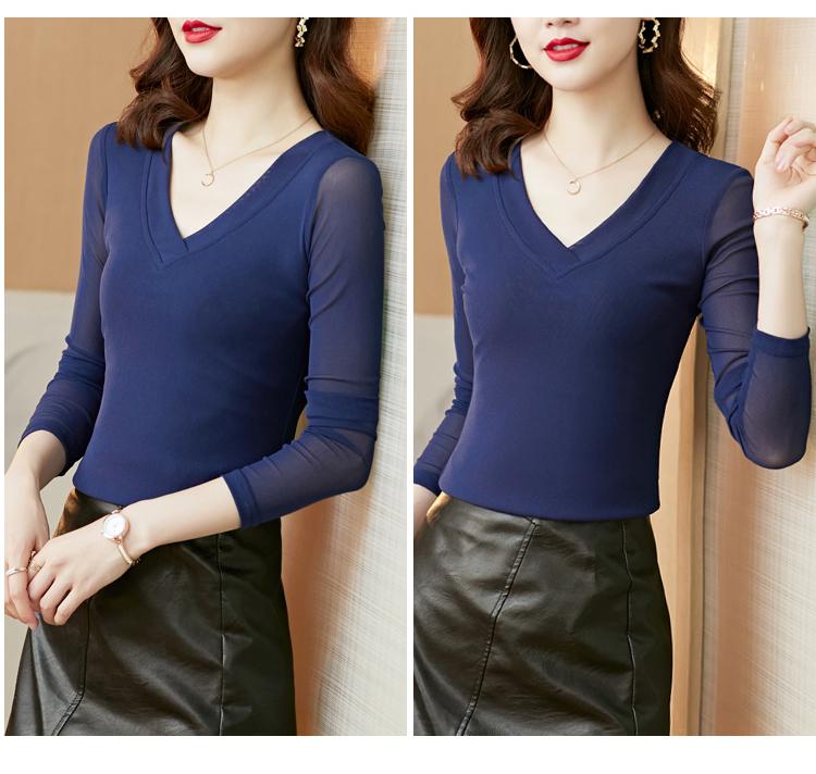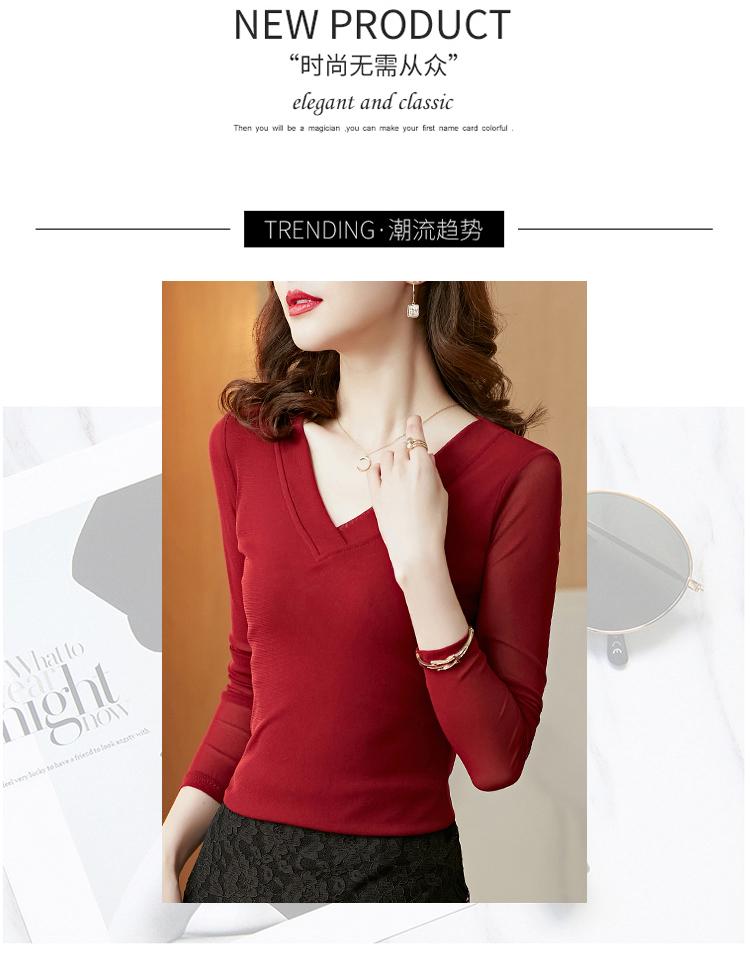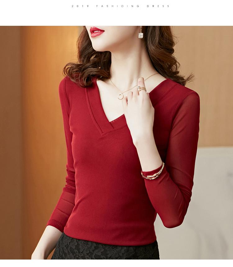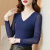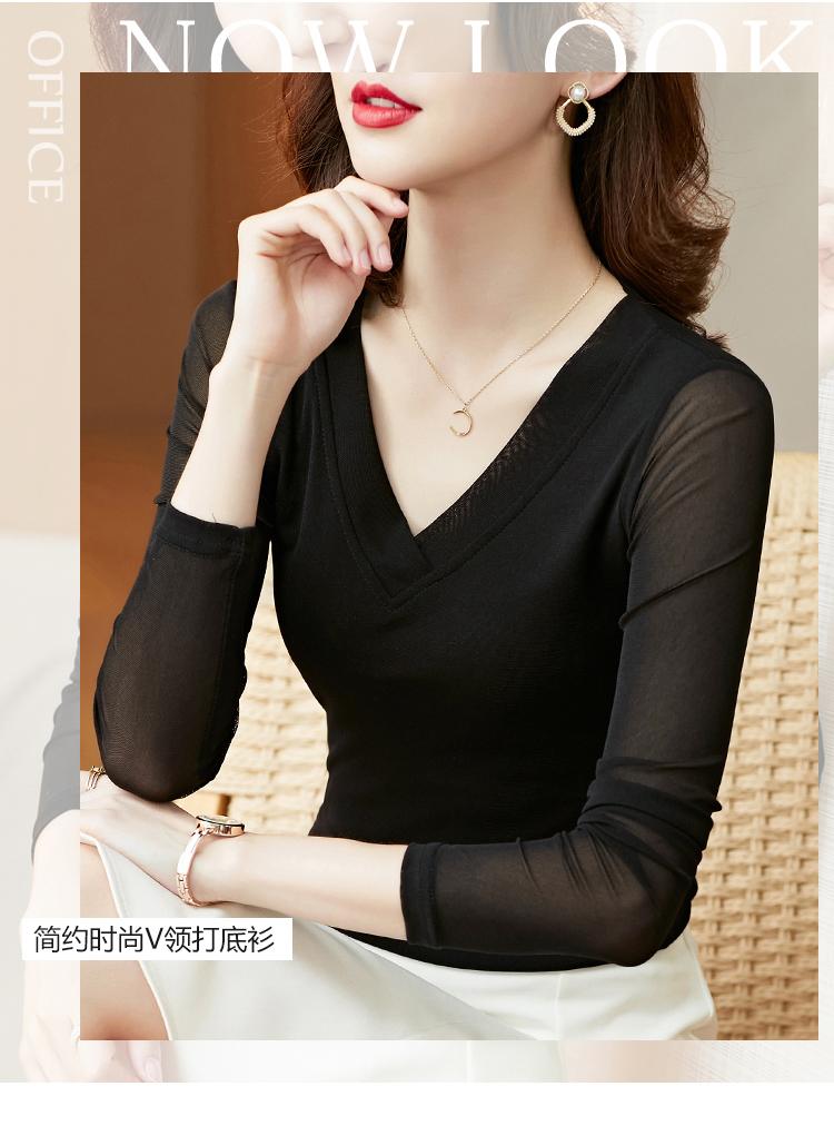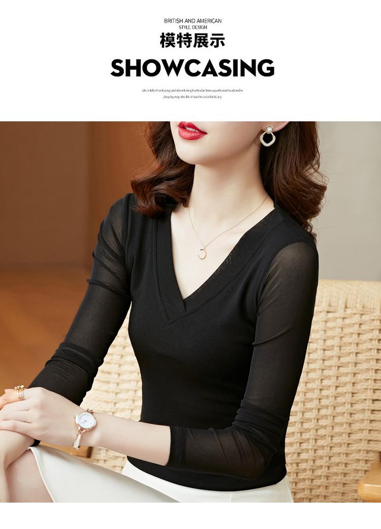 Compra Camisa de cuello en V con fondo, otoño 2022, nueva camisa de cuello bajo con encaje de malla elegante, ropa interior de mujer, gasa de otoño e invierno al por mayor en Joom.pro