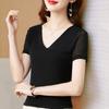 Camisa de cuello en V con fondo, otoño 2022, nueva camisa de cuello bajo con encaje de malla elegante, ropa interior de mujer, gasa de otoño e invierno