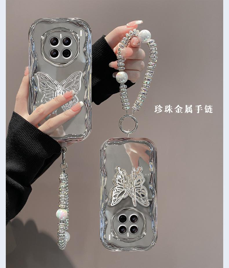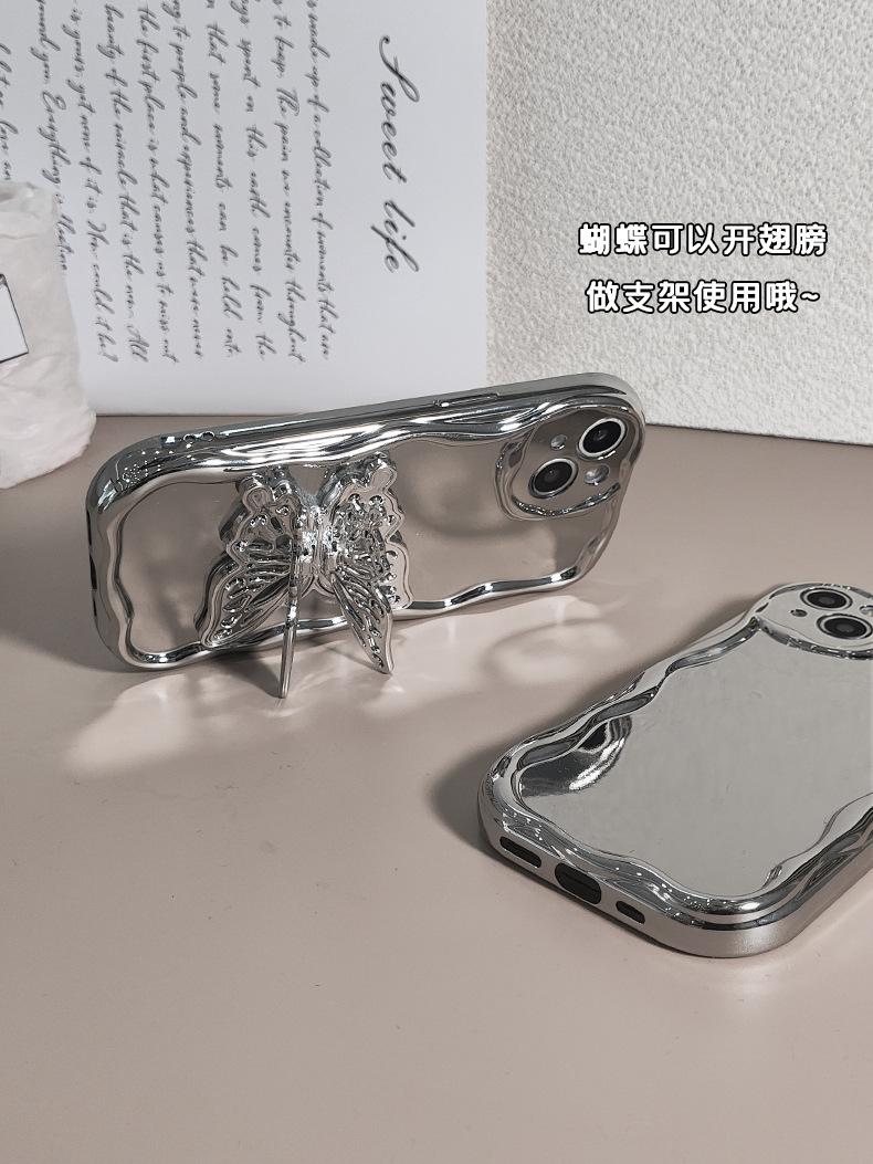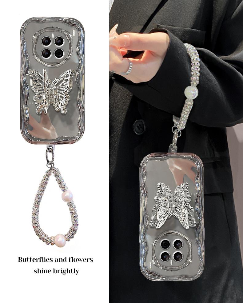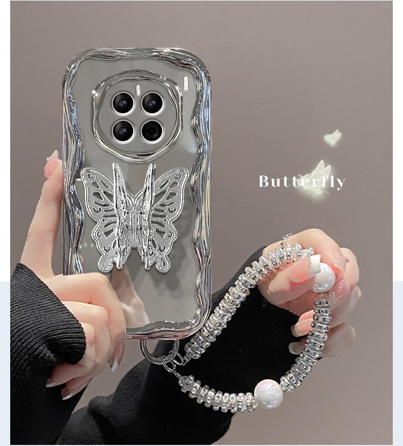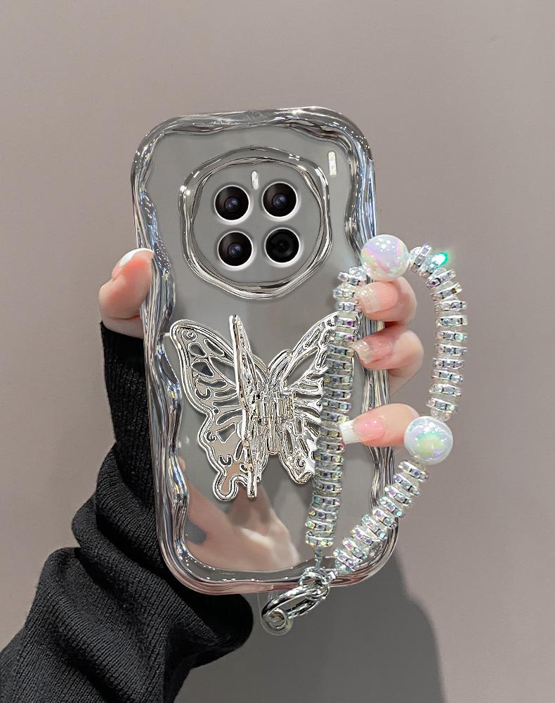 Funda para Huawei Pura70 con soporte de mariposa estéreo para vivo 17, cadena plateada galvanizada para Oppo y Xiaomi 14